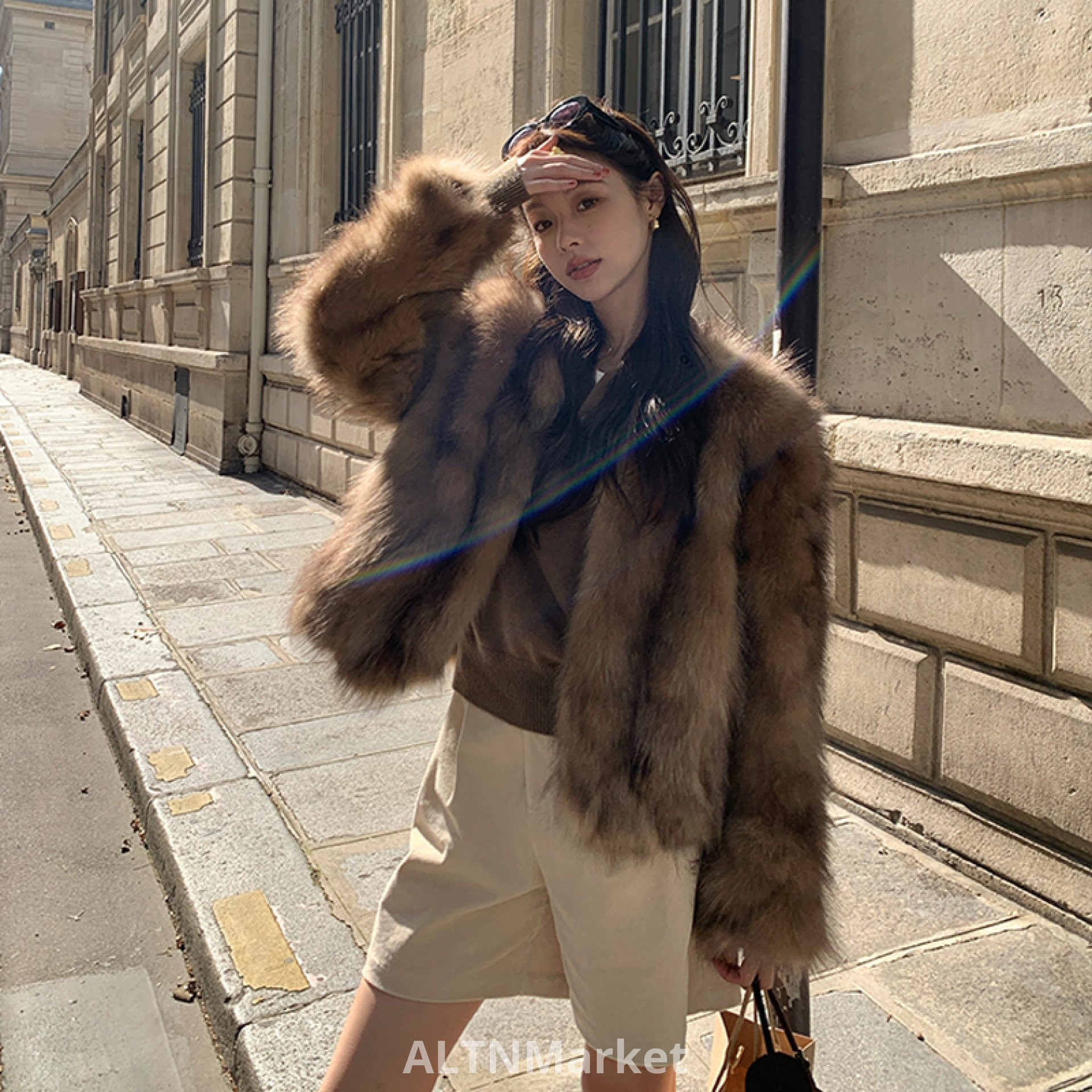 Коричневый Экологически чистый лисий мех Короткое пальто для женщин Зима Корейский стиль Новый стиль Винтаж Превосходное чувство Утолщенный меховой топ