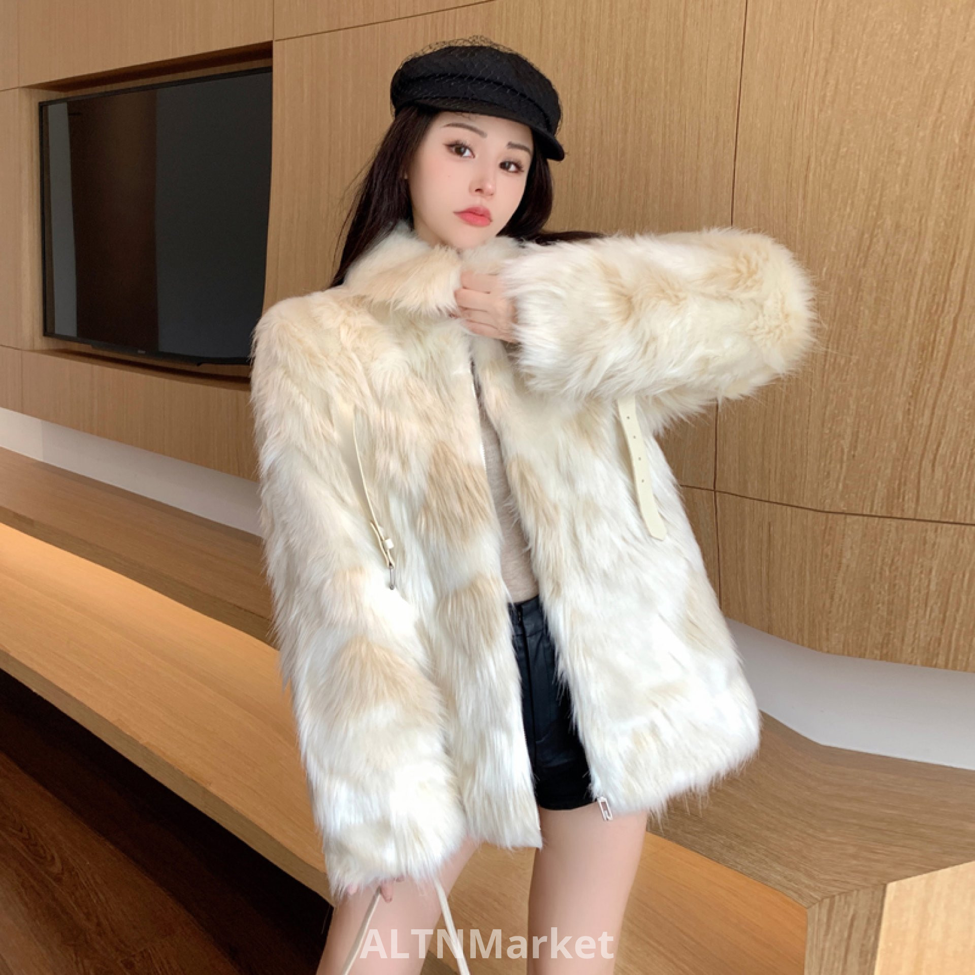 real photo Winter Hair Plush Superior Sense Imitation Fox Fur Fur Coat Elegance Imitation Fox Fur Fur Coat for Women