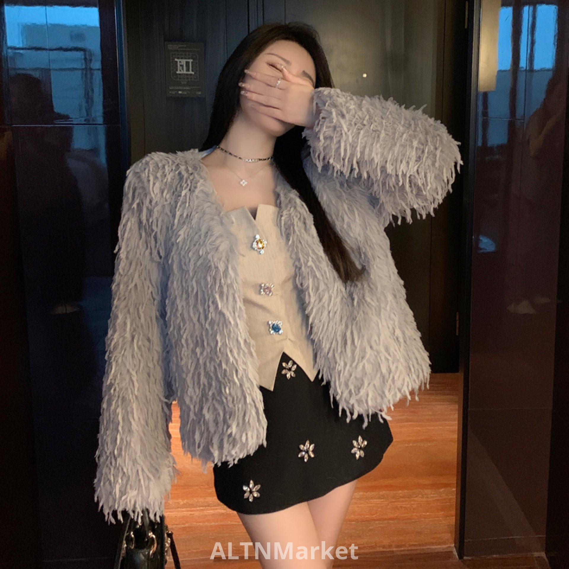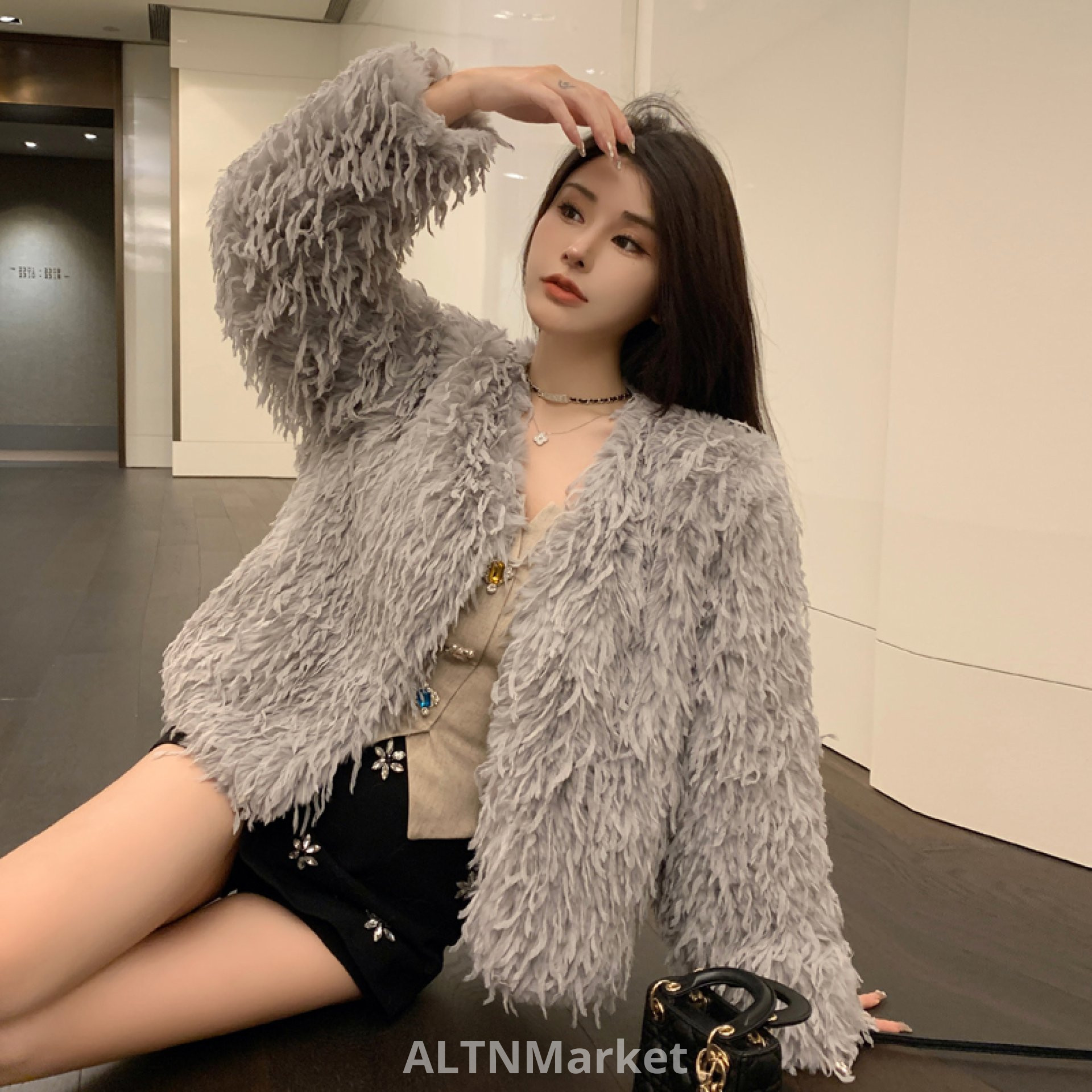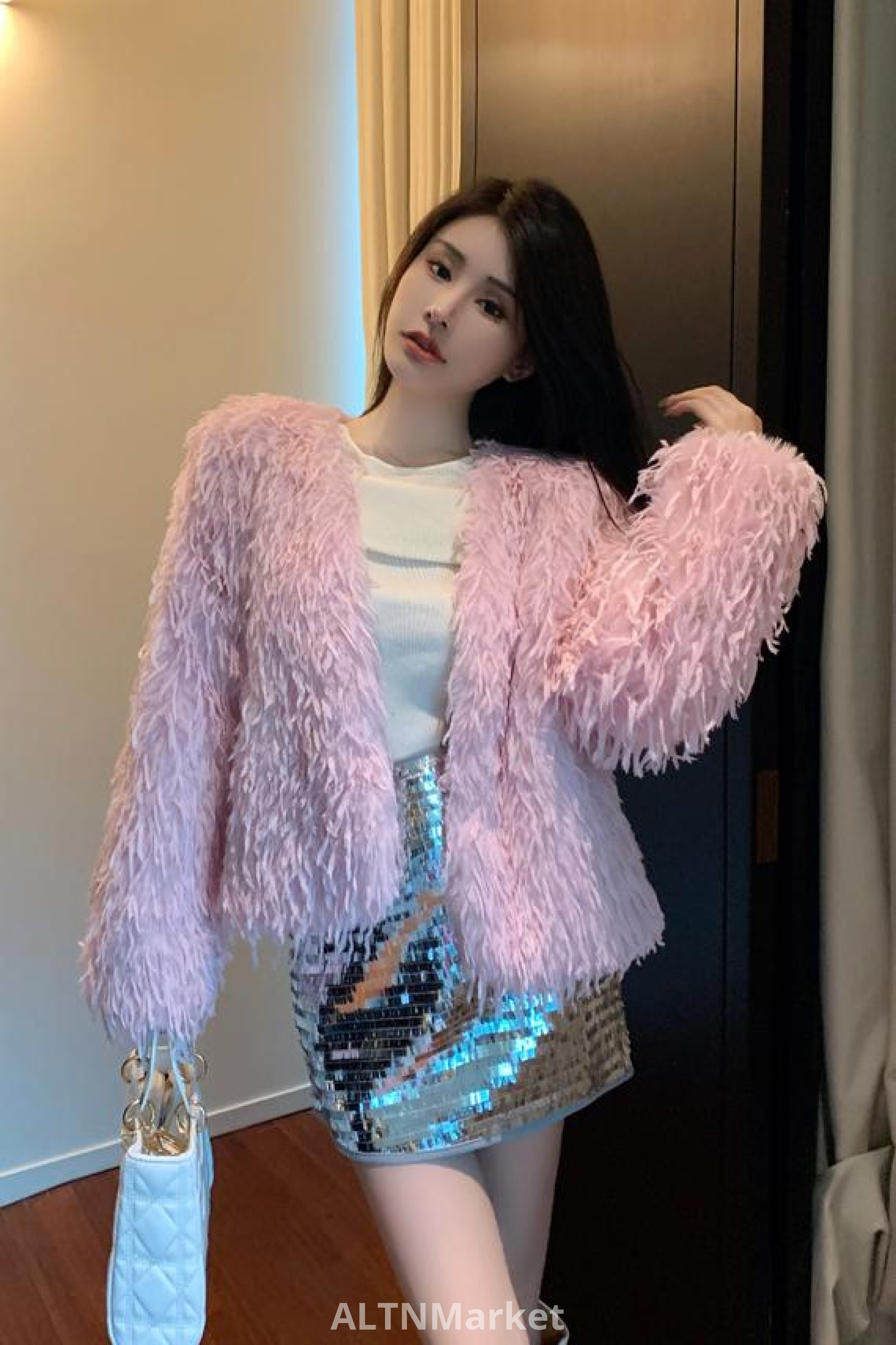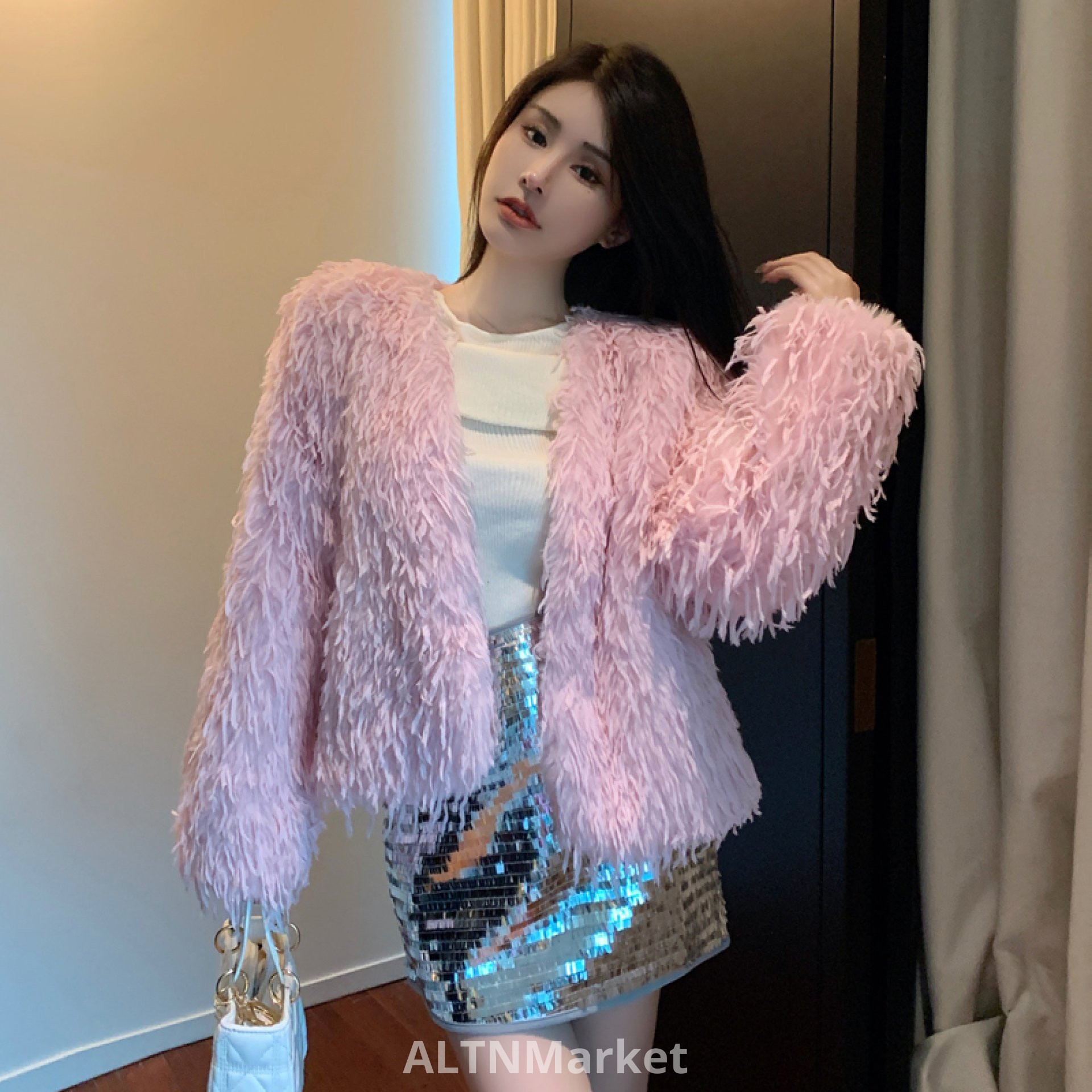 real photo Winter New Style Tassel Feather Slimming Western Style Short Style Fur Women Desire Fairy Light Luxury Environmentally Friendly Furry Coat