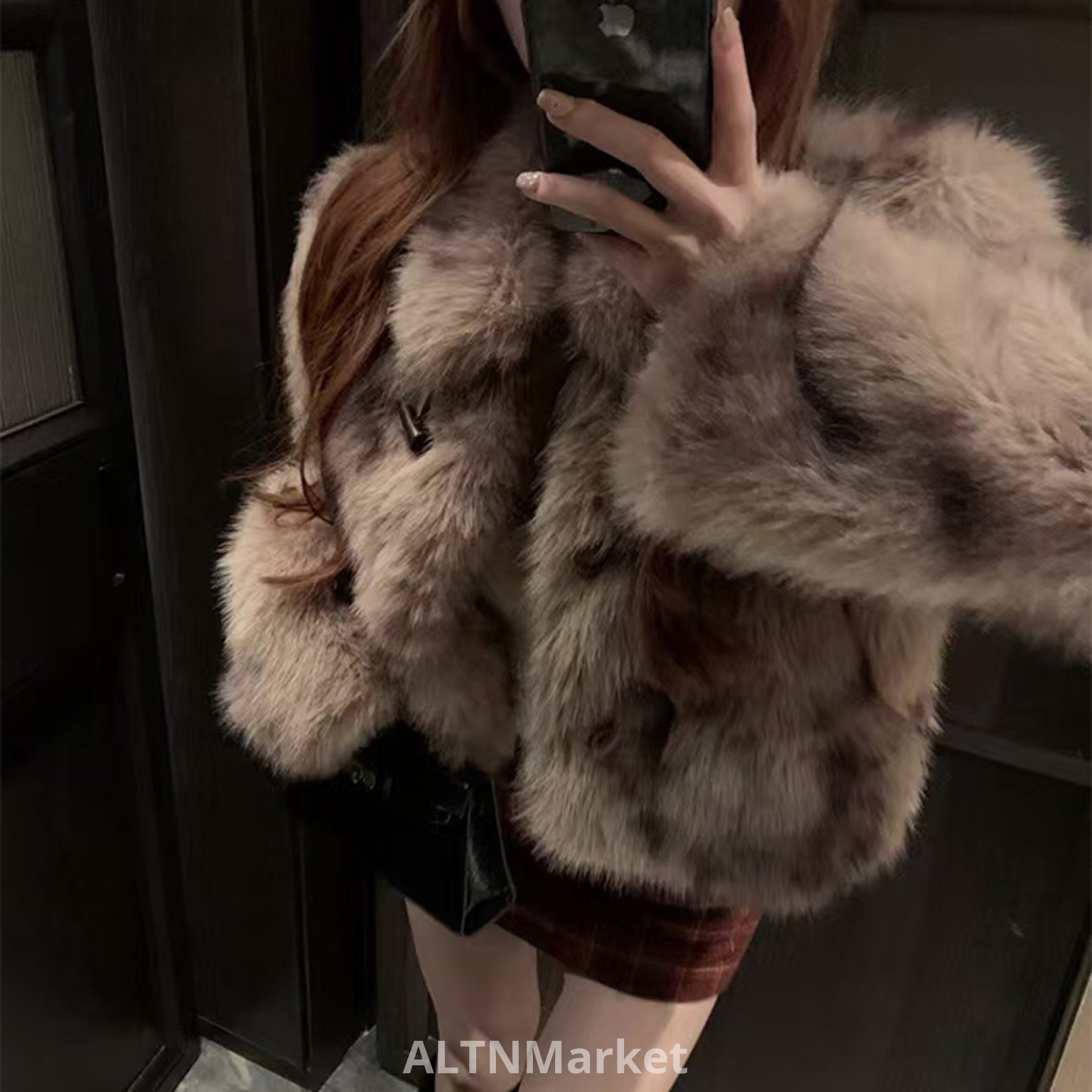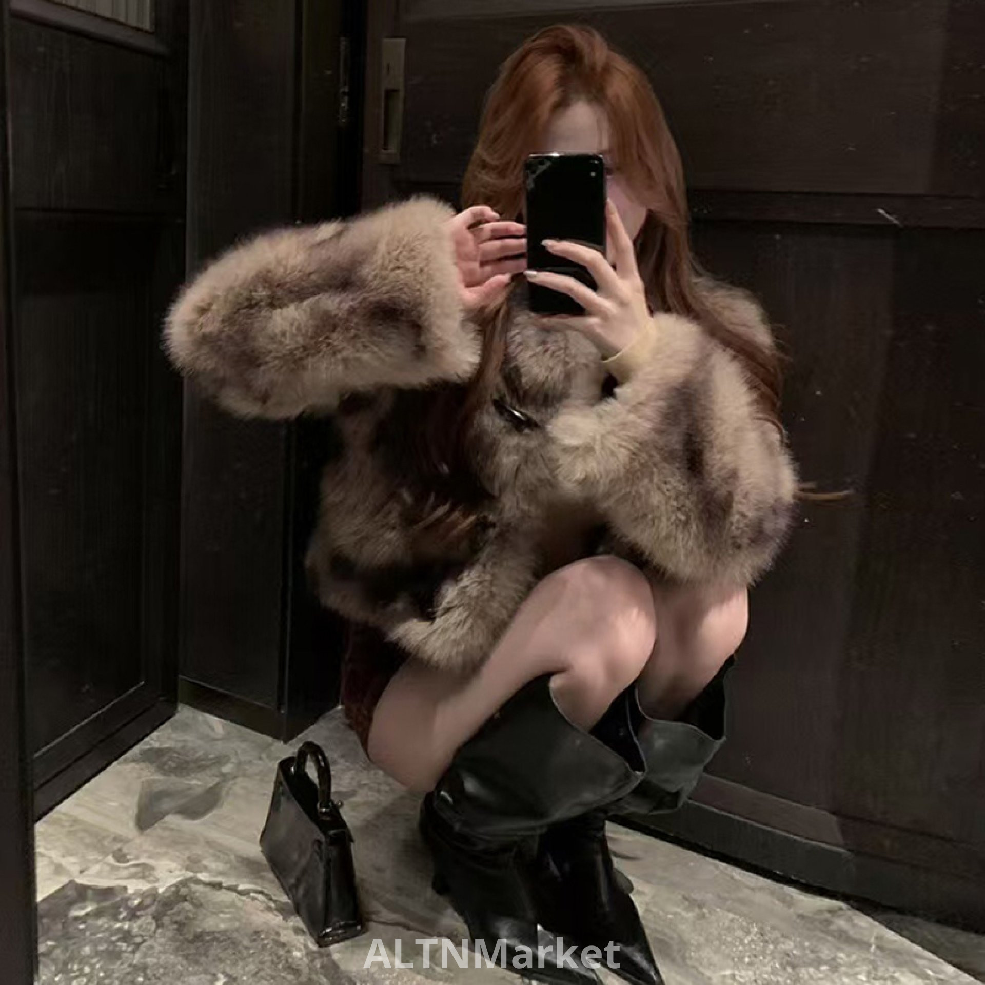 Amber Sand Brown Vintage Niche Fur Coat for Women Short Winter Superior Sense Elegance Socialite Imitation The fox Furry Top
