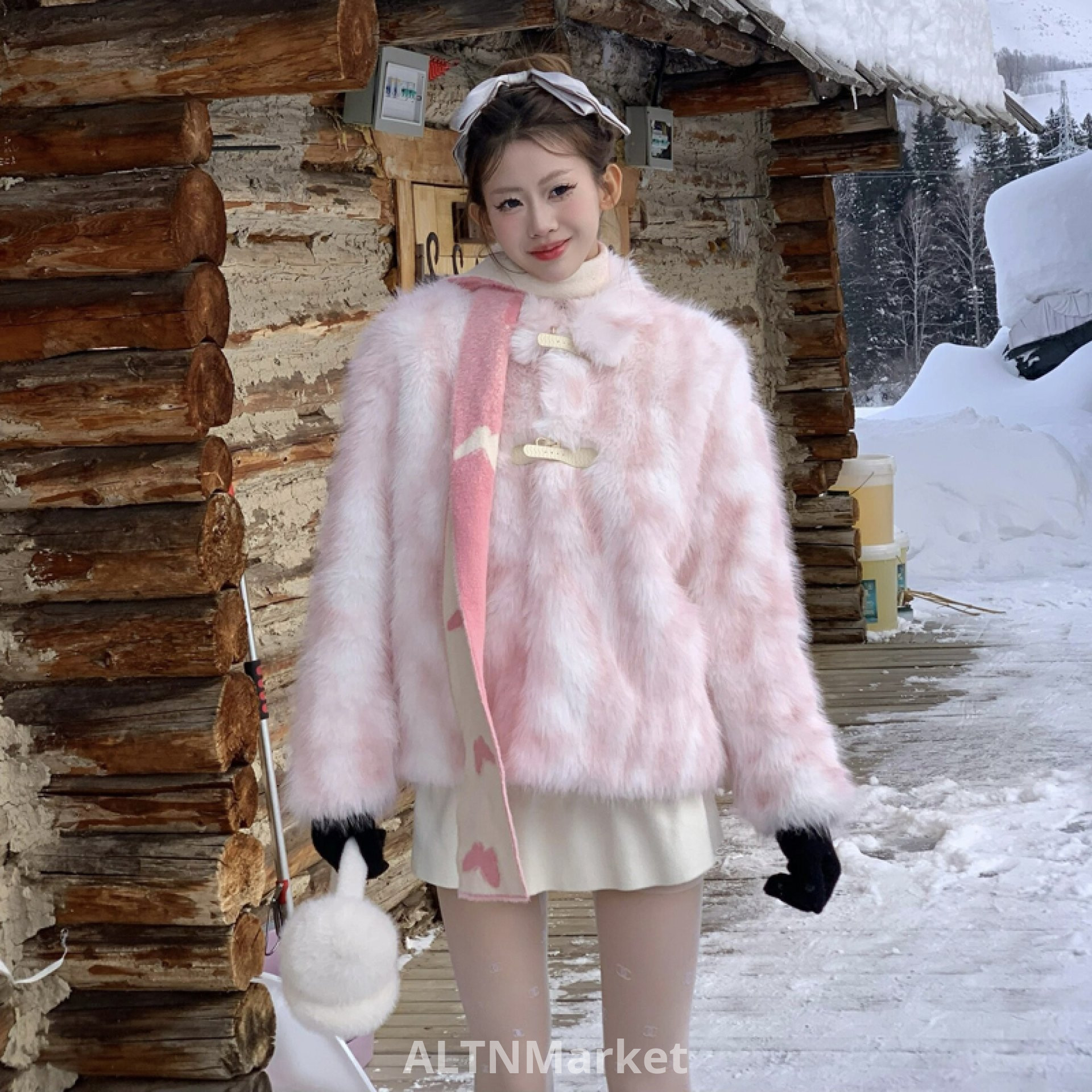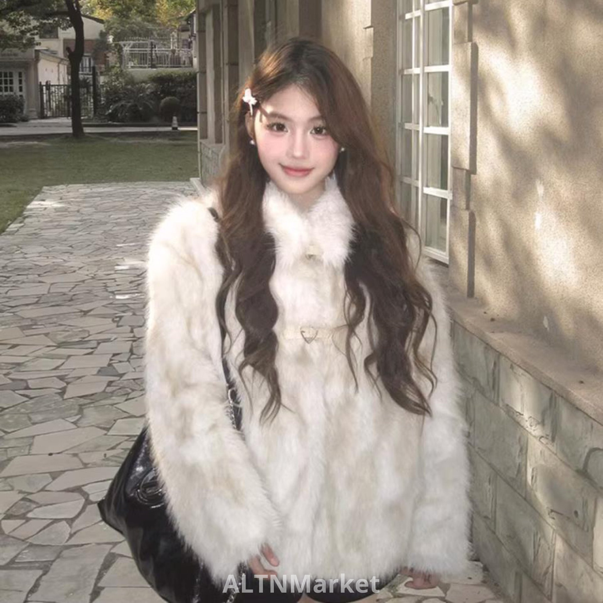 buwan studio American Style Design Gradient Embellishment Warm Top Jacket Environmentally Friendly Furry Fur Coat Winter
