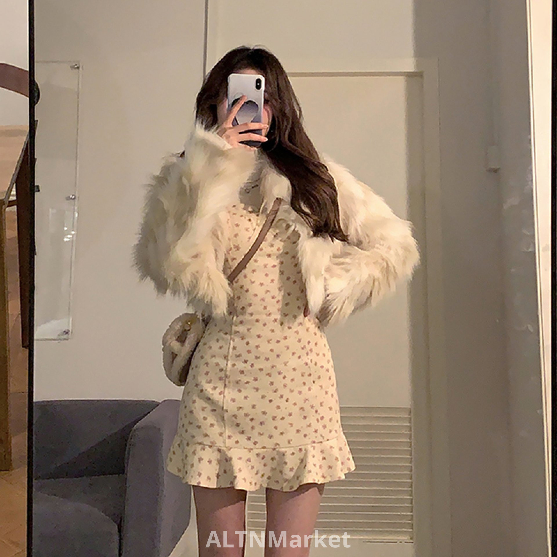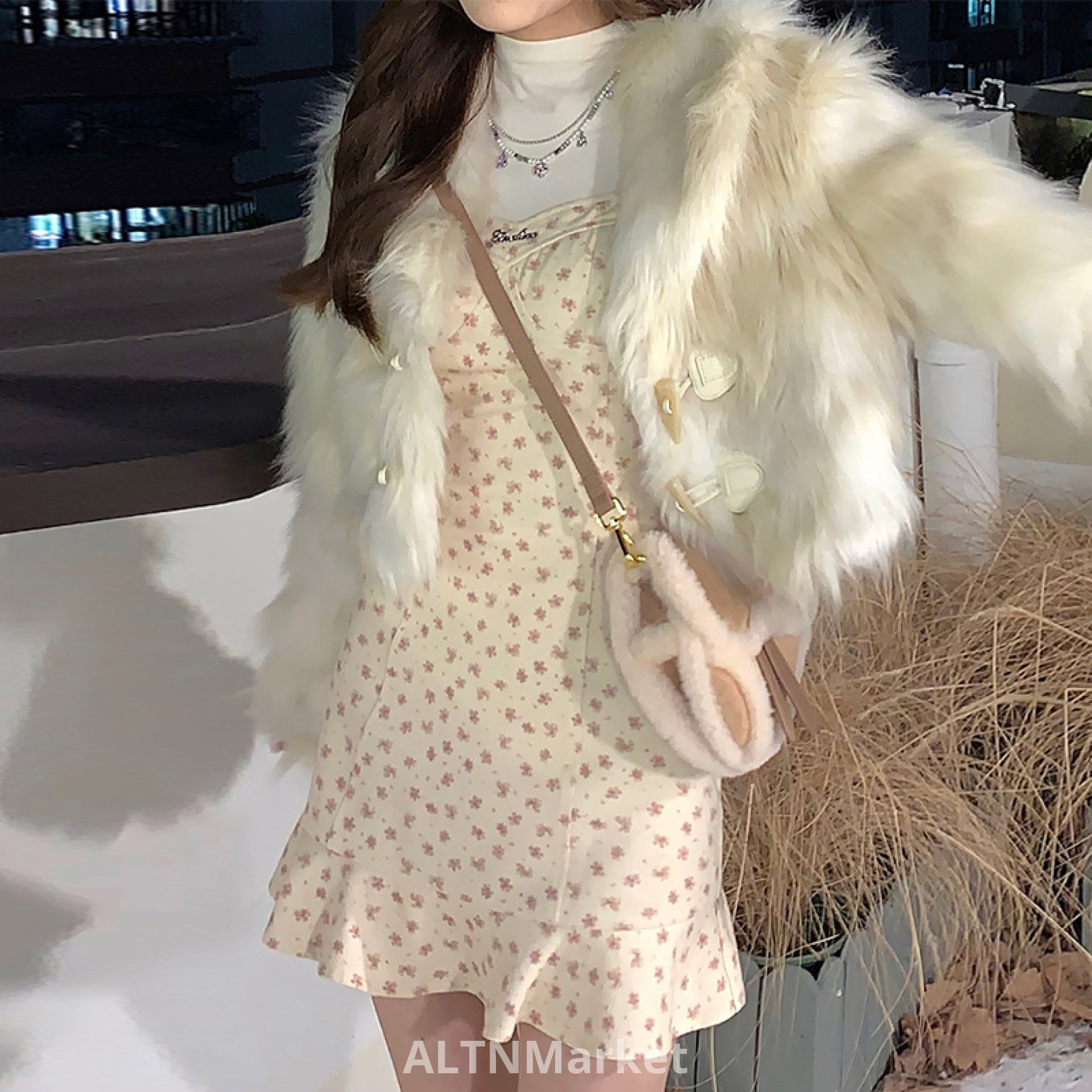 dream seven77 Thickened Short Style Winter New Style Horn Buckle The Take Mink Fox Fur Slimming Coat for Women