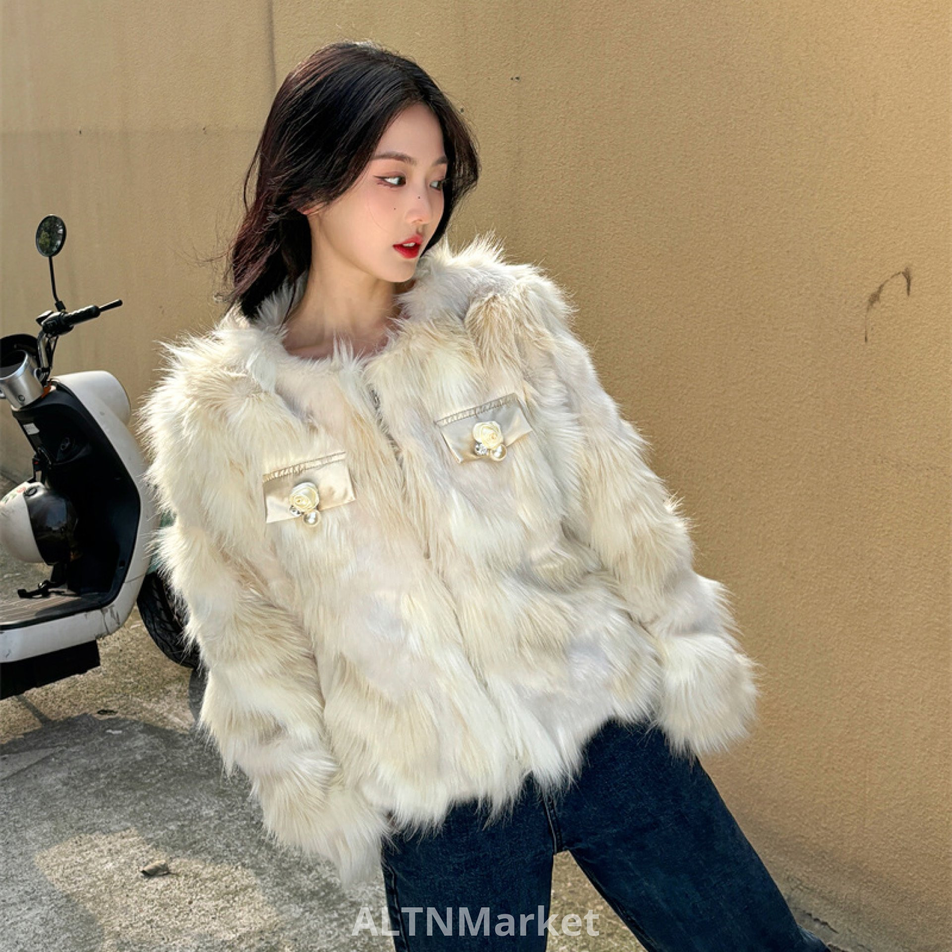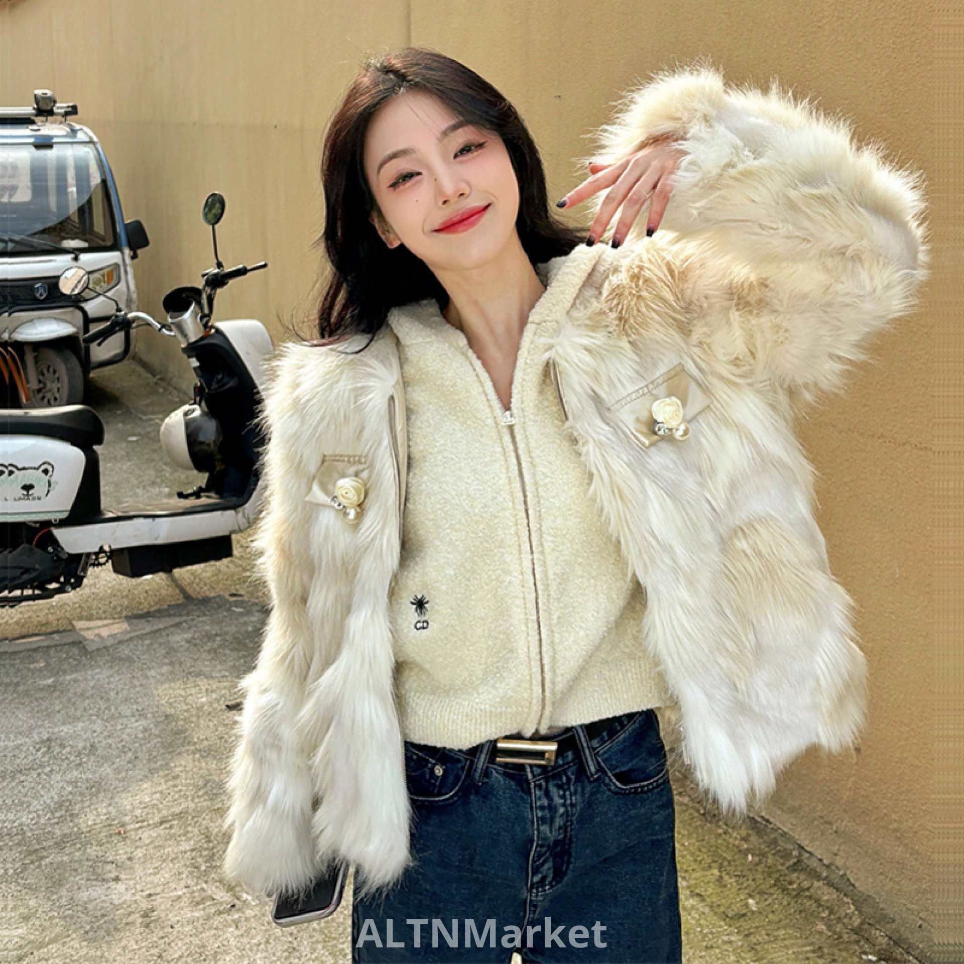 French Style Chanel Style The fox Plush Coat for Women Autumn and Winter Elegance Superior Sense Thickened Environmentally Friendly Imitation fur coat Long Sleeve Top