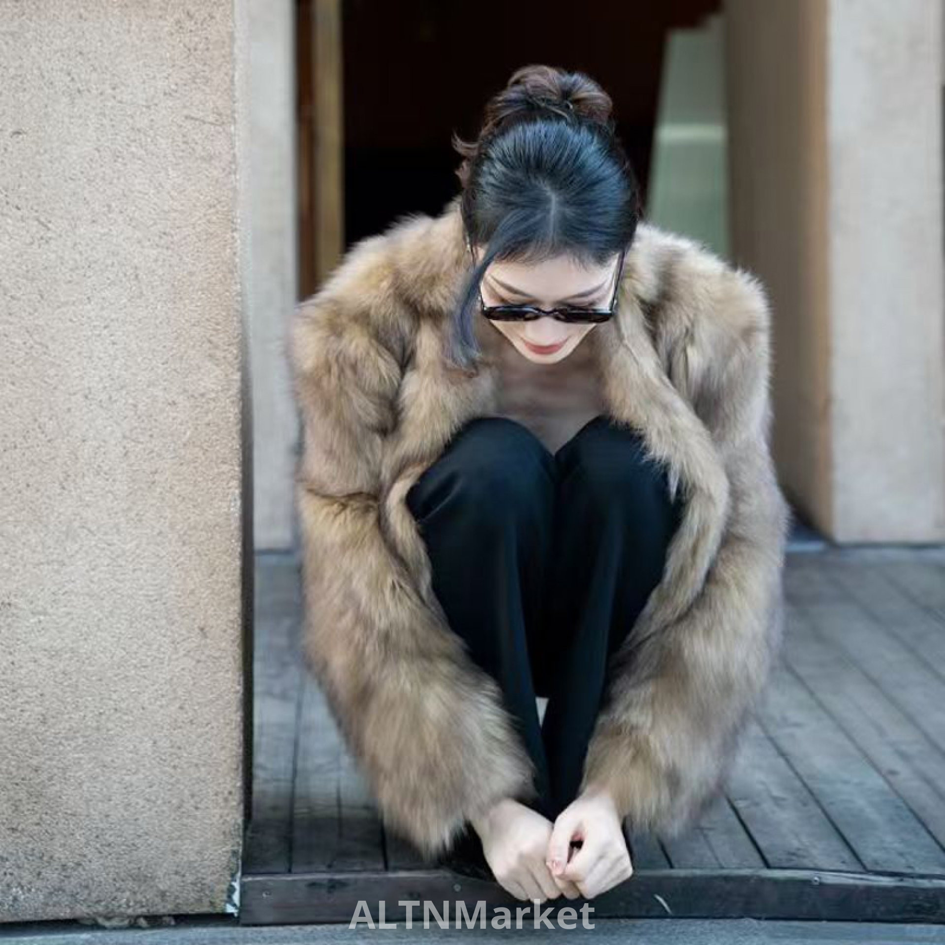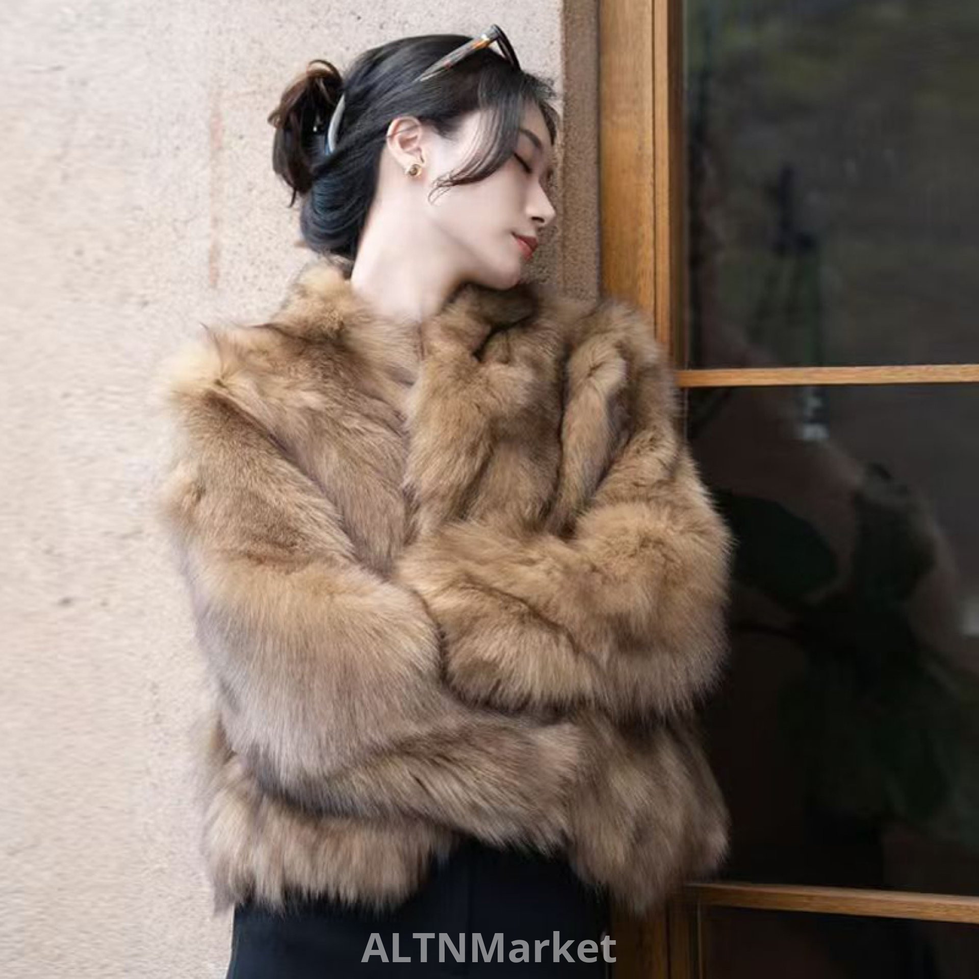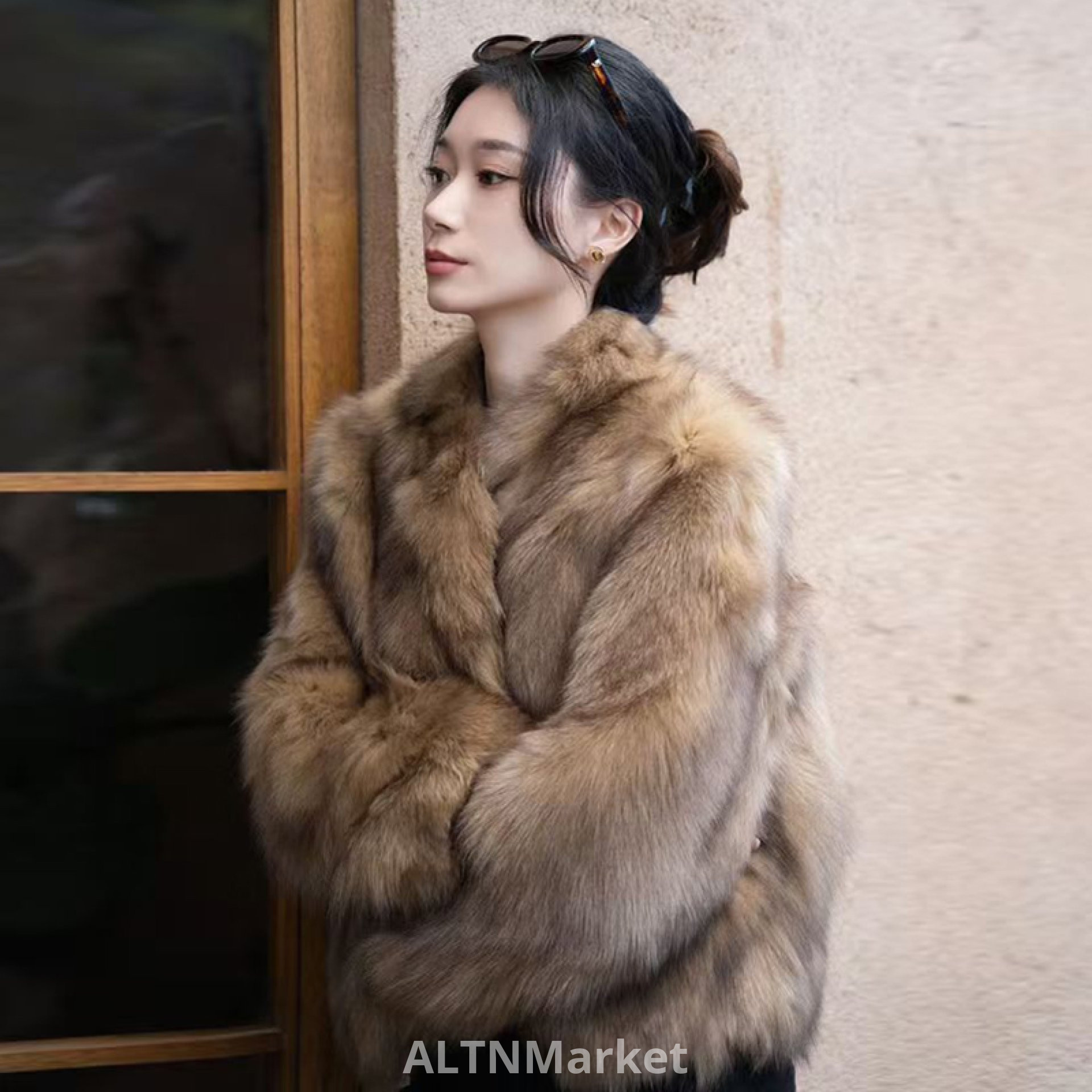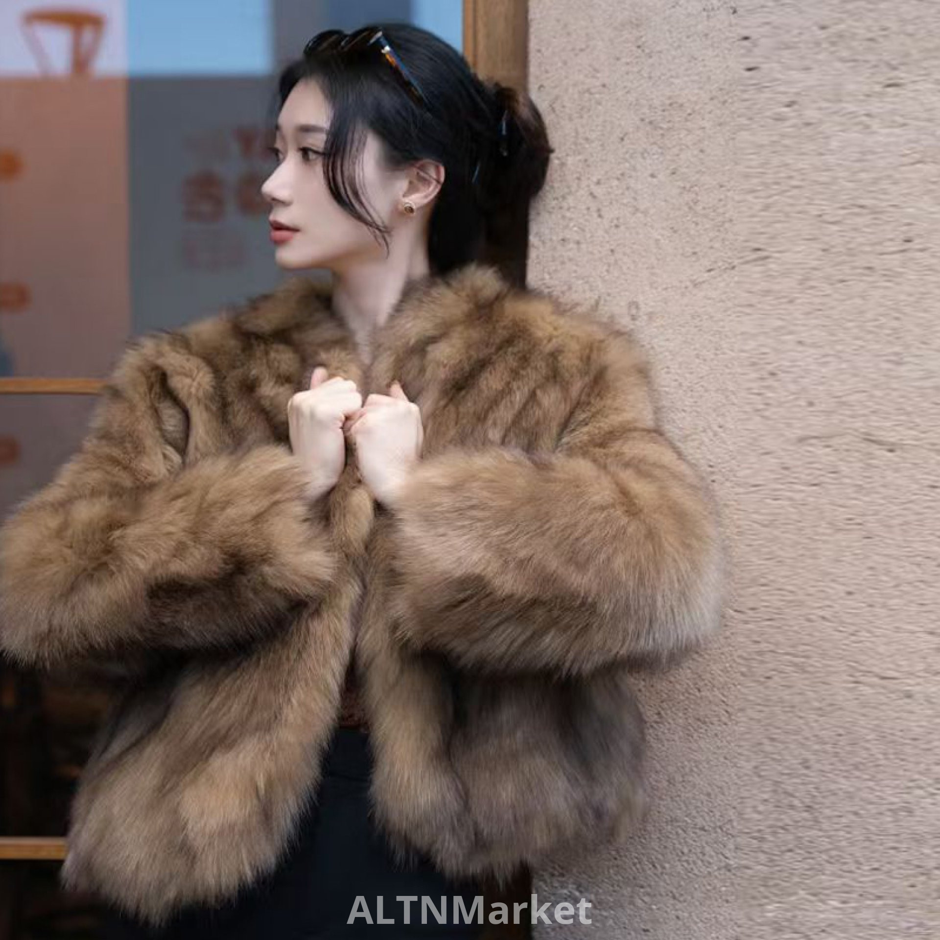 Korean Style Brown Environmentally Friendly Fox Fur Fur South Raccoon Dog Hair Pumping Article Medieval Rendering Maojian tea Short Style Furry Coat for Women