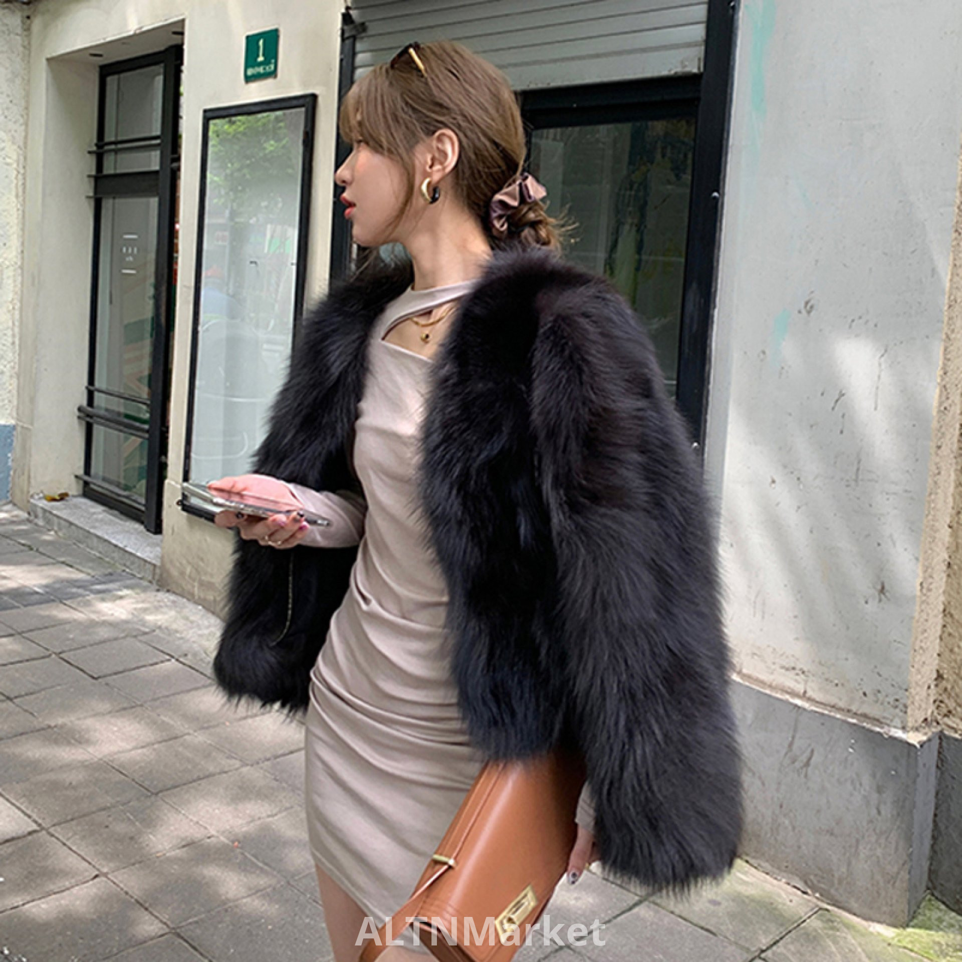 Korean Style Environmentally Friendly Imitation Fox Fur Fur Coat Haining Winter New Style Young Short Style Fashion Round Neck Furry Coat