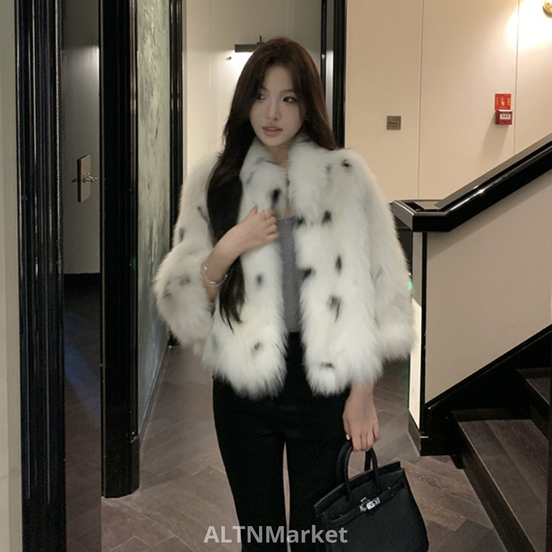 Lin Lin Fur White dews Zhi Silence Import Fox Fur Heavy Industry Leopard Print Fur Coat New Style Women Furry Young A