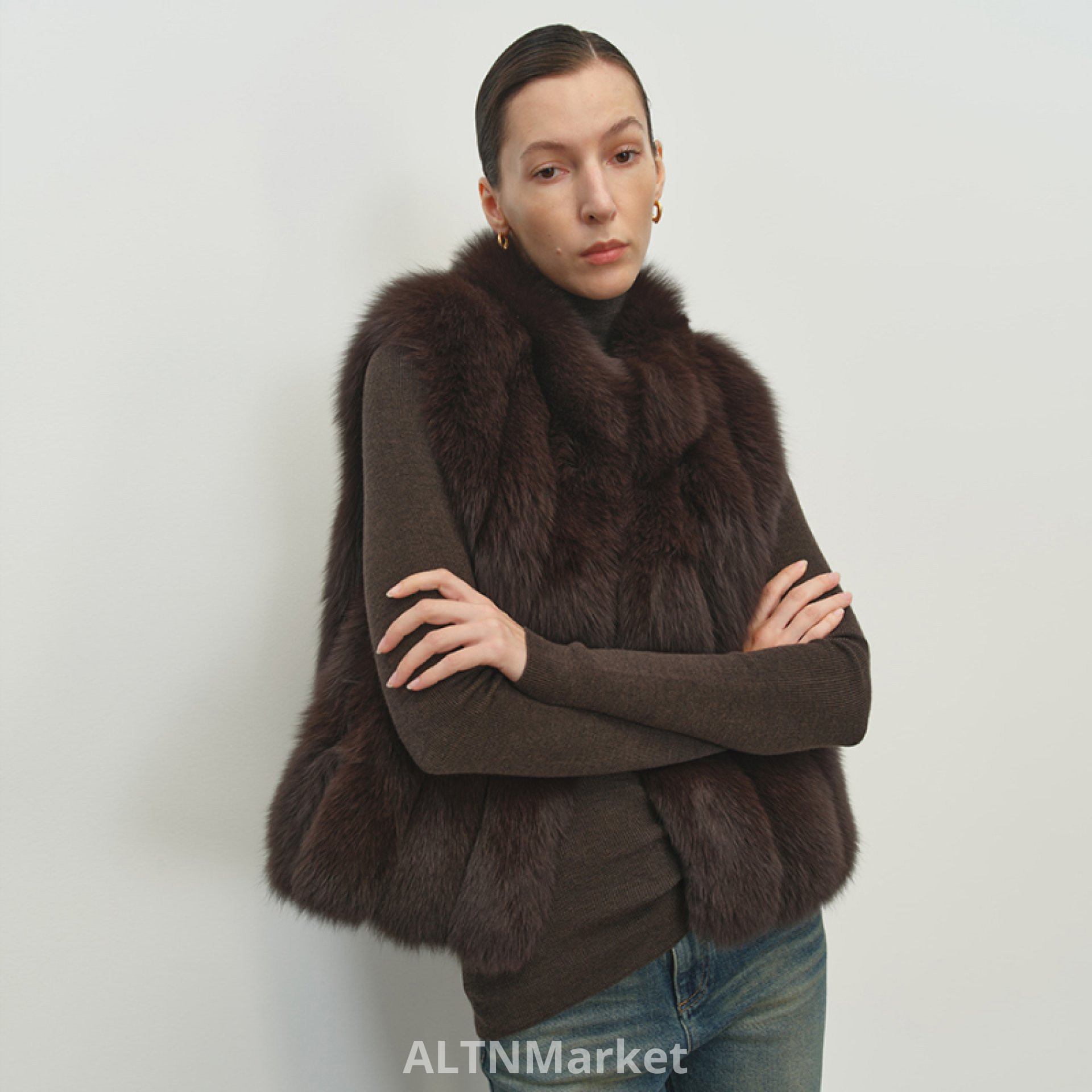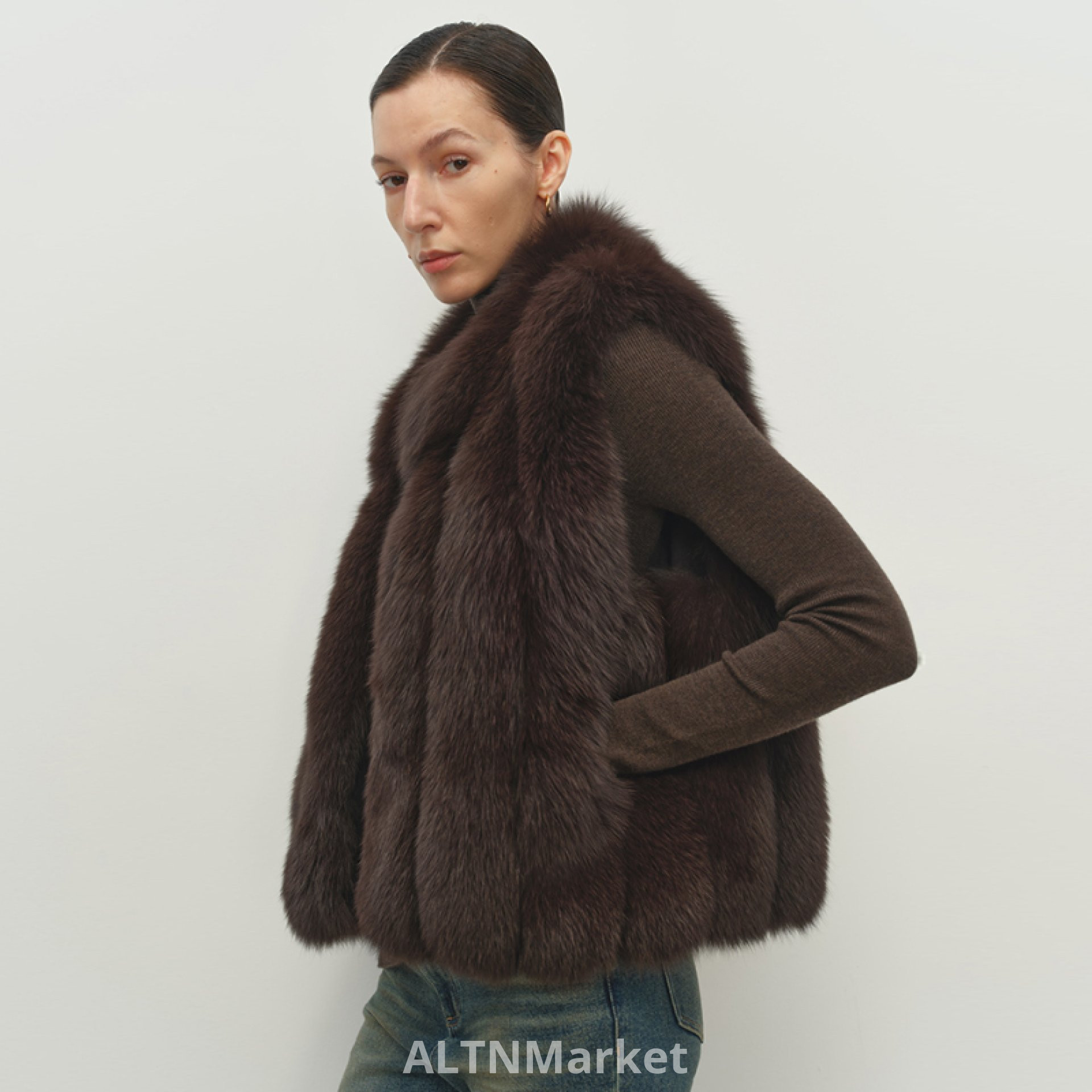 msbeast Fashionable Stack Wear Finland Import Blue Fox Back Hair Mandarin collar Vertical Row Fur Vest Short ... Jeju Snow Environment