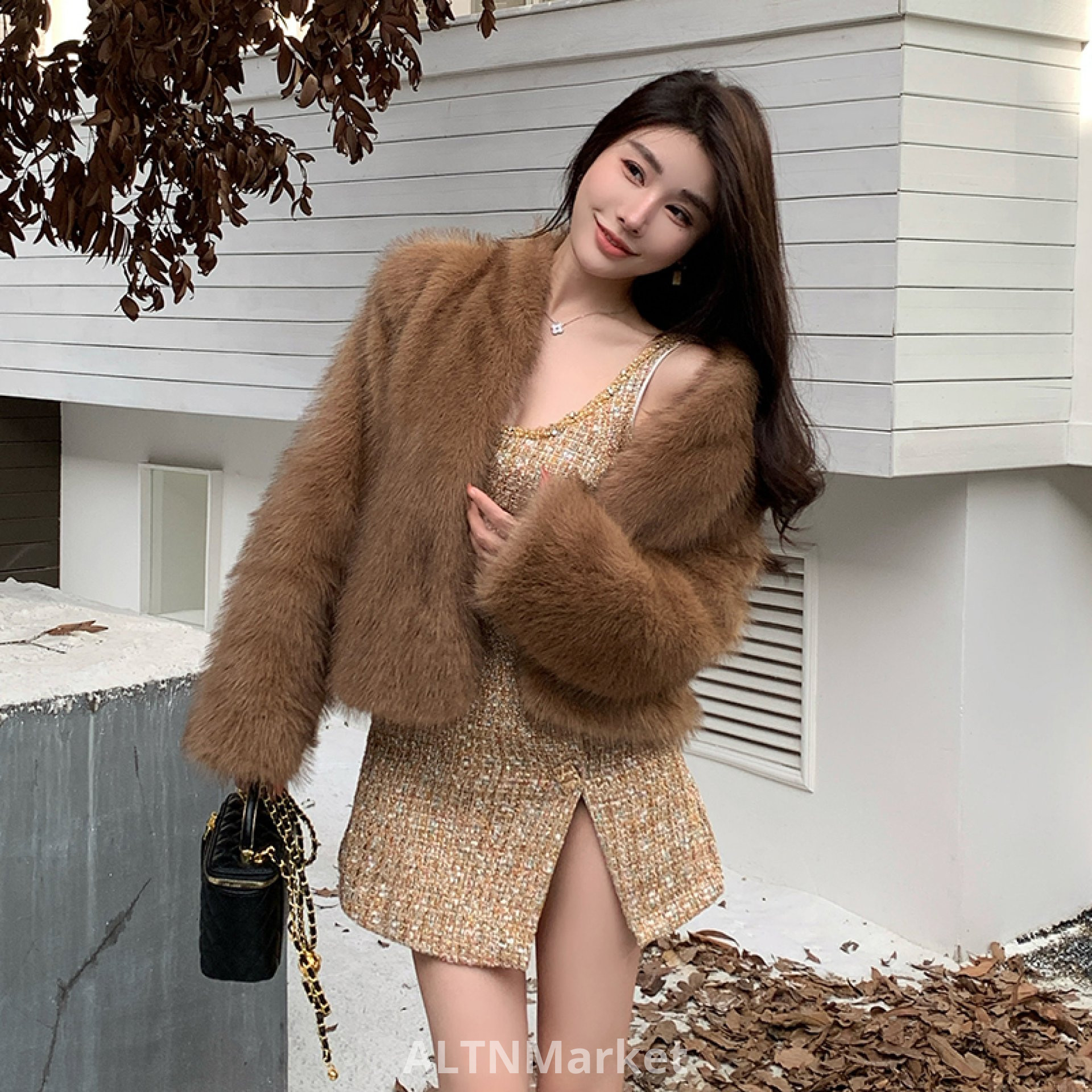 real photo American Style Brown Environmentally Friendly Fur Coat for Women Winter New Style Superior Sense Fashion Elegance Socialite Furry Top