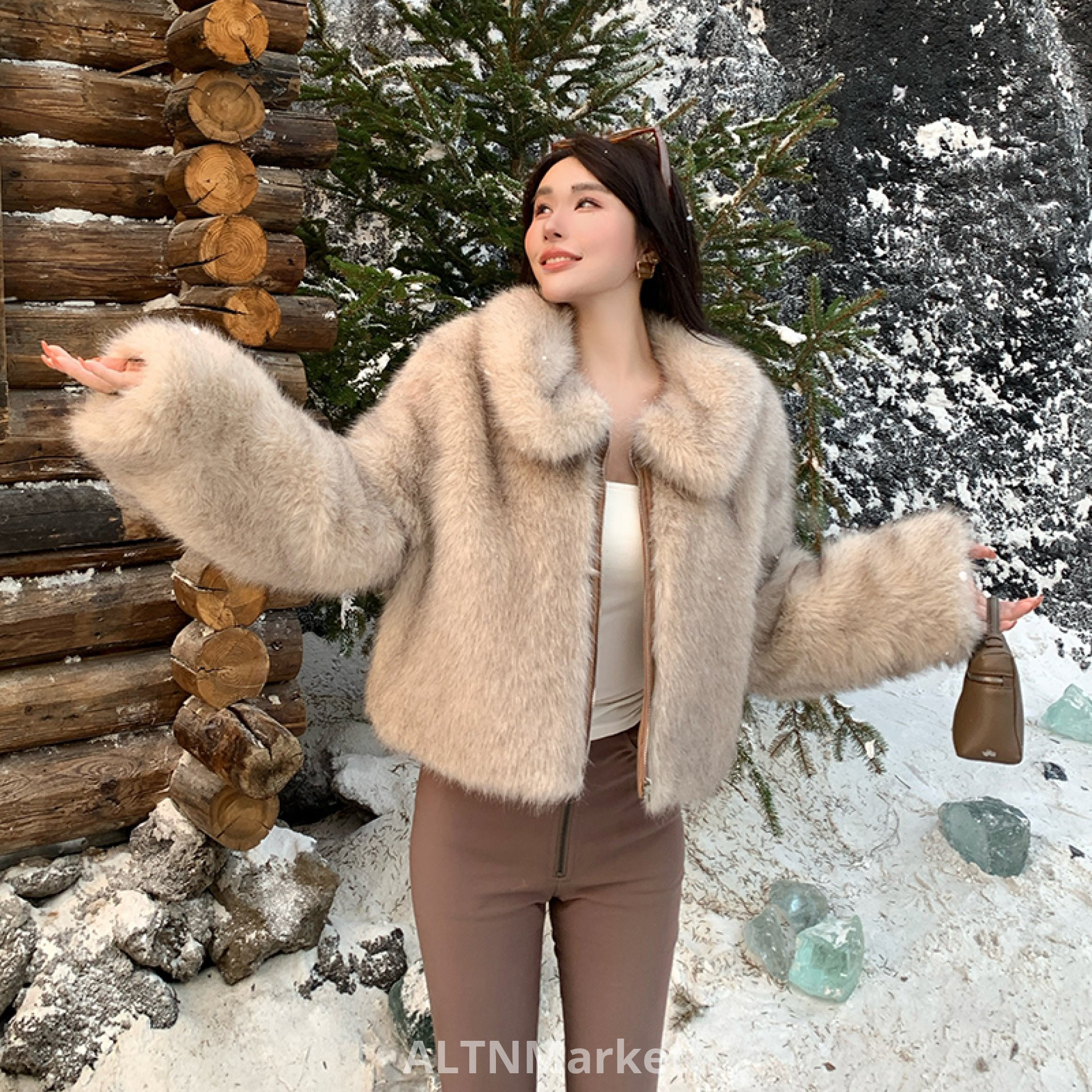 real photo Chestnut Cocoa Korean Style Winter Imitation Finland The fox Fur Winter Environmentally Friendly Furry Coat Mink Coat