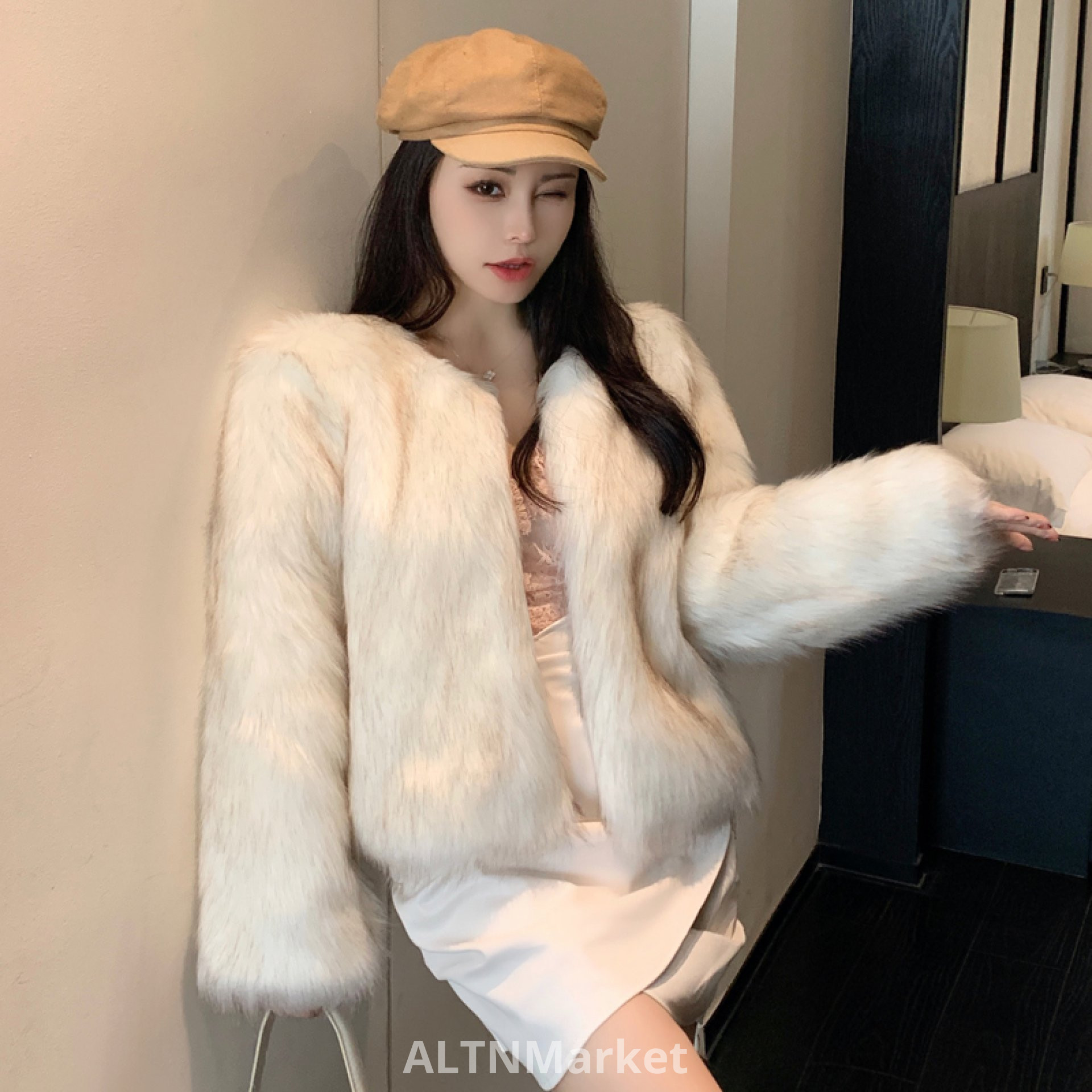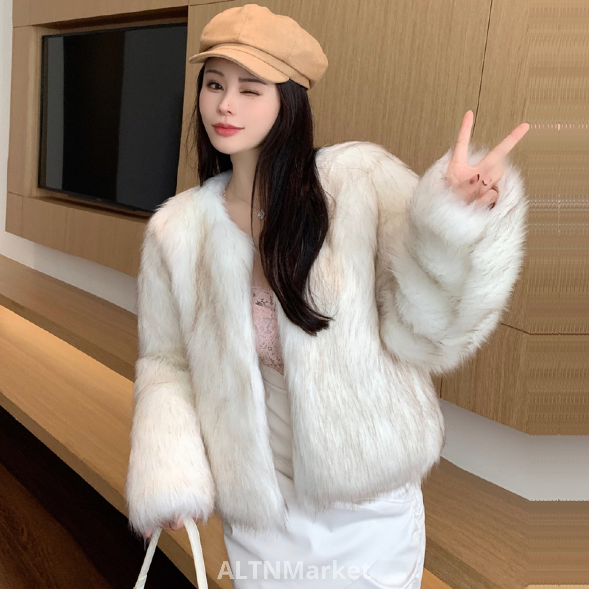 real photo Environmentally Friendly Fur Female Short Slimming Imitation The fox Plush Dyeing Maojian tea Winter New Style Korean Style Furry Coat