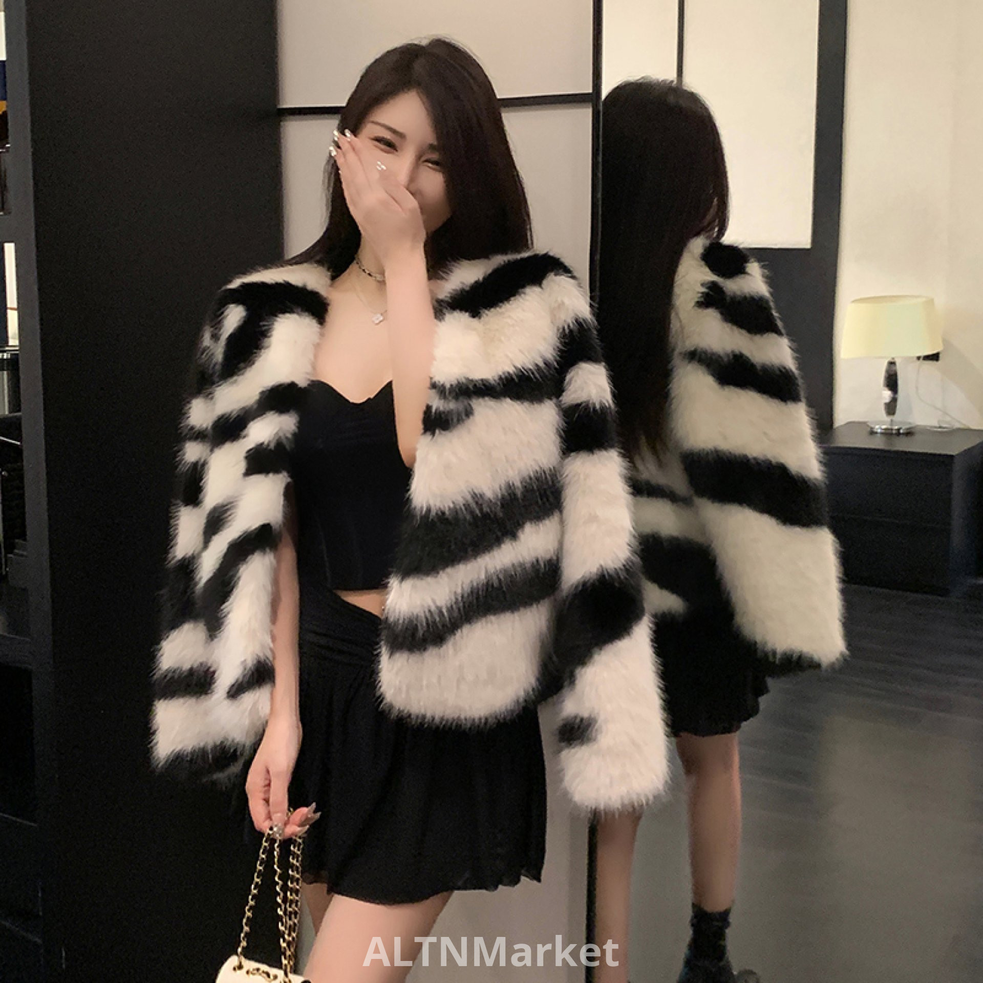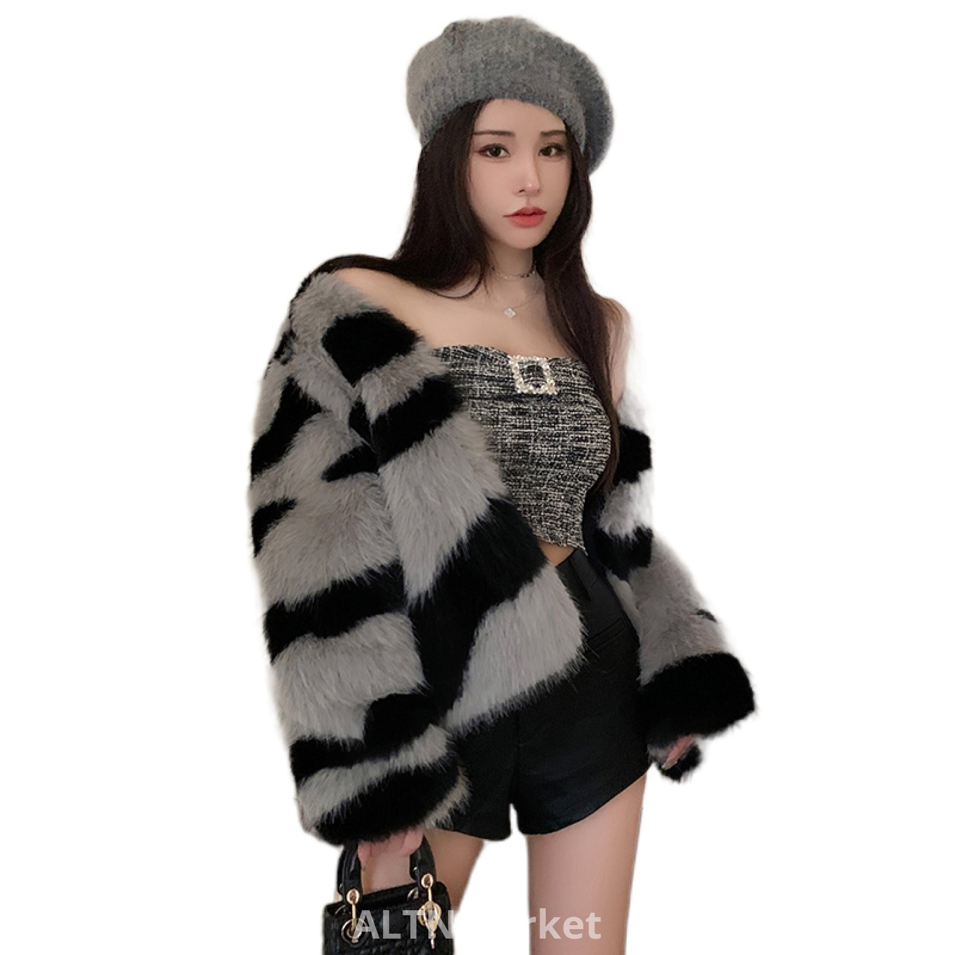 real photo Imitation Fox Fur Zebra With Fur Cardigan coat Female Winter New Style Niche Young A Light Luxury Elegance Furry