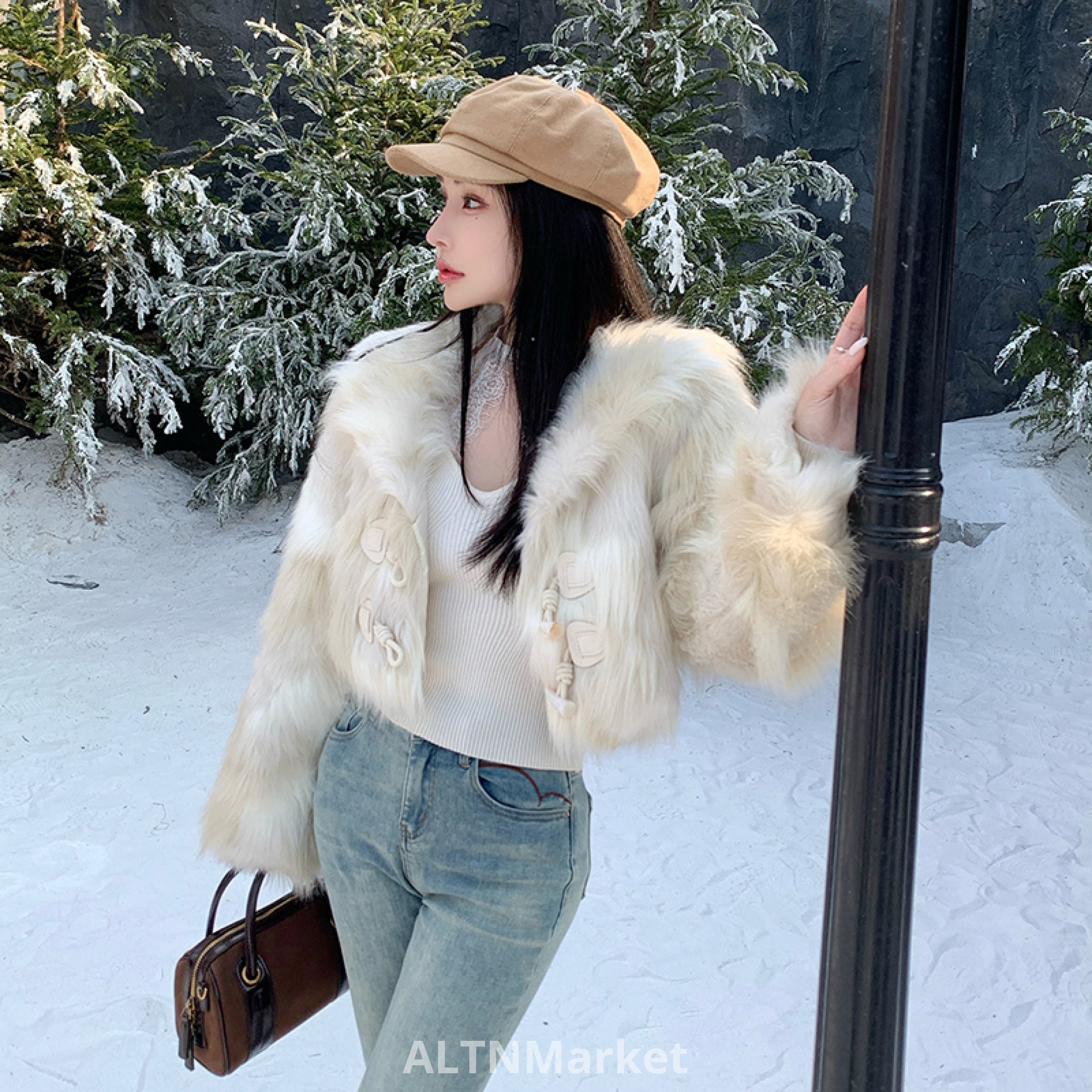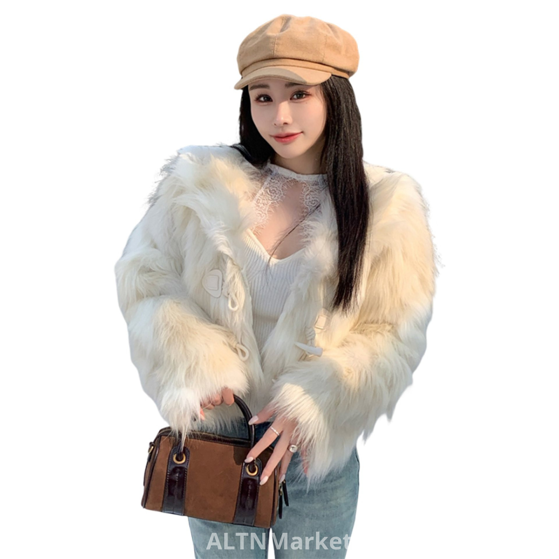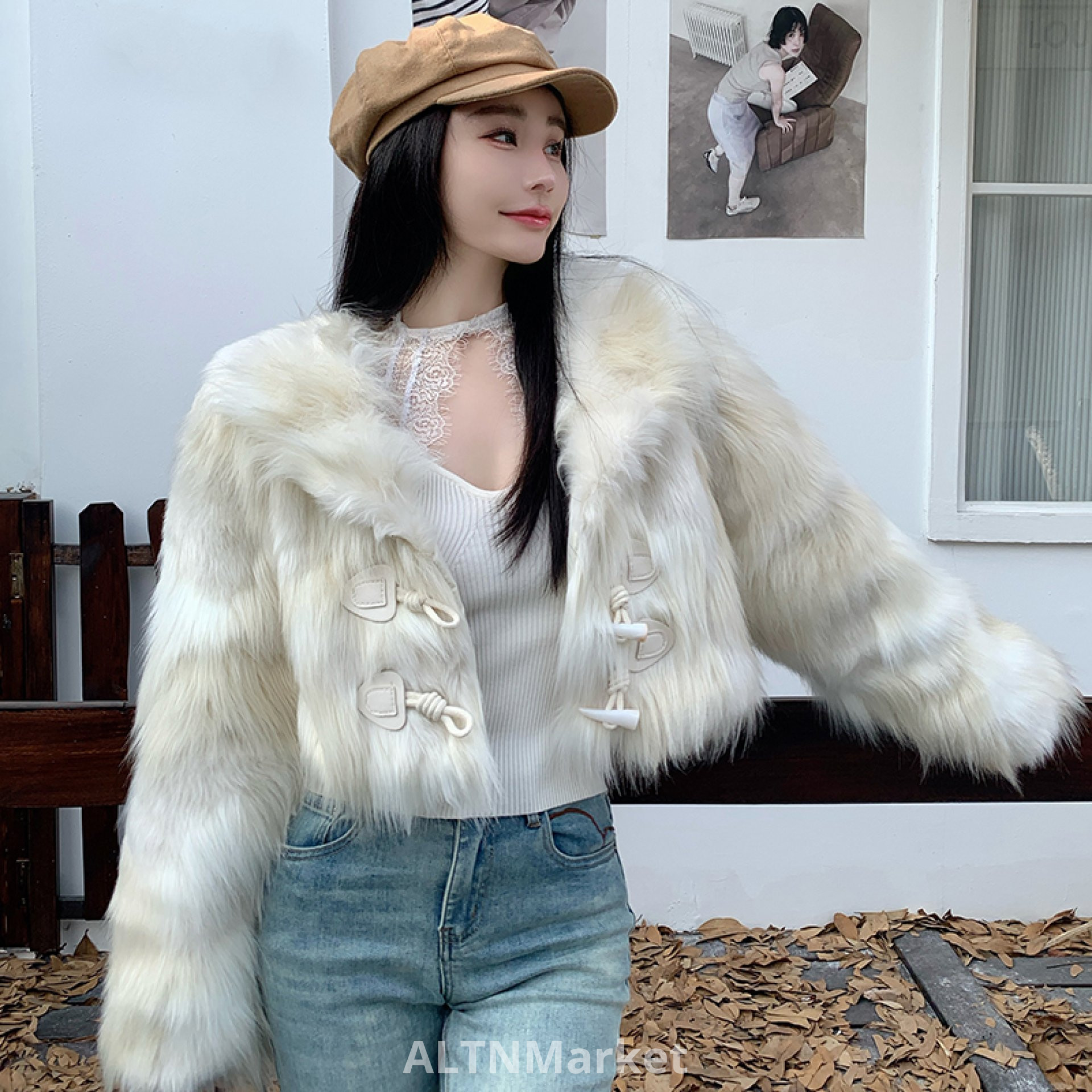 real photo Imitation The fox Fur Korean Style Horn Buckle Furry Coat New Style The Take Loose Fit Thick Turn-Down Collar Short Style Top