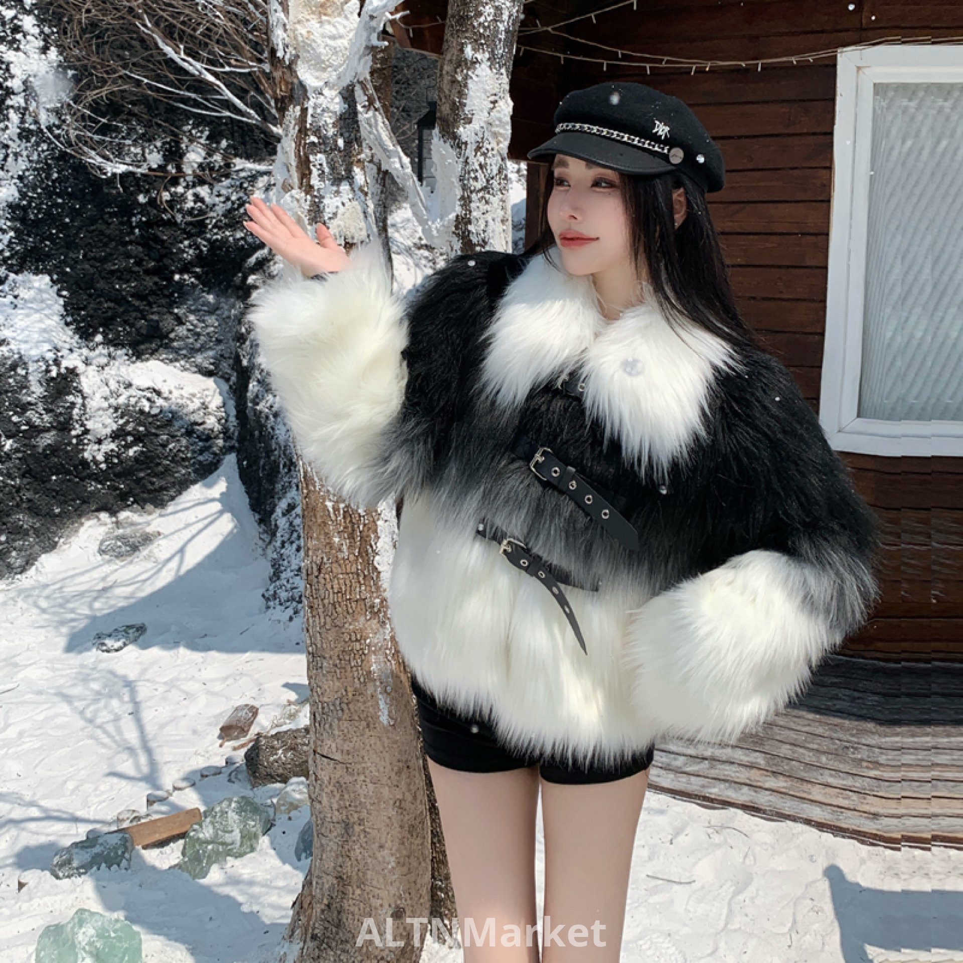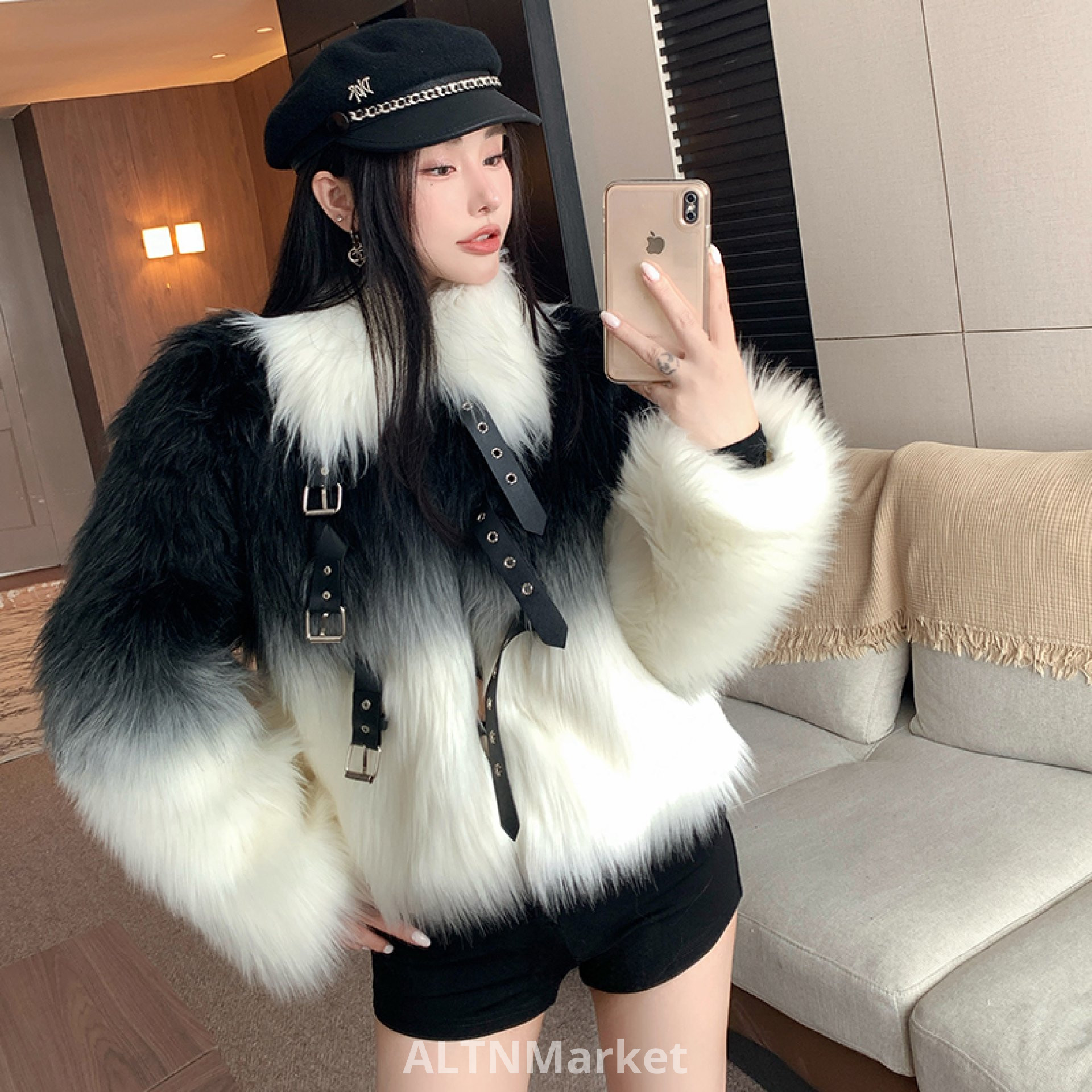 real photo Korean Style Gradient Leather Buckle Imitation The fox Fur Coat Winter New Style Elegance Petite Environmentally Friendly Furry Coat for Women