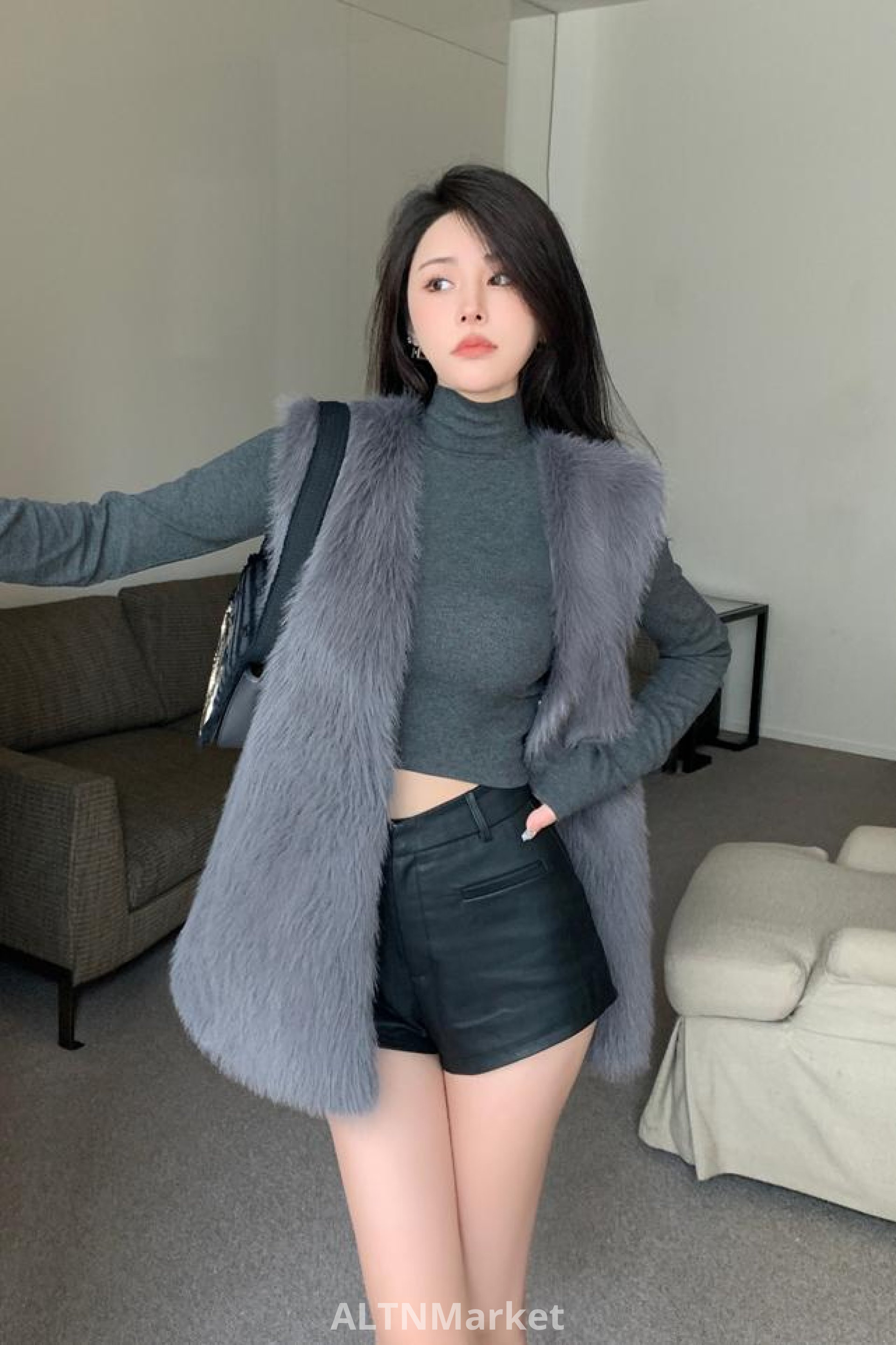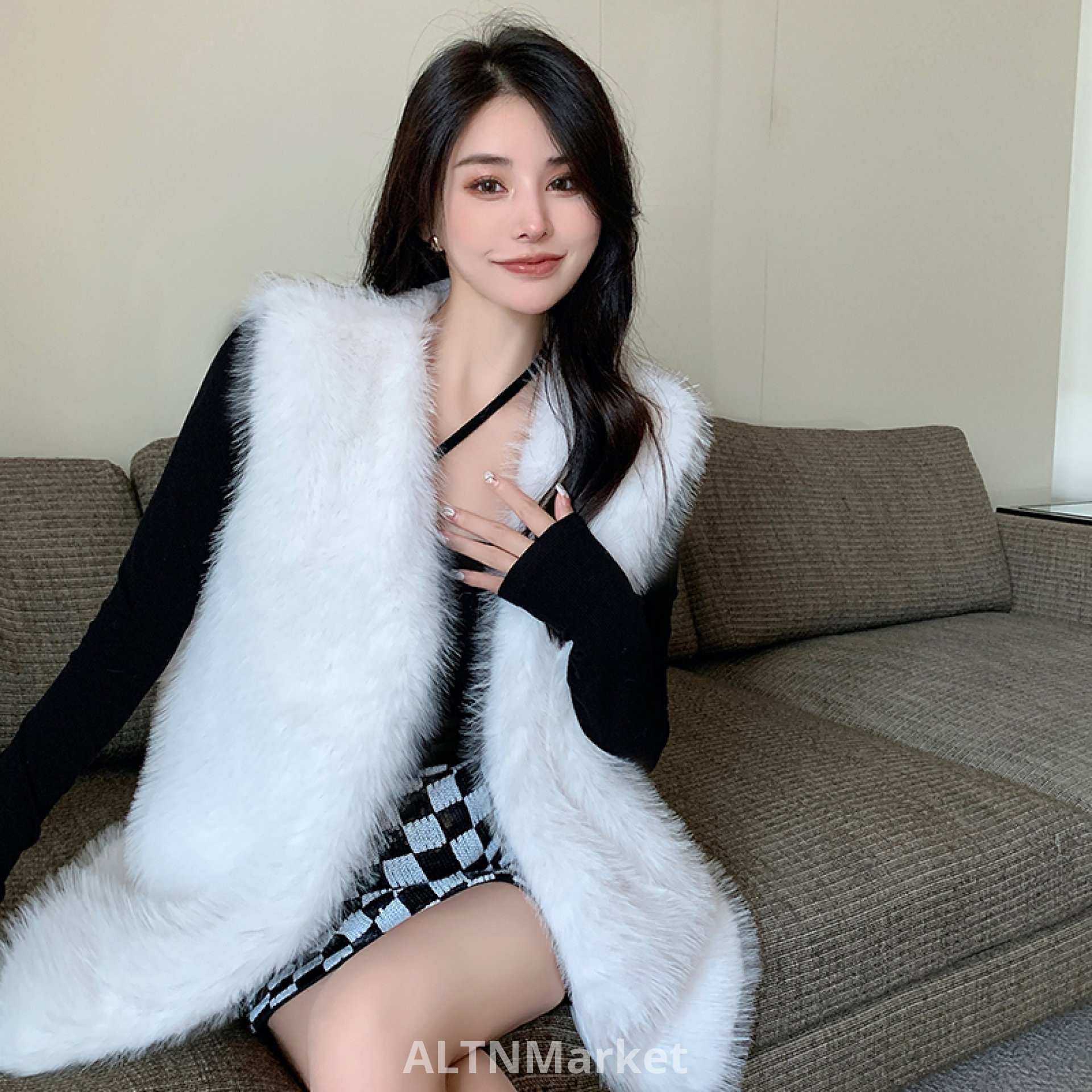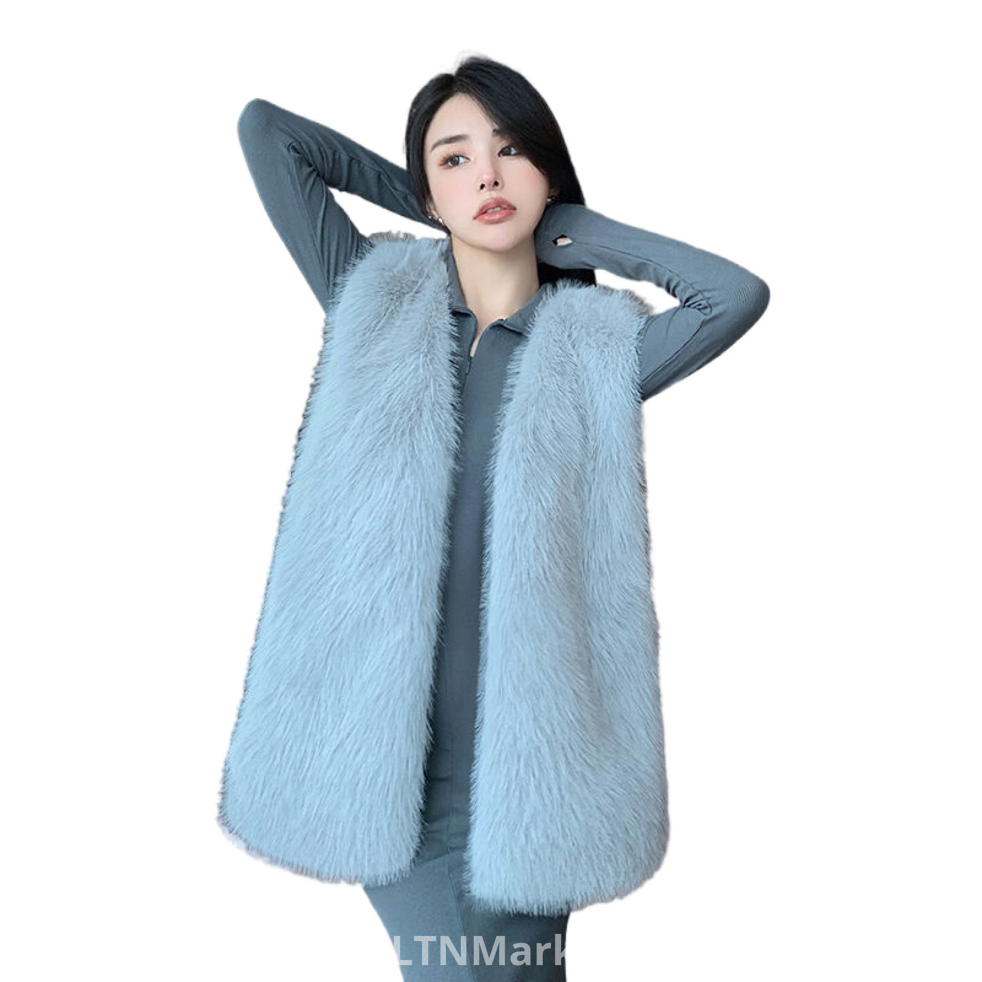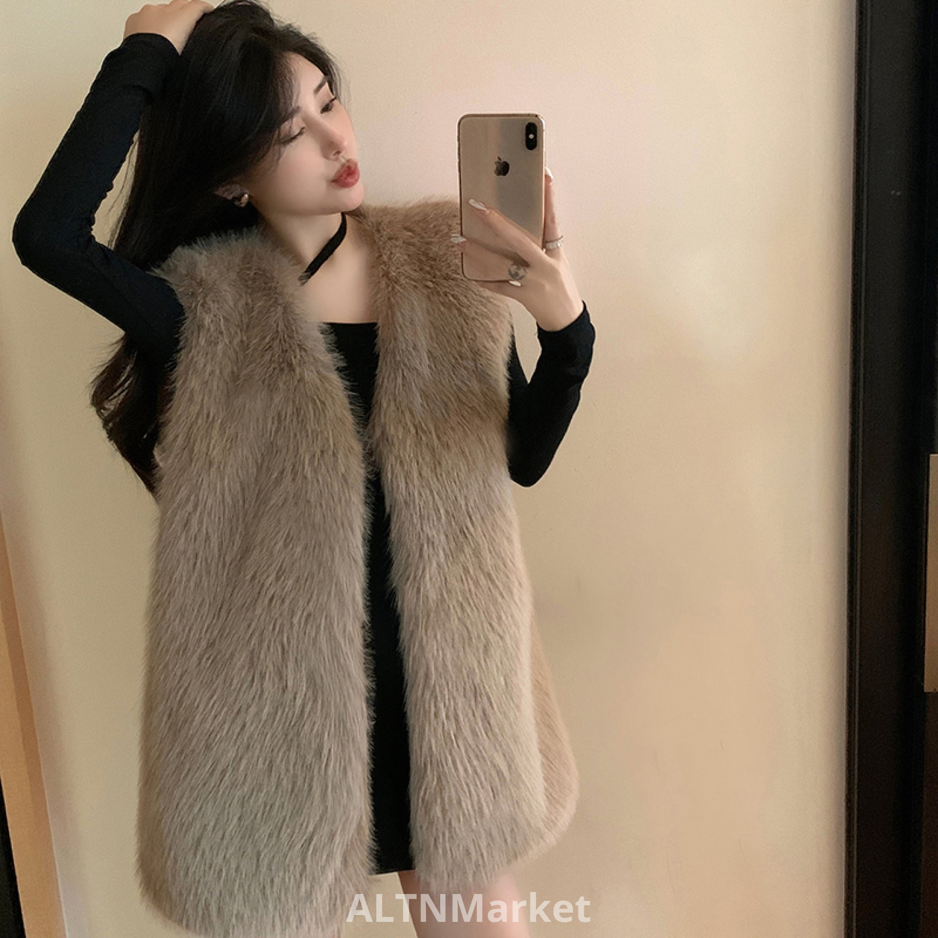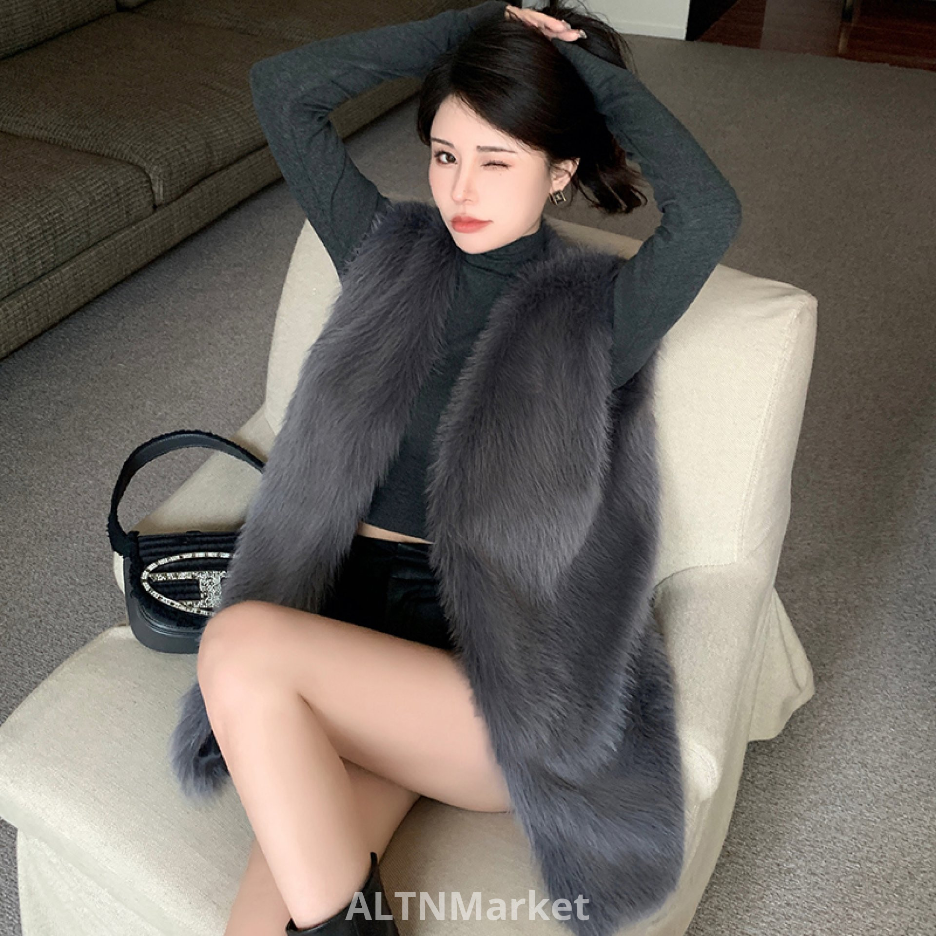 real photo Korean Style New Style Imitation Fox Fur Sleeveless Vest Fur Vest for Women Mid-Length Style Vest Environmentally Friendly Raccoon Fur Coat