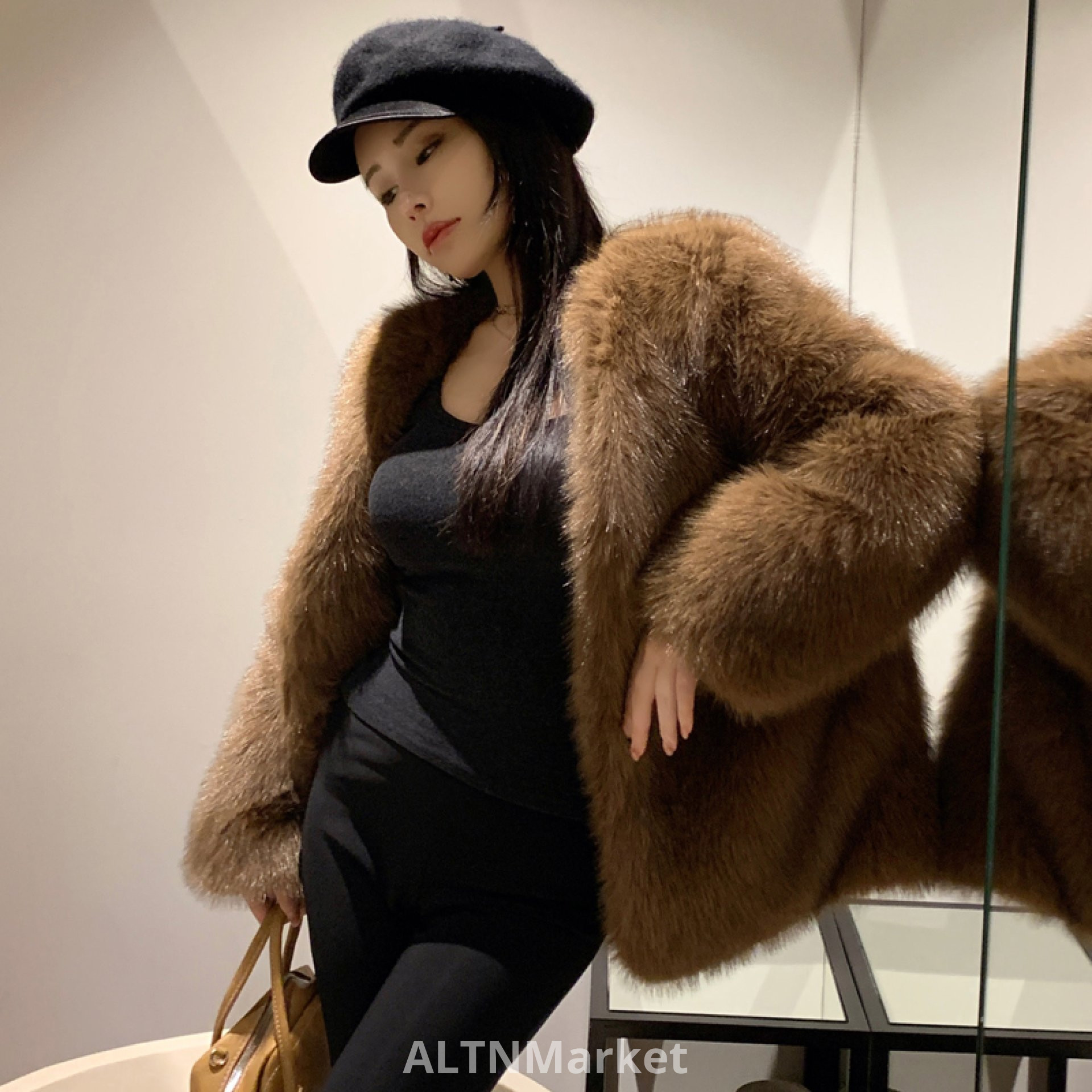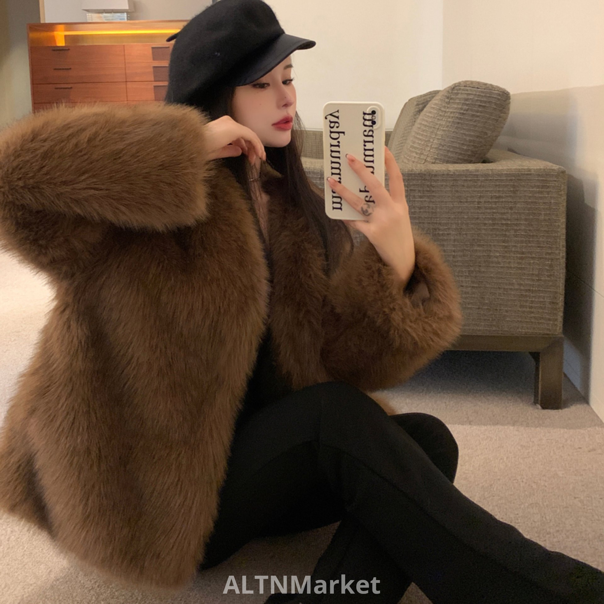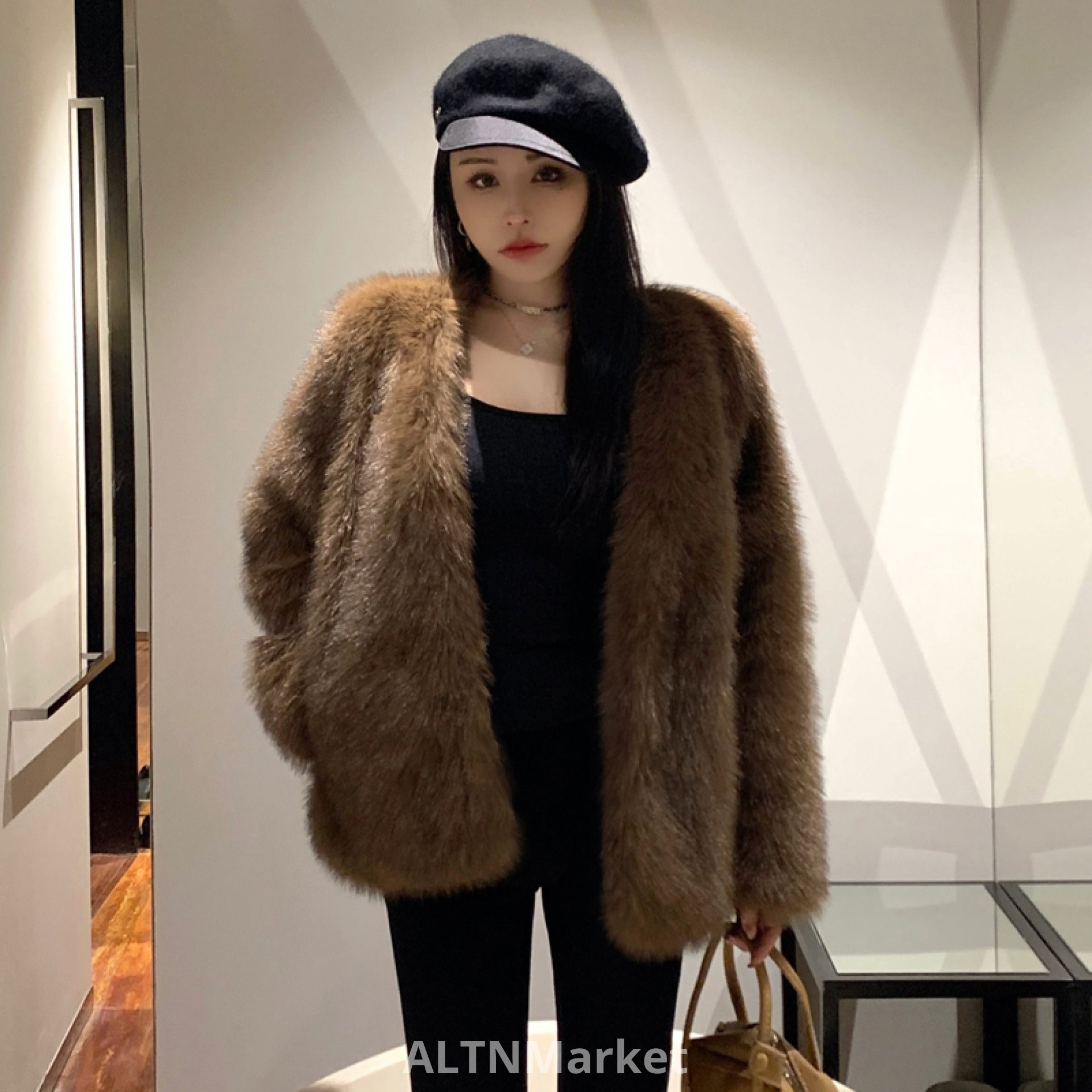 real photo Korean Style Support Card Environmentally Friendly Imitation fur coat Imitation Fox Fur Winter Warm Rendering V Neck Versatile Furry Coat for Women