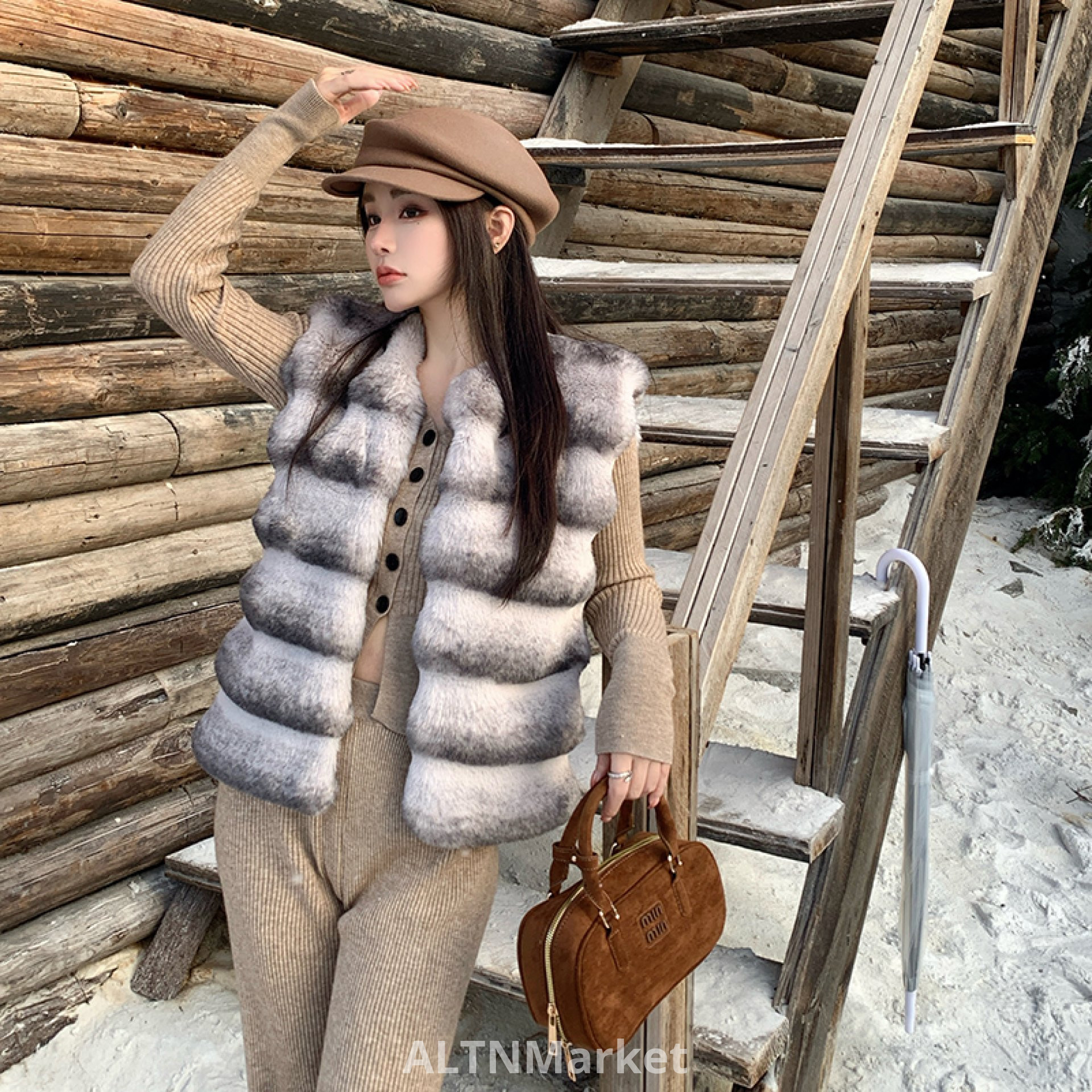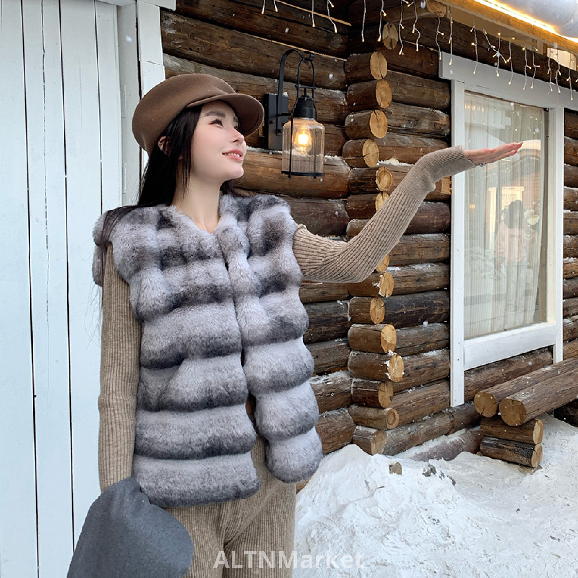 real photo Superior Sense Fashionable Lady Green -Blue Dragon Cat Coat for Women Environmentally Friendly Rabbit Fur Fur Vest Short Style Vest