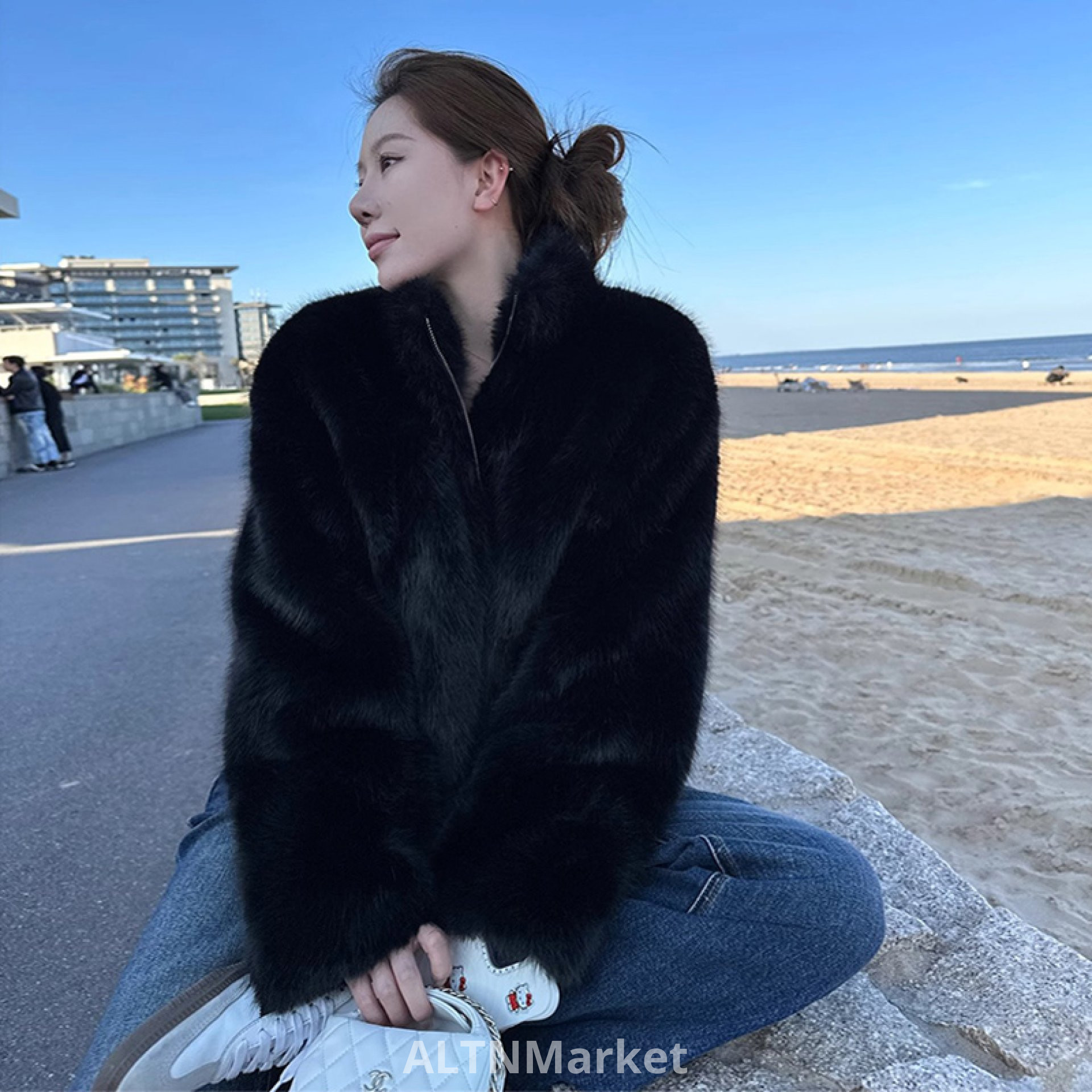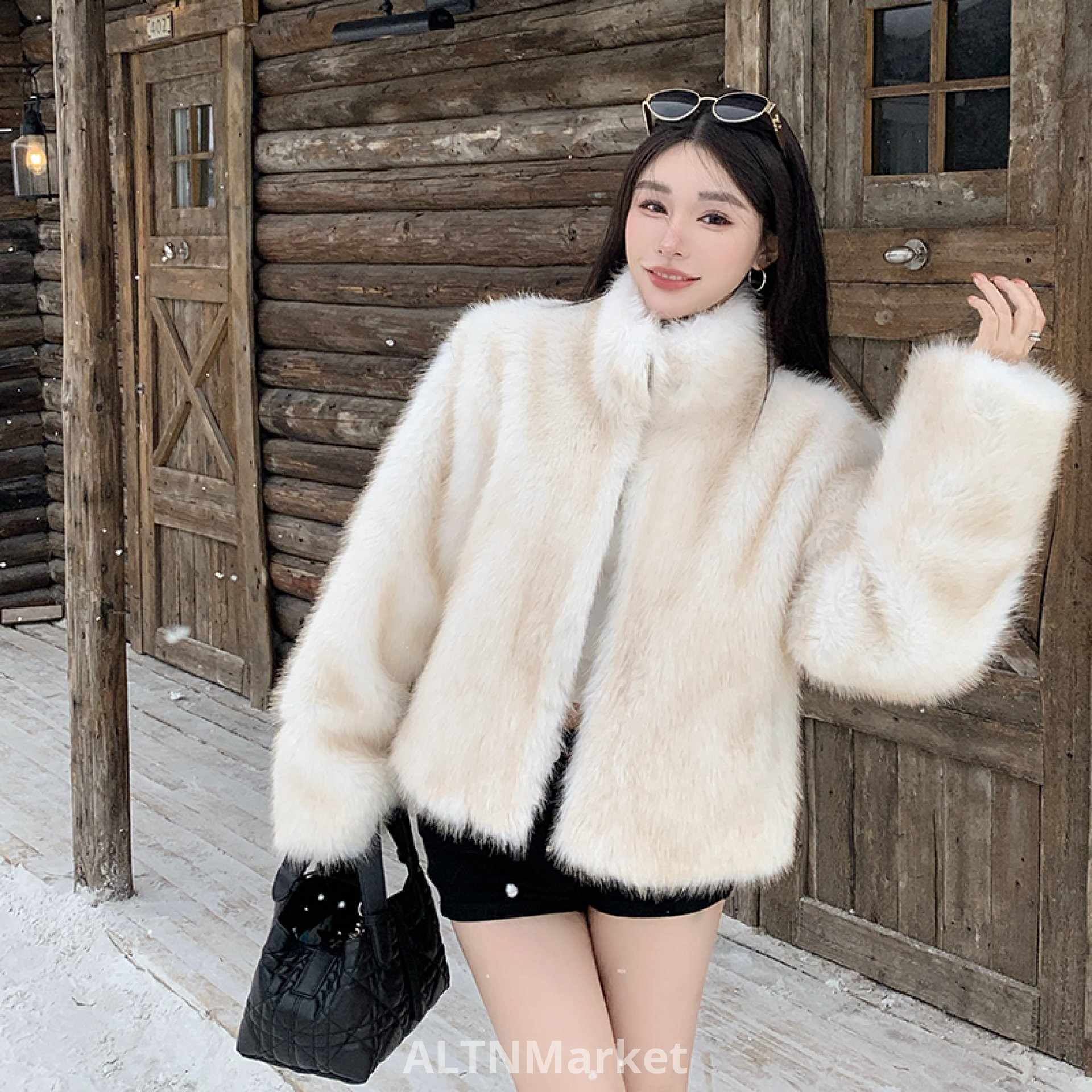 real photo Winter Environmentally Friendly Furry Small Milk Fox Maojian tea Halo Dyeing Environmentally Friendly The fox Furry Thickened Warm Coat for Women