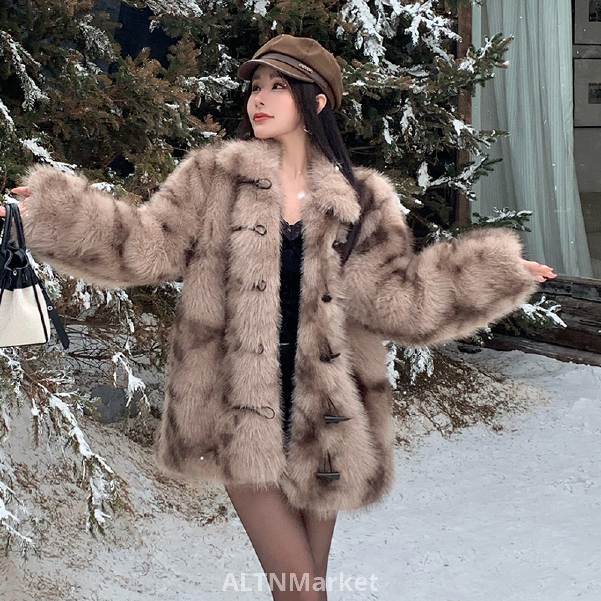 real photo Winter Korean Style Horn Buckle New Style Mid-Length Style Coat Fashion Environmentally Friendly The fox Furry Fur Coat Women