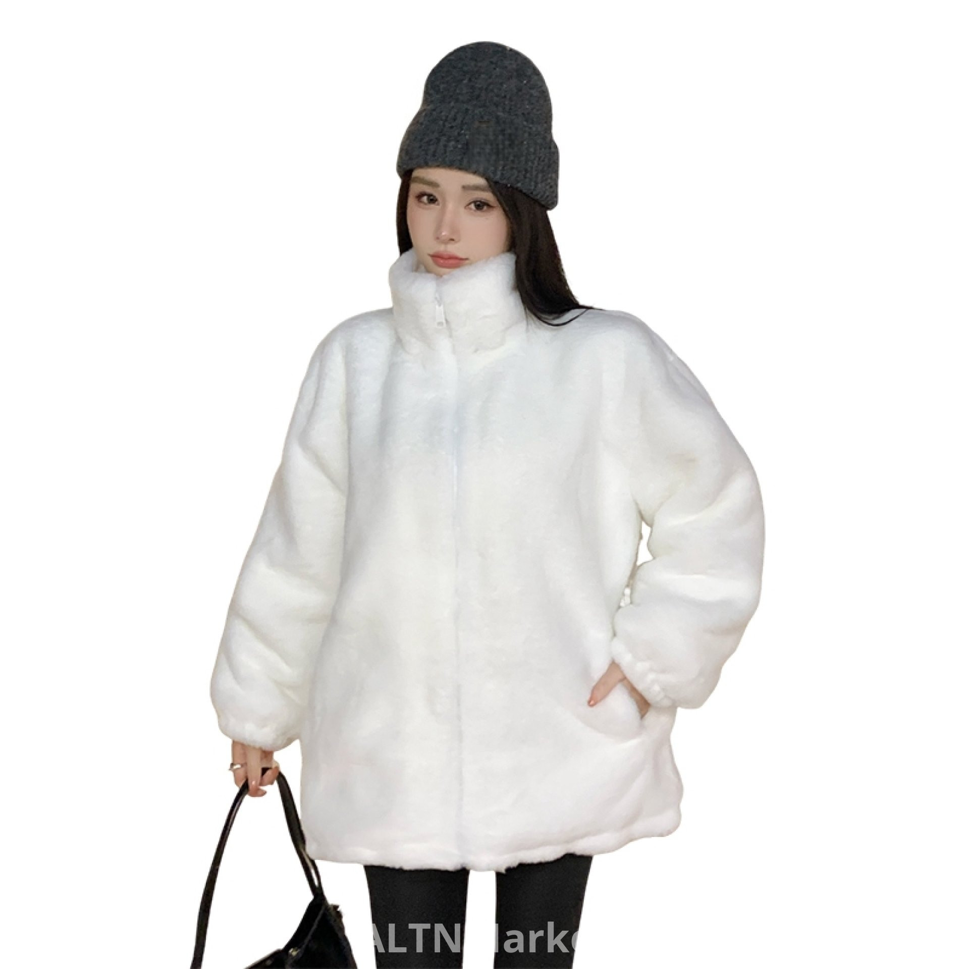 real photo Winter New Style Imitation Rex rabbit Hair Coat for Women Loose Fit Slimming Versatile Plush Environmentally Friendly Rabbit Fur Fur Coat