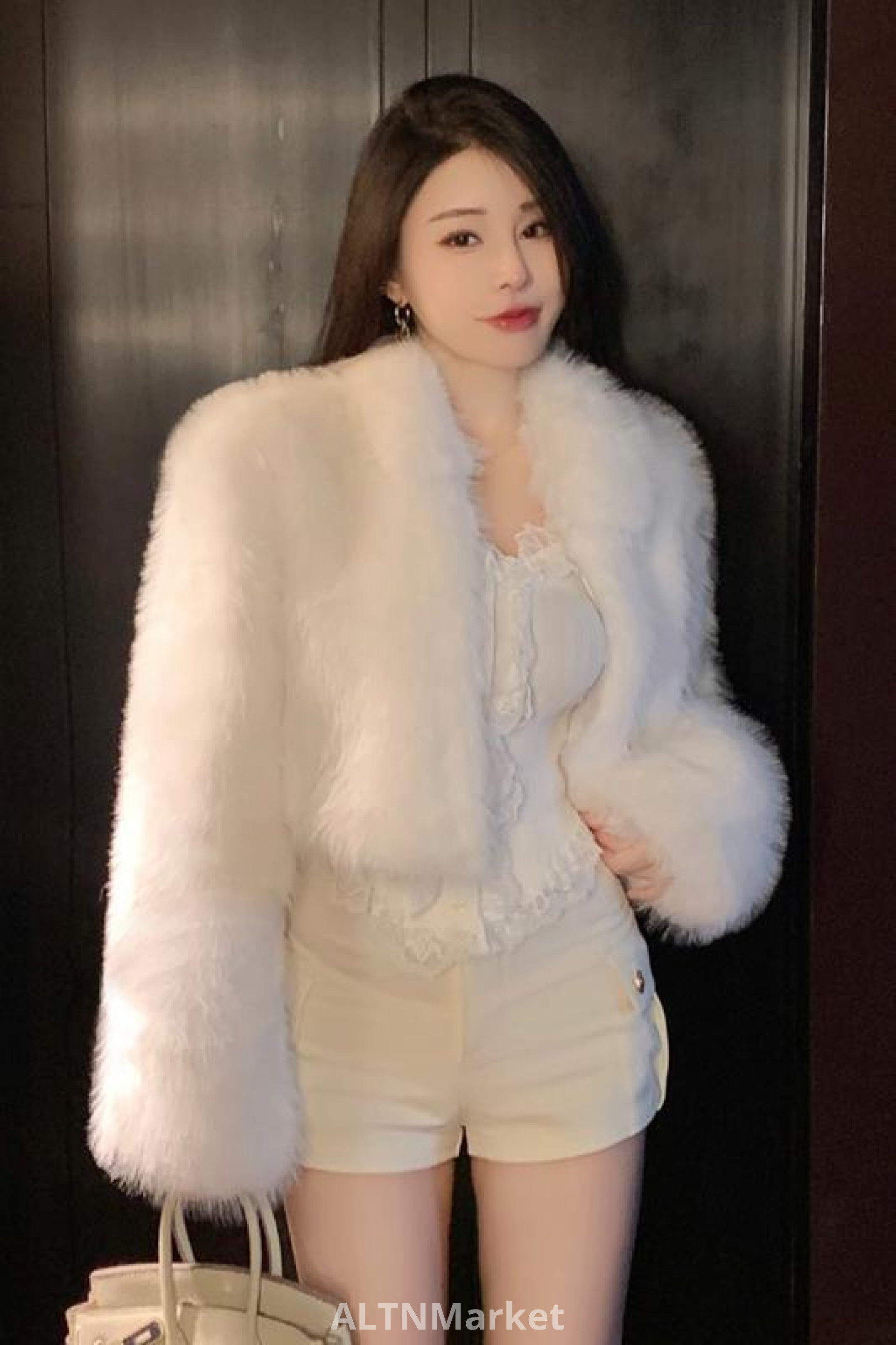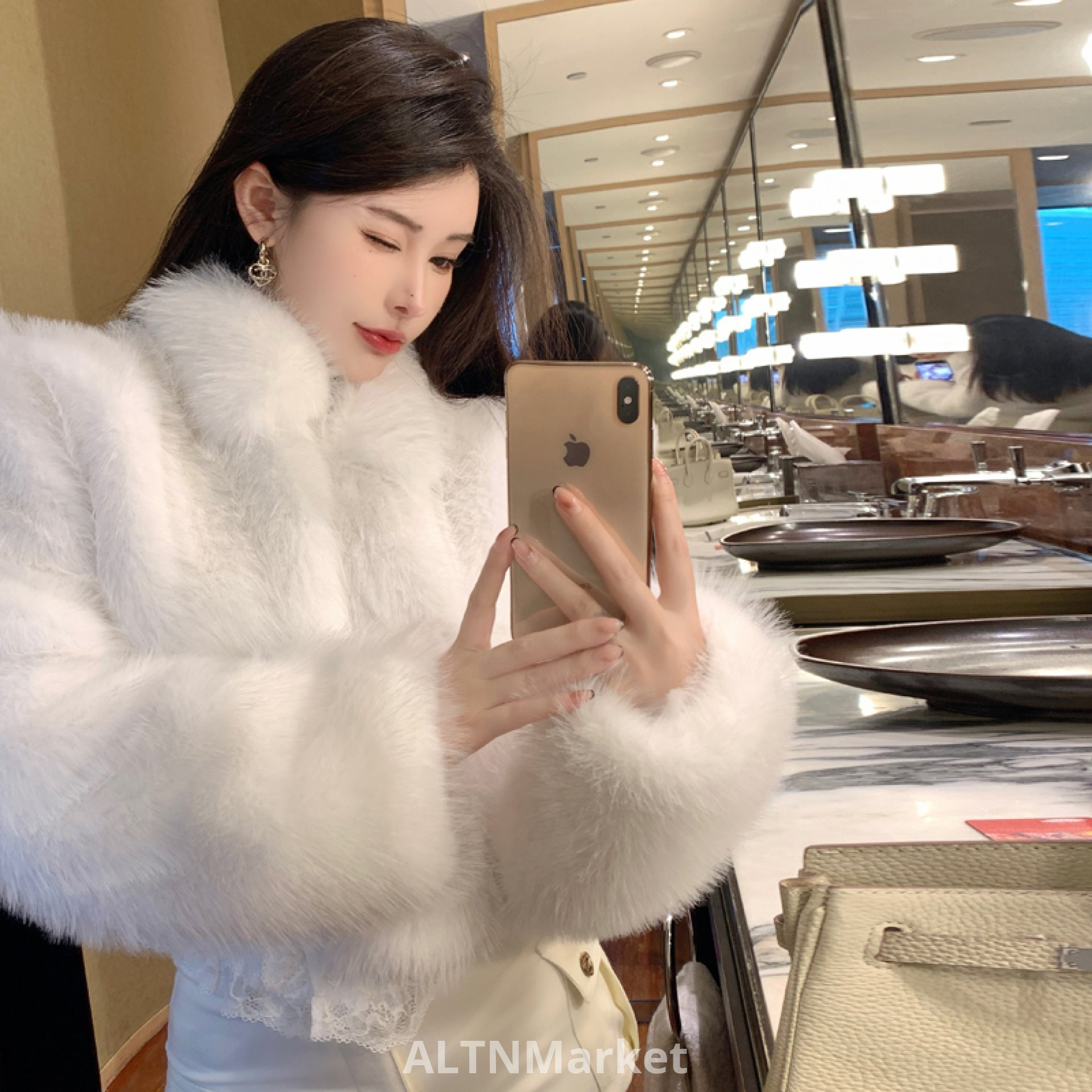 real photo Winter New Style Turn-Down Collar Short Style Imitation Fox Fur Fur Coat for Women Pink Furry Korean Style Fur Coat