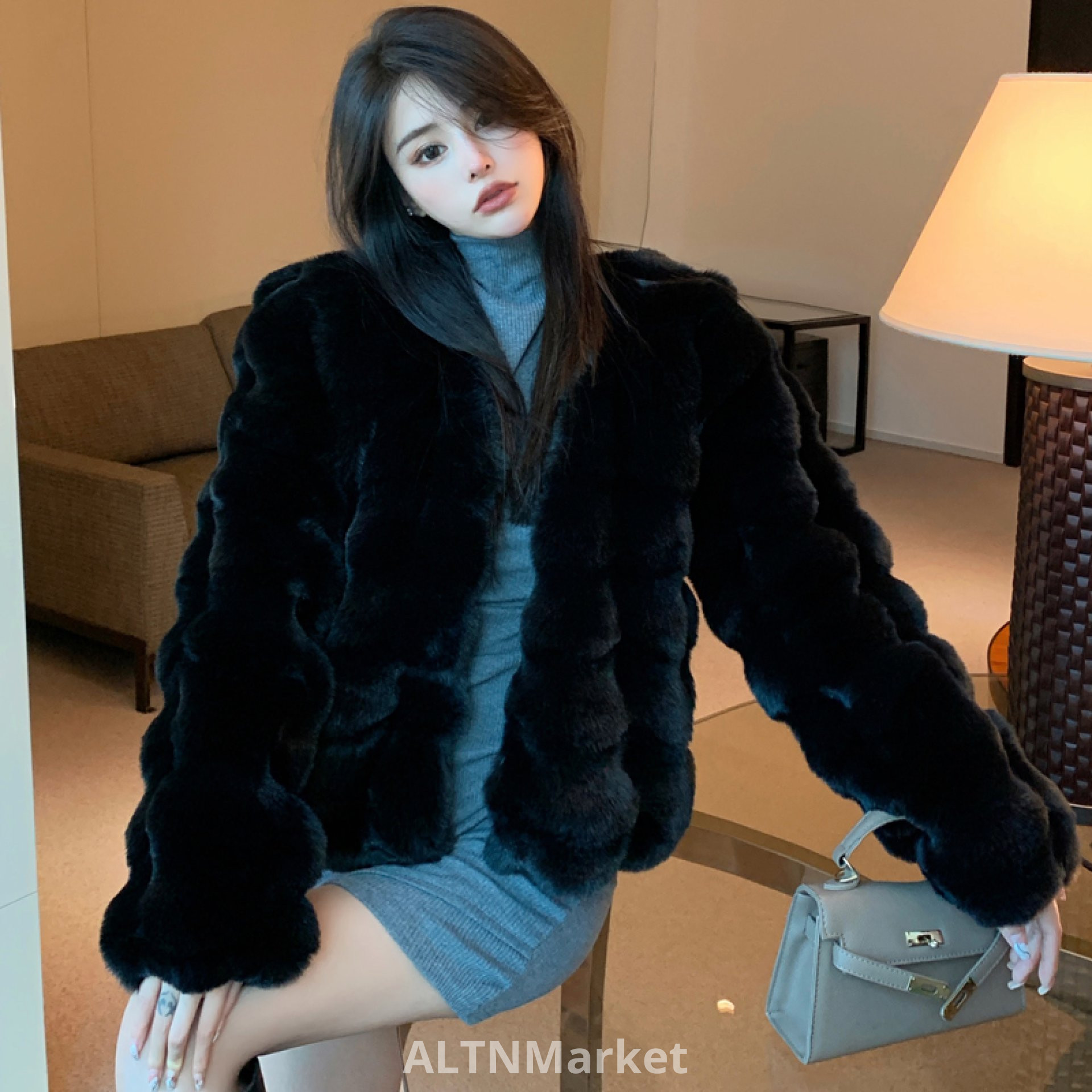 real photo Winter Western Style Girl Environmentally Friendly Imitation fur coat Coat Short Style Thickened Imitation Rex rabbit Hair Superior Sense Furry Coat