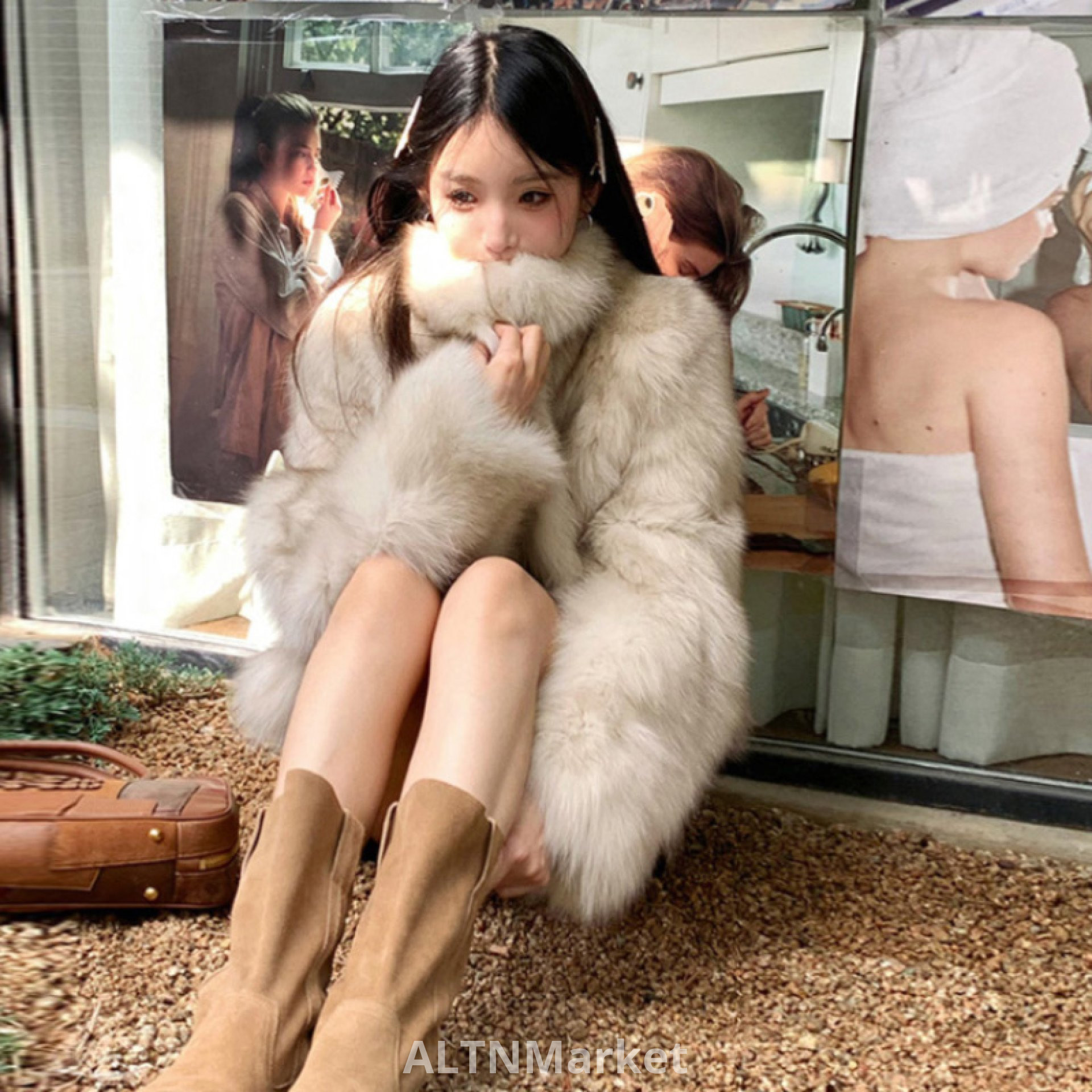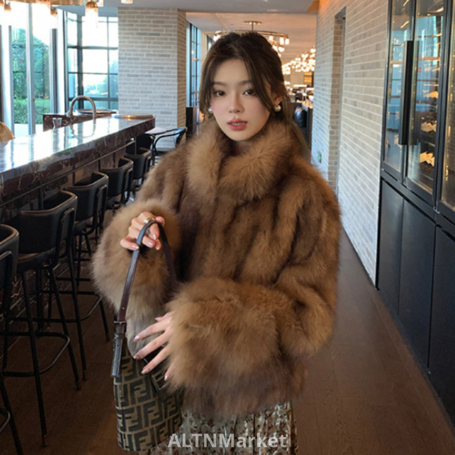 saga Small Gold Finland Import Environmentally Friendly Fox Fur Abdomen Hair Korean Style Fur Slimming Coat New Style Top