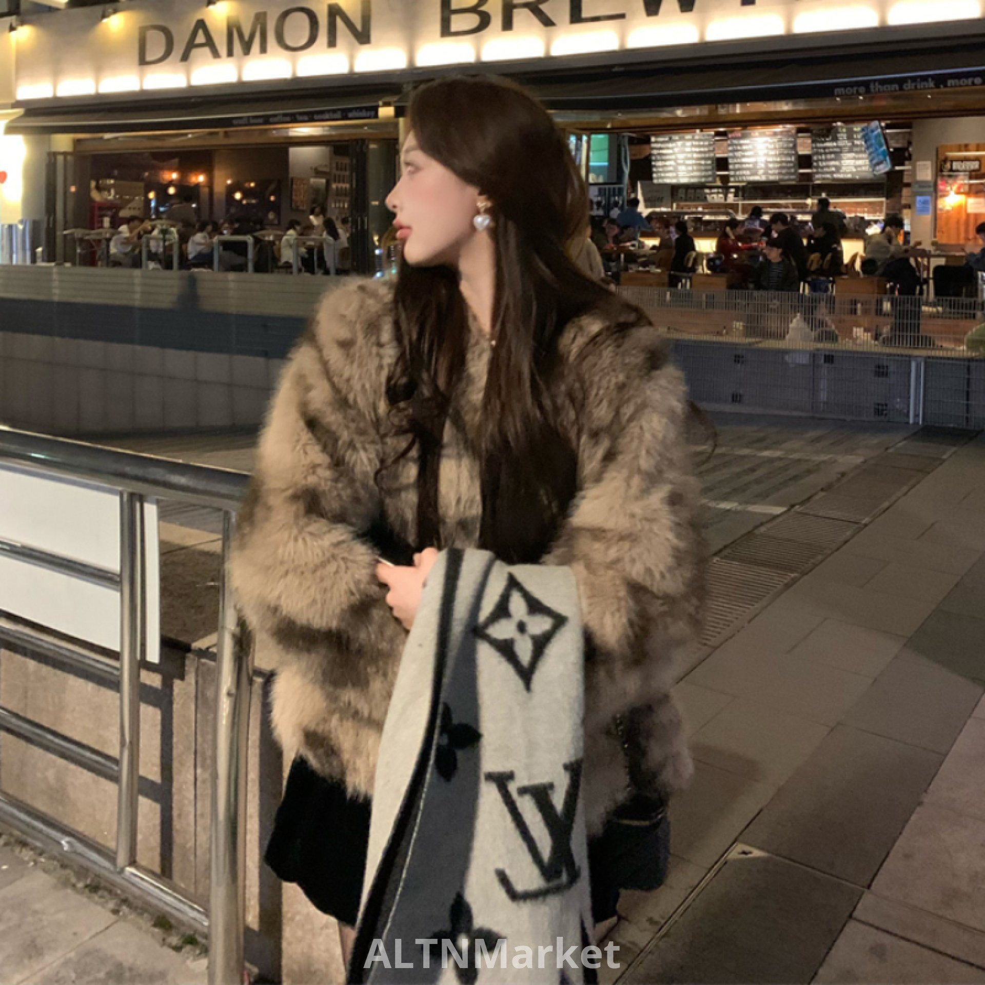 Winter New Style Dragon Pattern Environmentally Friendly Imitation Fox Fur Fur Furry Coat Female Short Autumn and Winter Korean Style Top