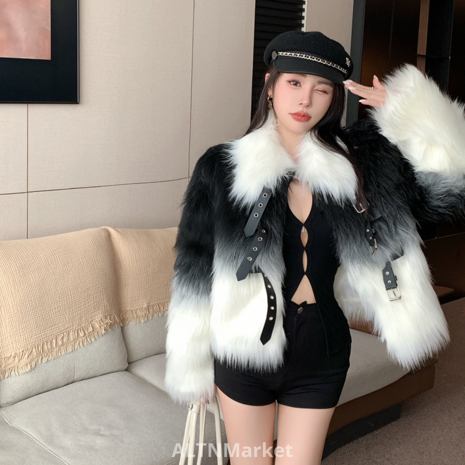 Winter New Style Gradient Black Imitation Fox Fur Fur Coat Female Short Thickened Warm Environmentally Friendly Furry Coat