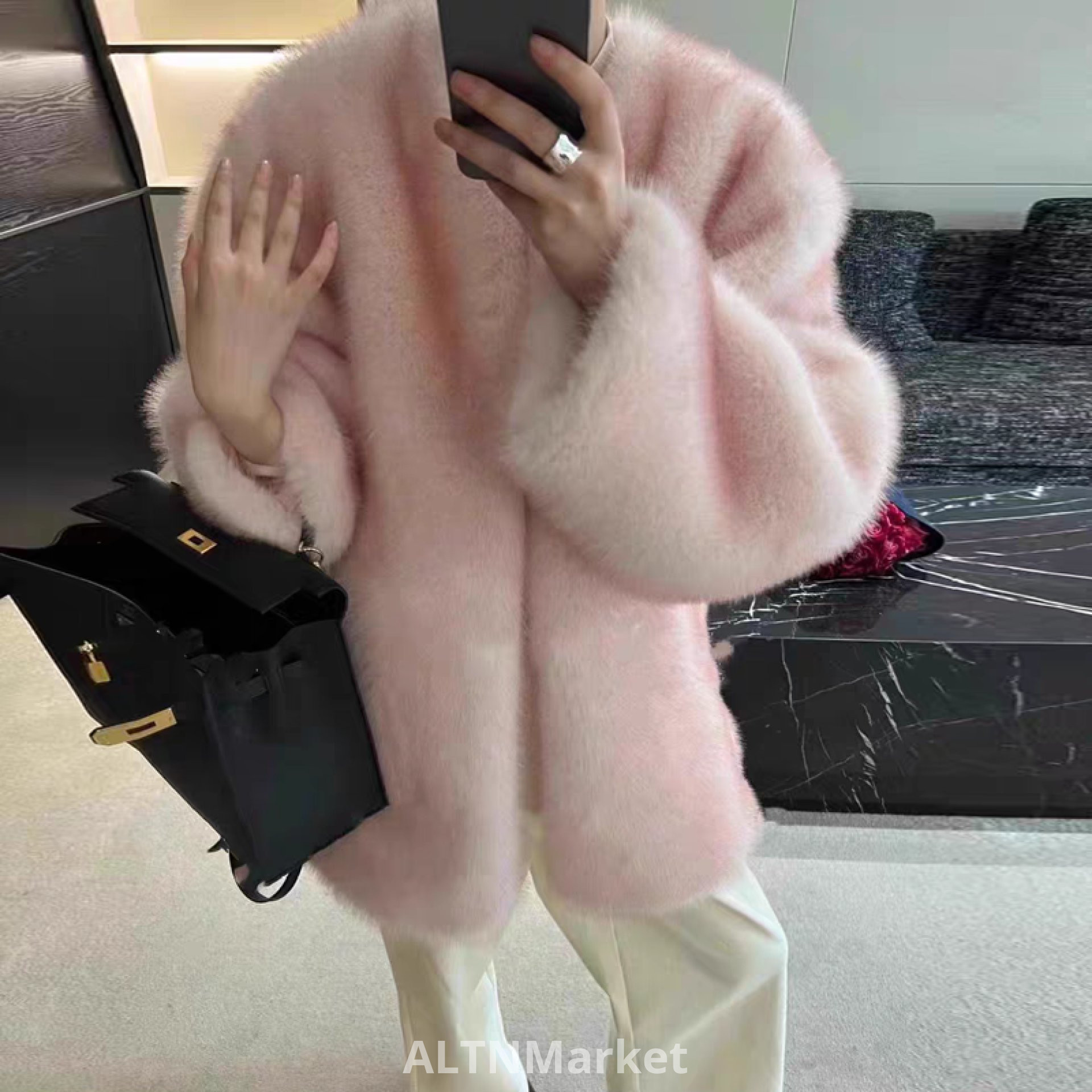 Winter New Style Imitation Fox Fur Mid-Length Style Furry Western Style Environmentally Friendly Fur Superior Sense Thickened Korean Style Plush Coat