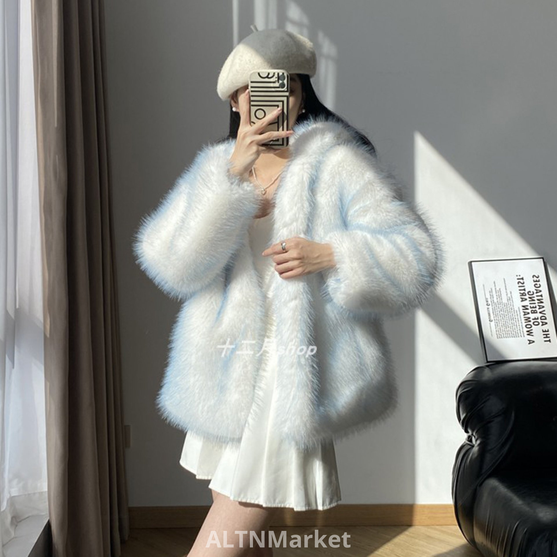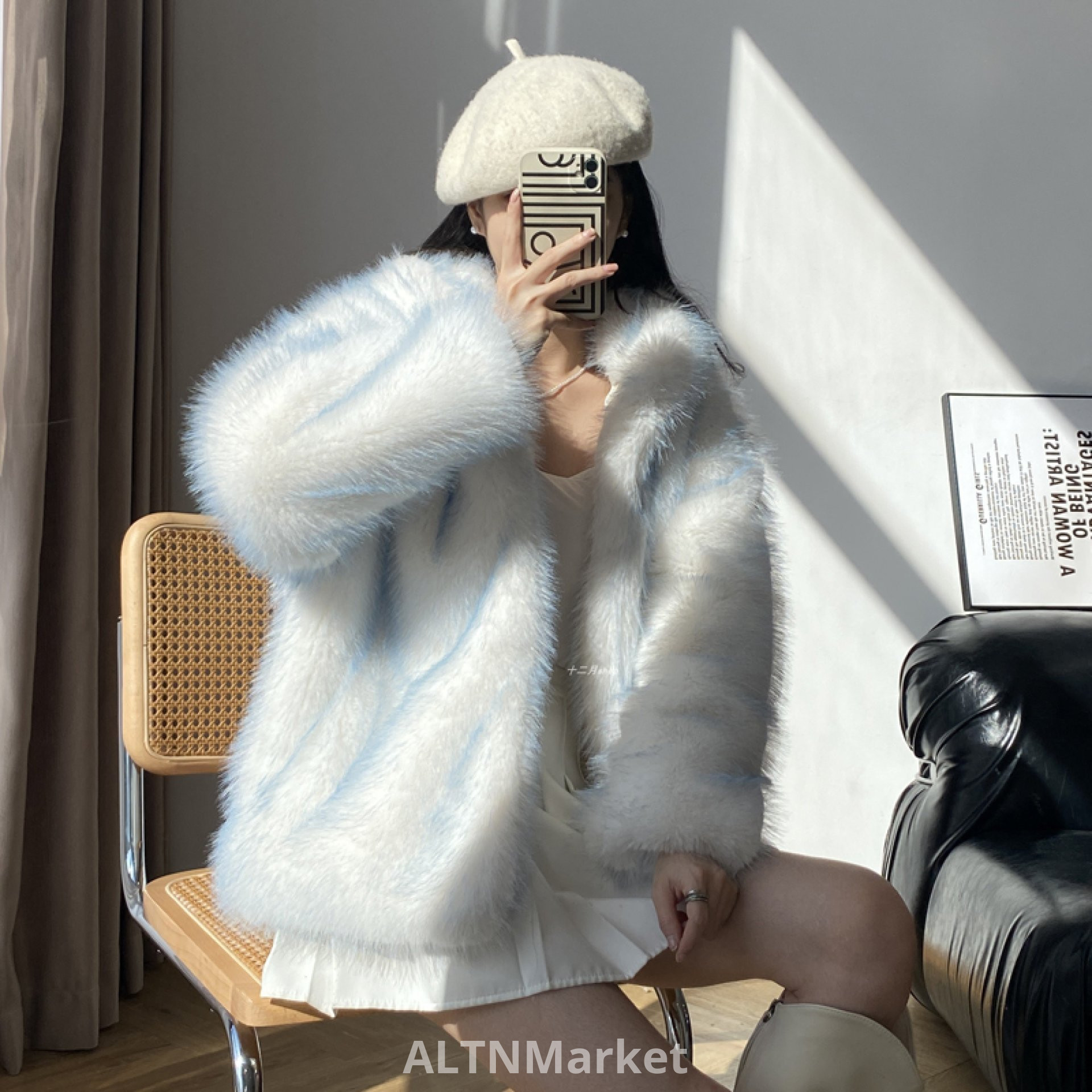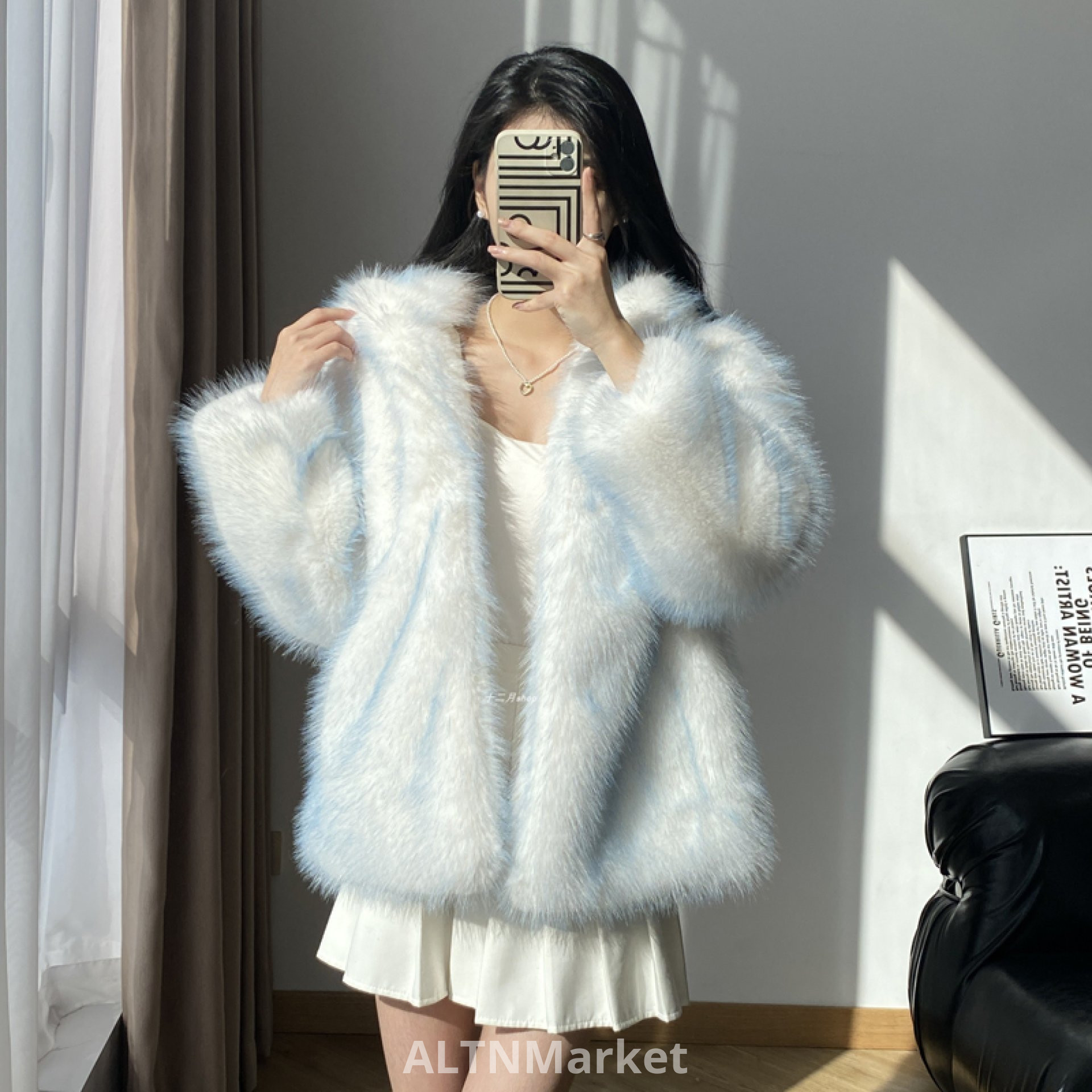 Winter New Style Korean Style Gradient Blue Imitation Fox Fur Fur Coat for Women Warm Environmentally Friendly Hair Furry Top Niche