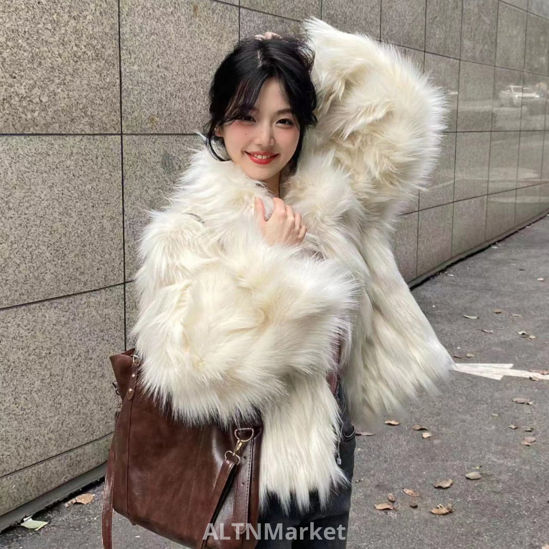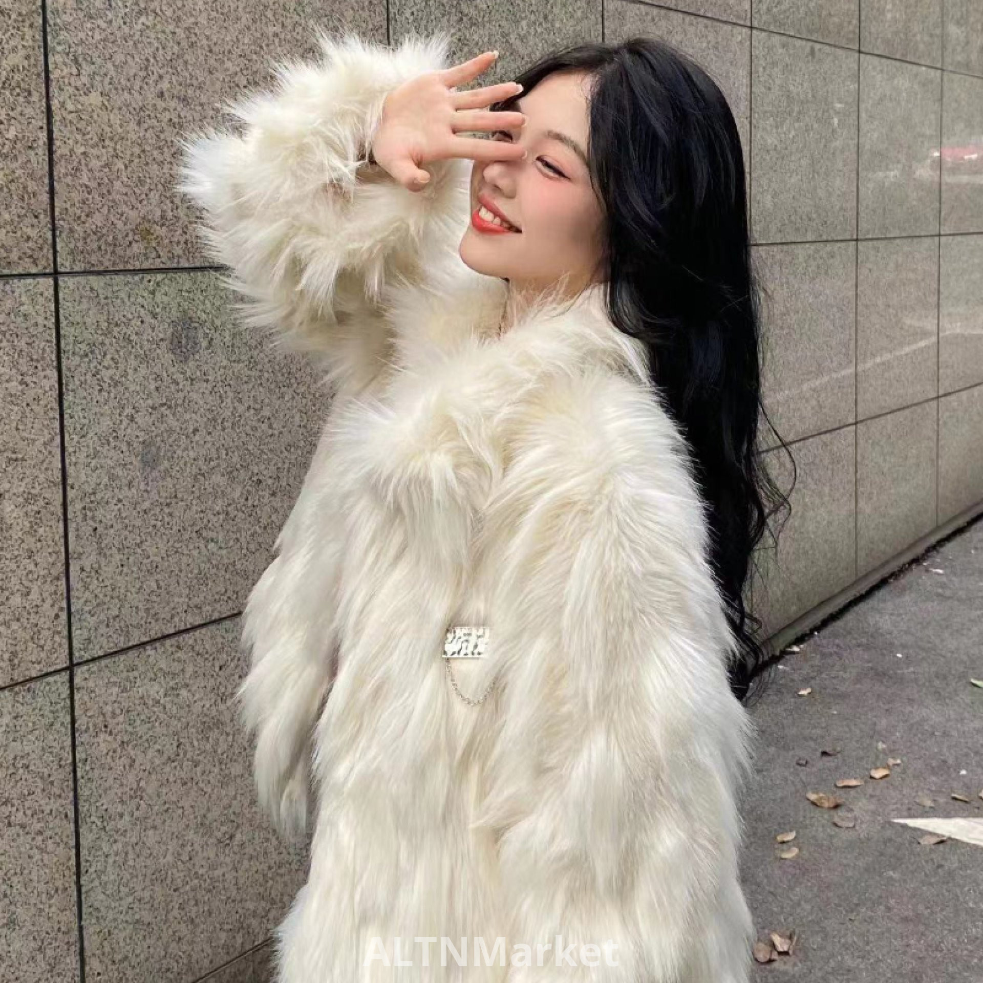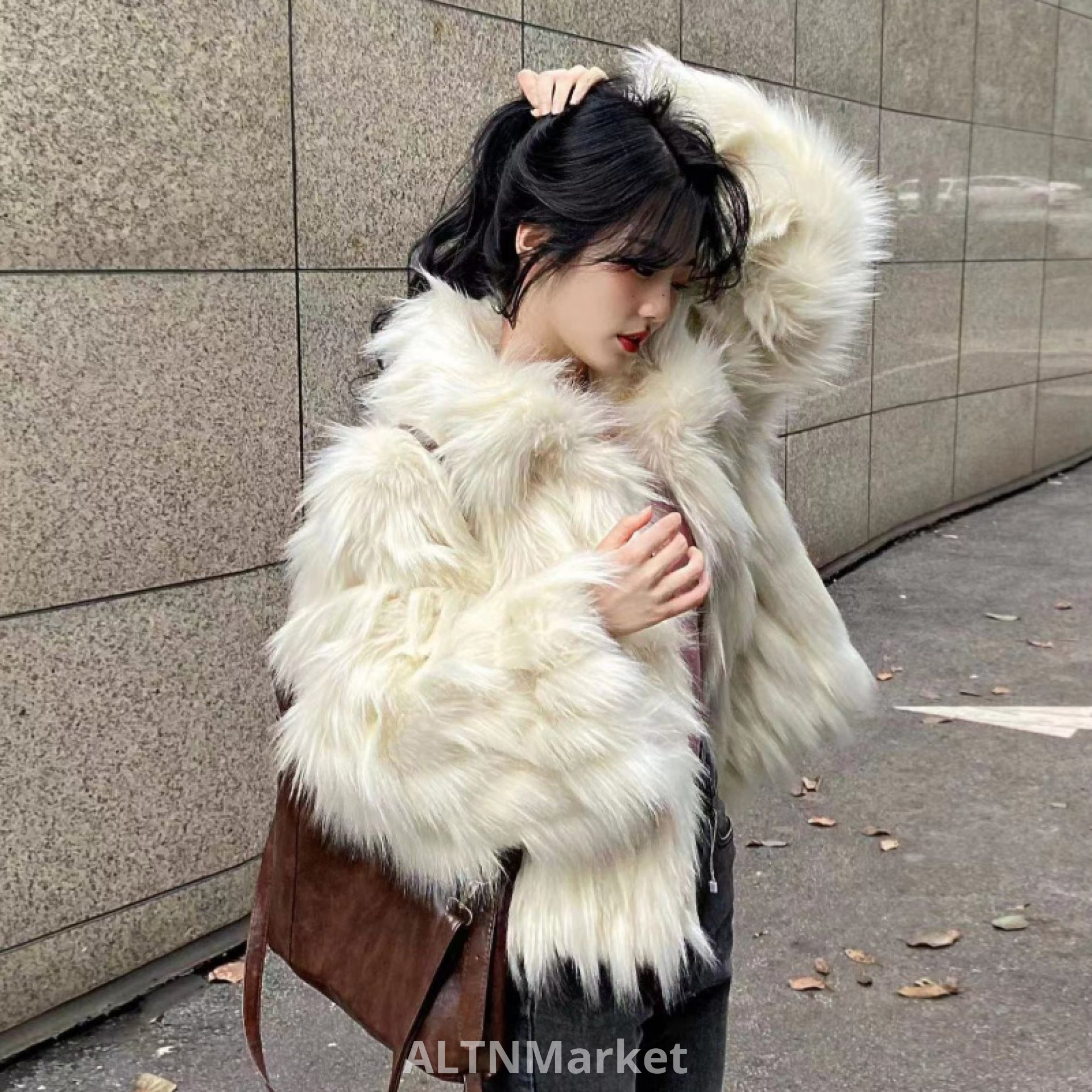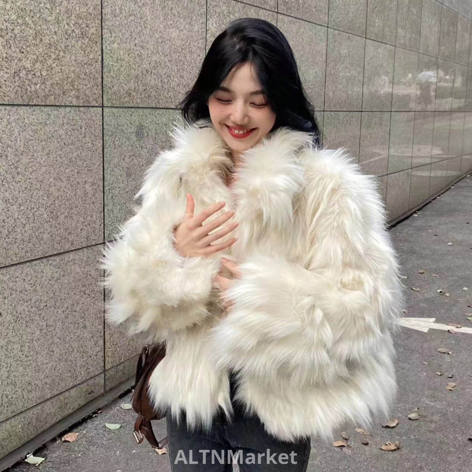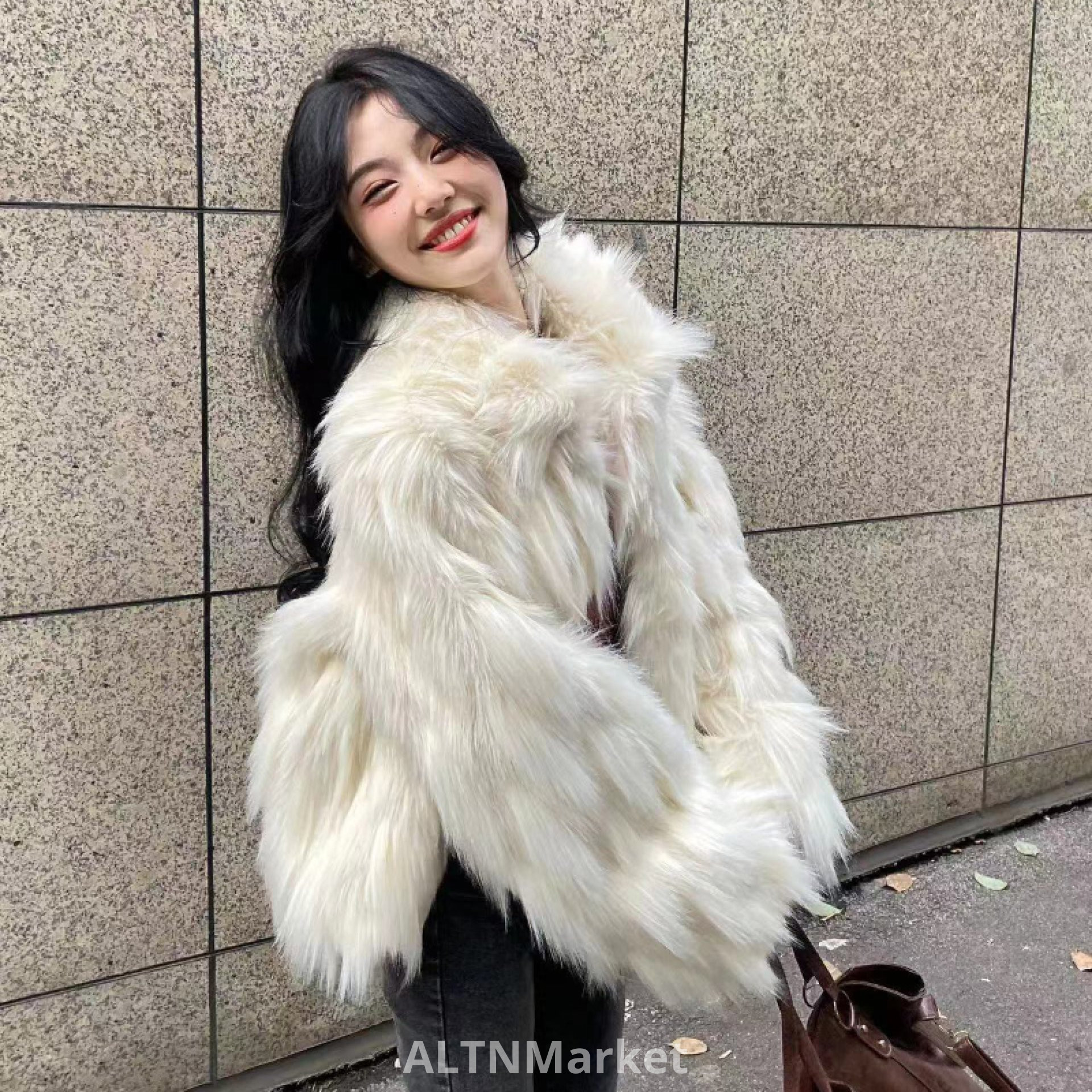 Off-белый Экологически чистый мех Меховое пальто для женщин Зима Новый стиль Имитация лисьего меха Мода утолщенный поворот вниз воротник Короткое пальто