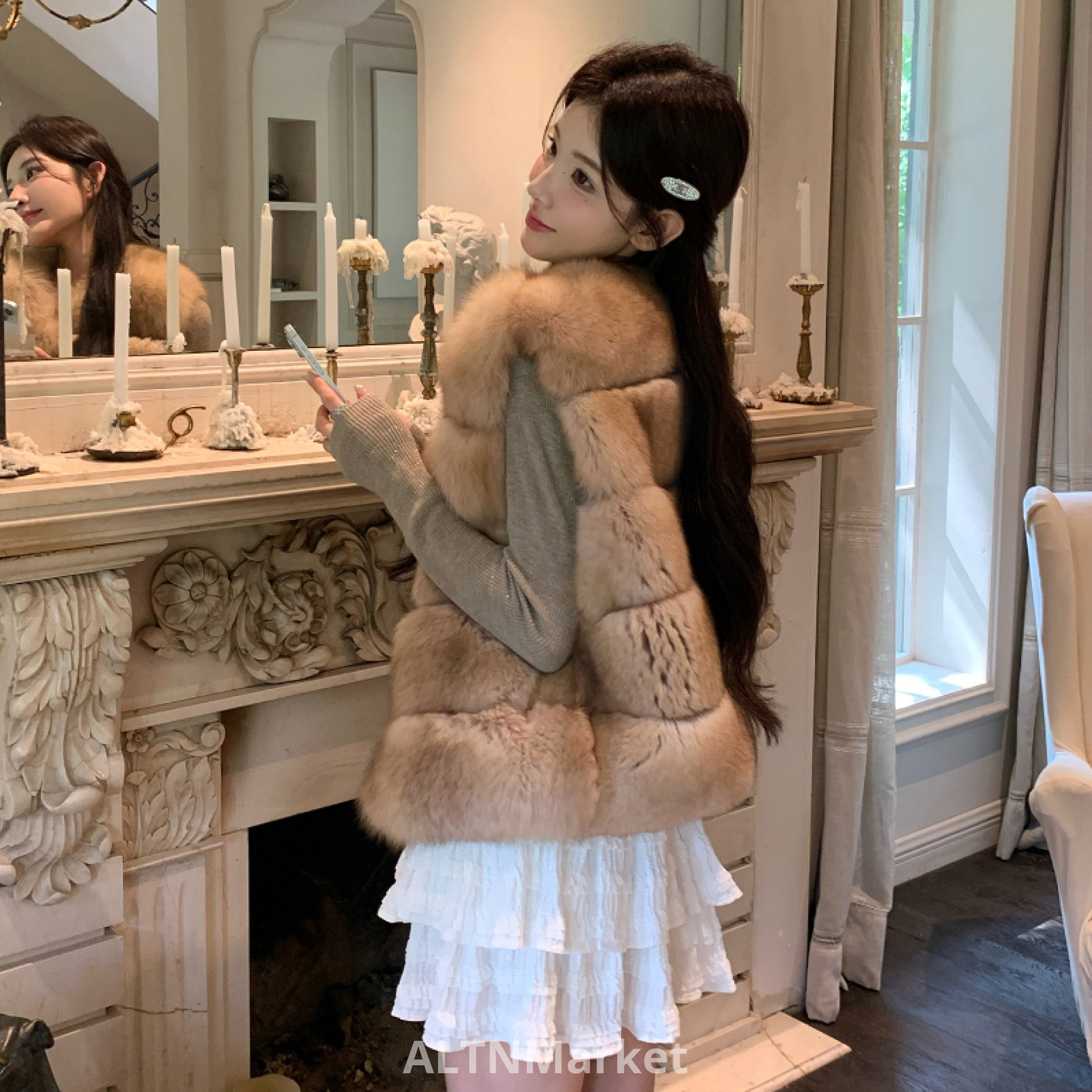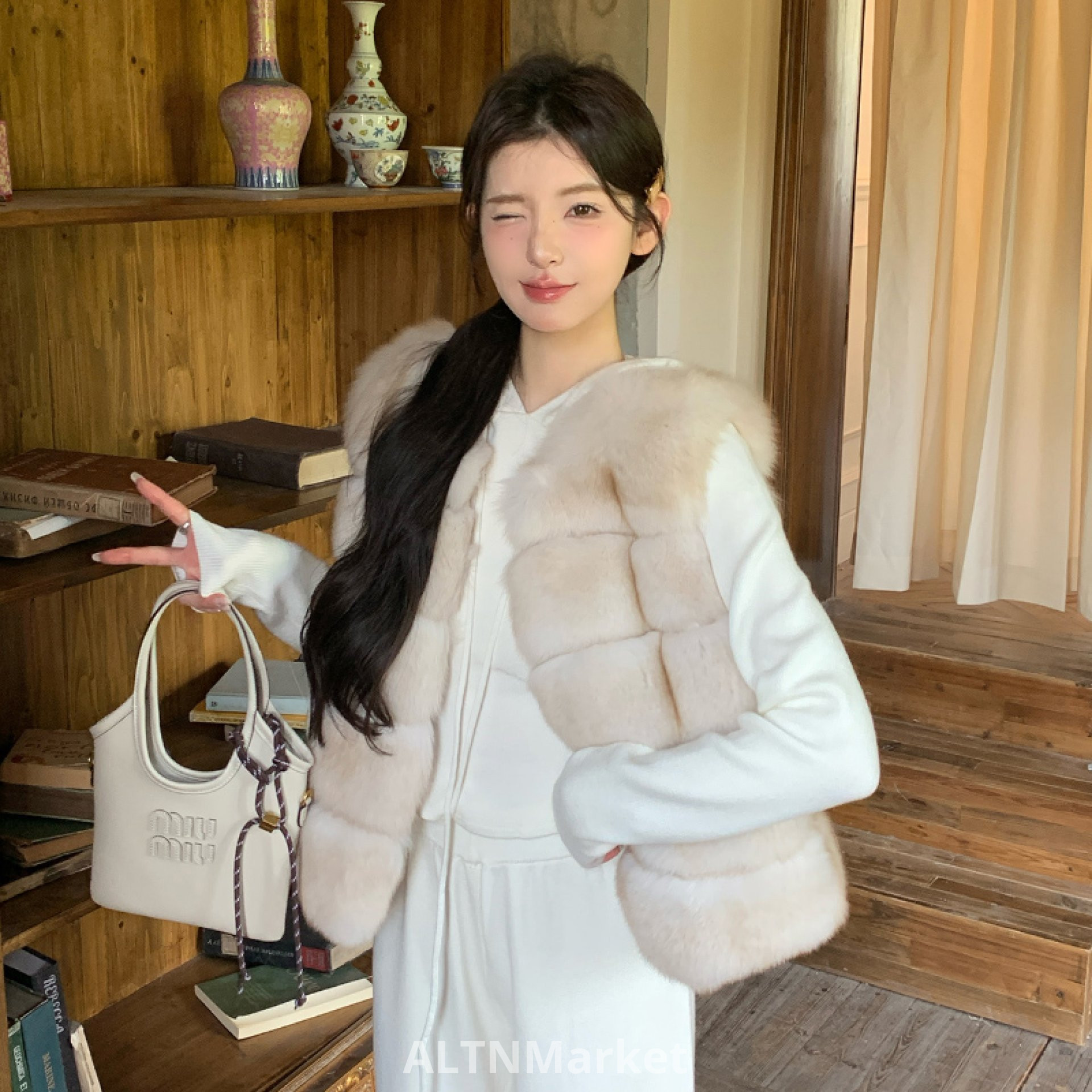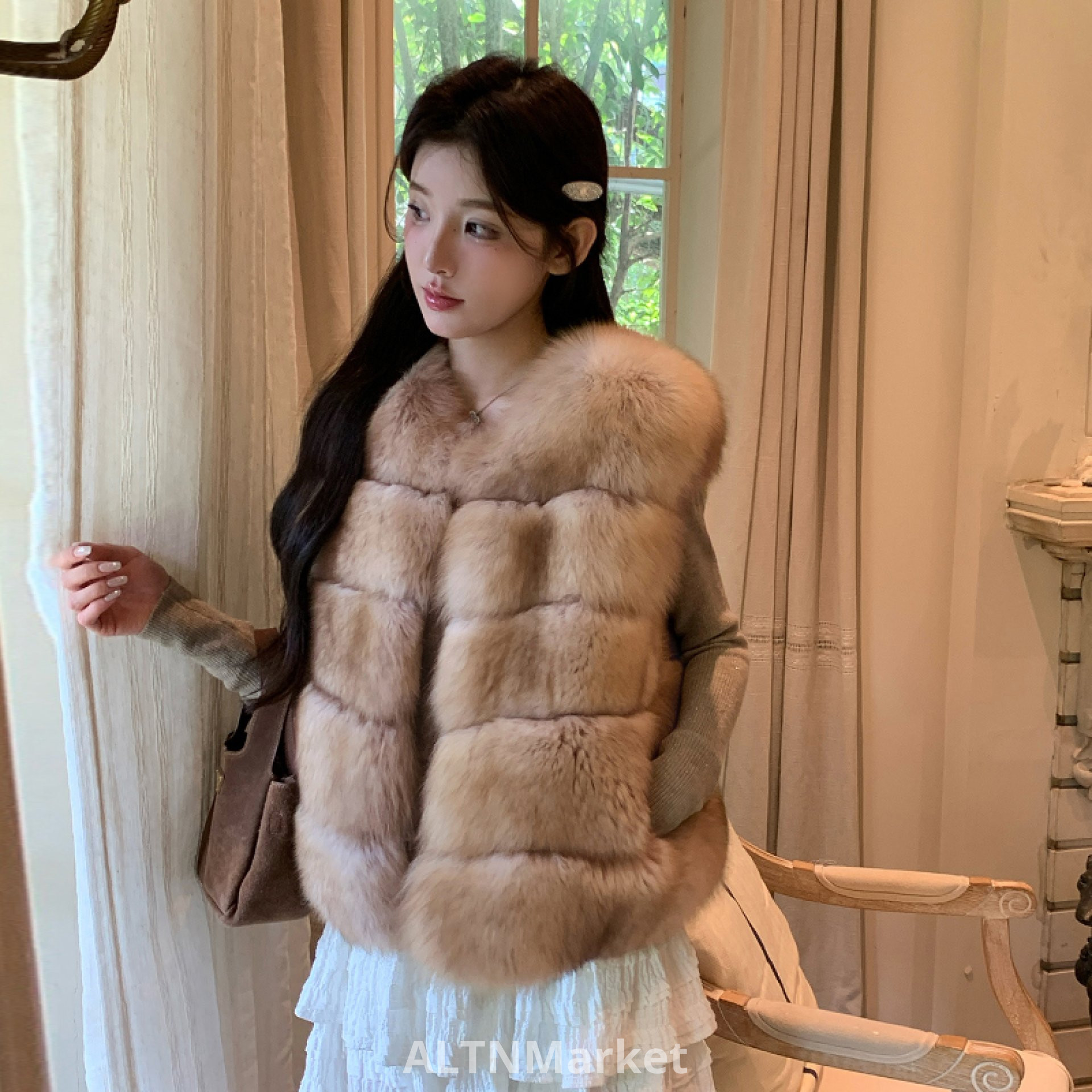 Que Ya Wen yawen Экологически чистая имитация лисьего меха Жилет зимний теплый круглый вырез без рукавов плюшевый жилет Куртки и пальто