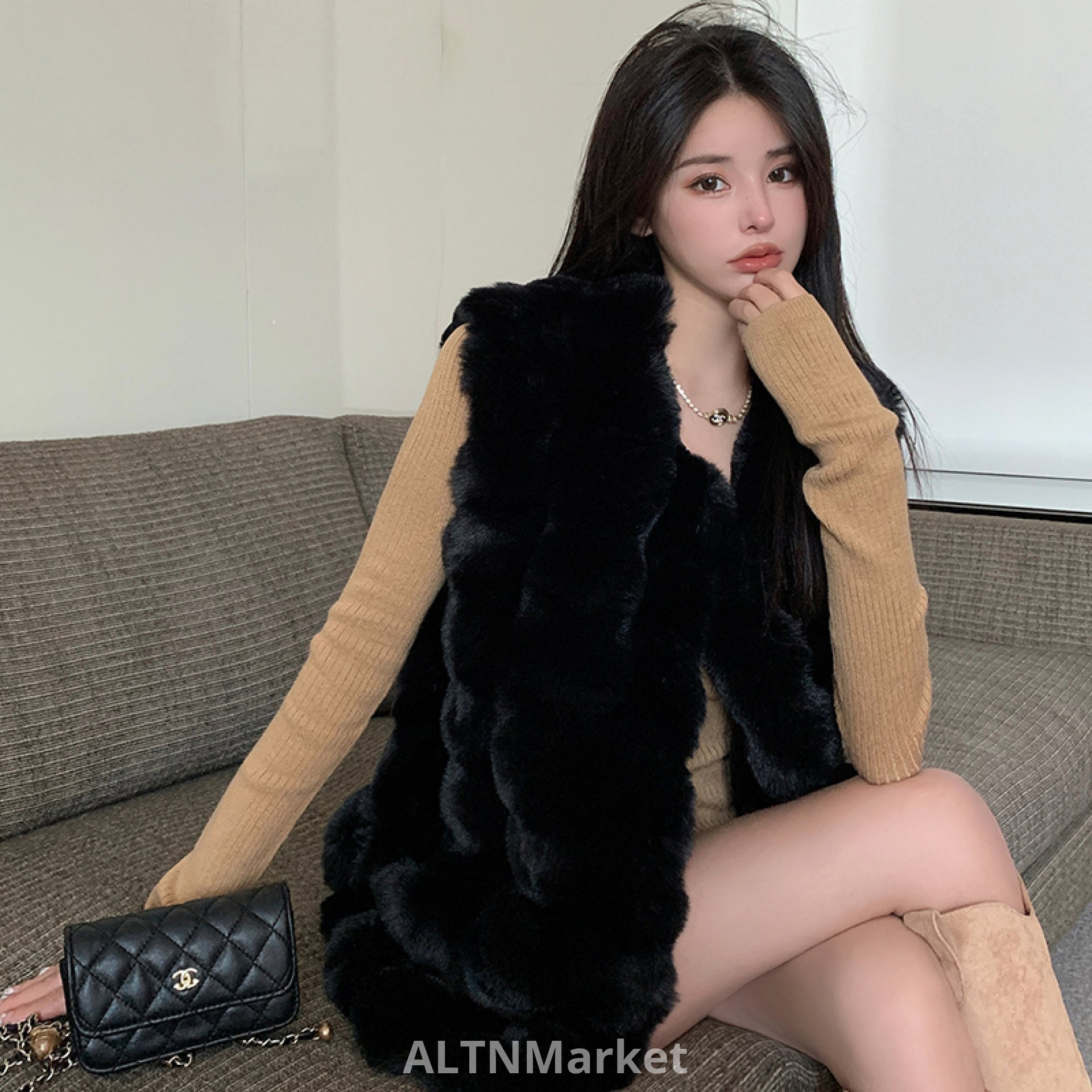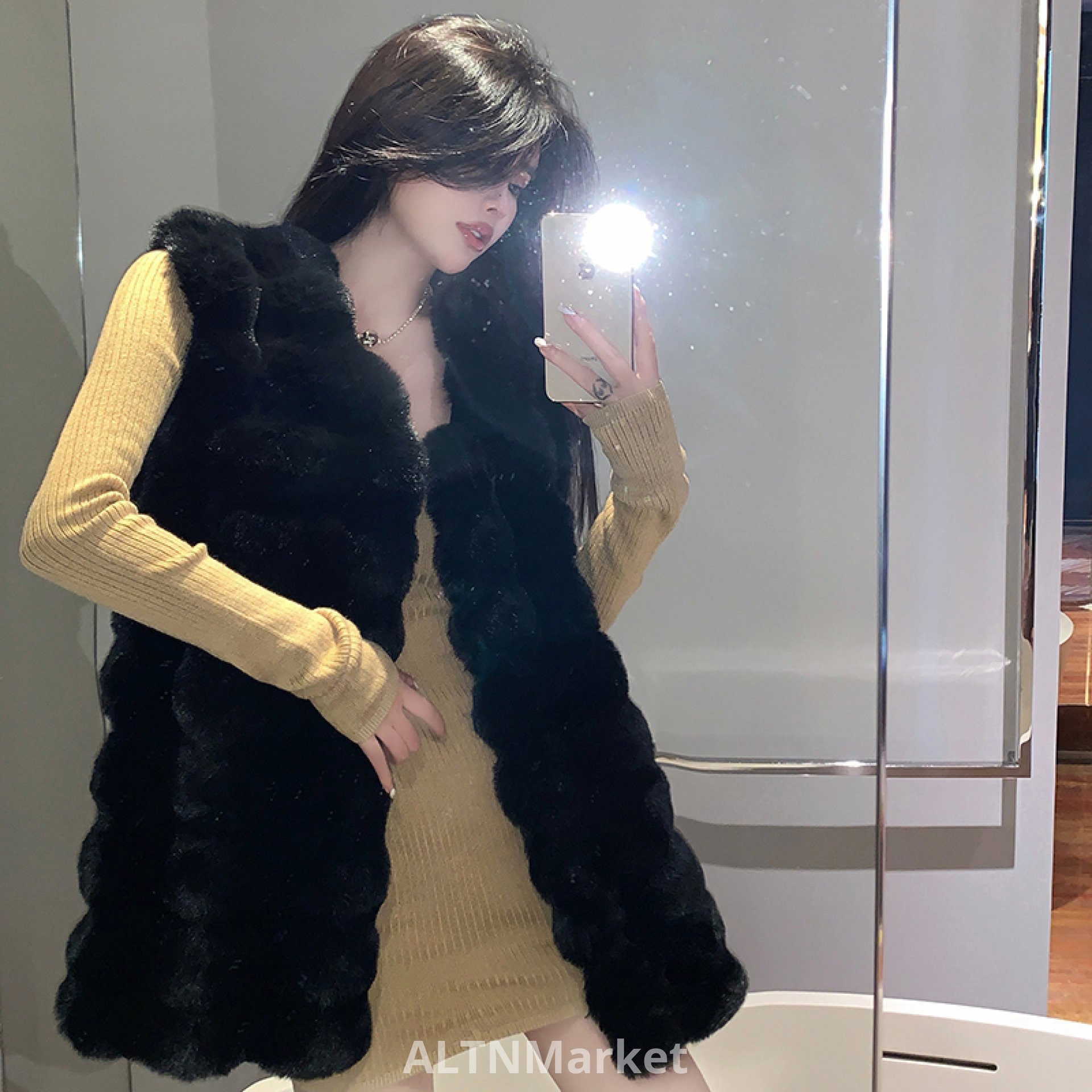 реальное фото Осень и зима пальто имитация кролика мех меховой жилет для женщин средней длины стиль свободный покрой молодой норки бархат меховой жилет