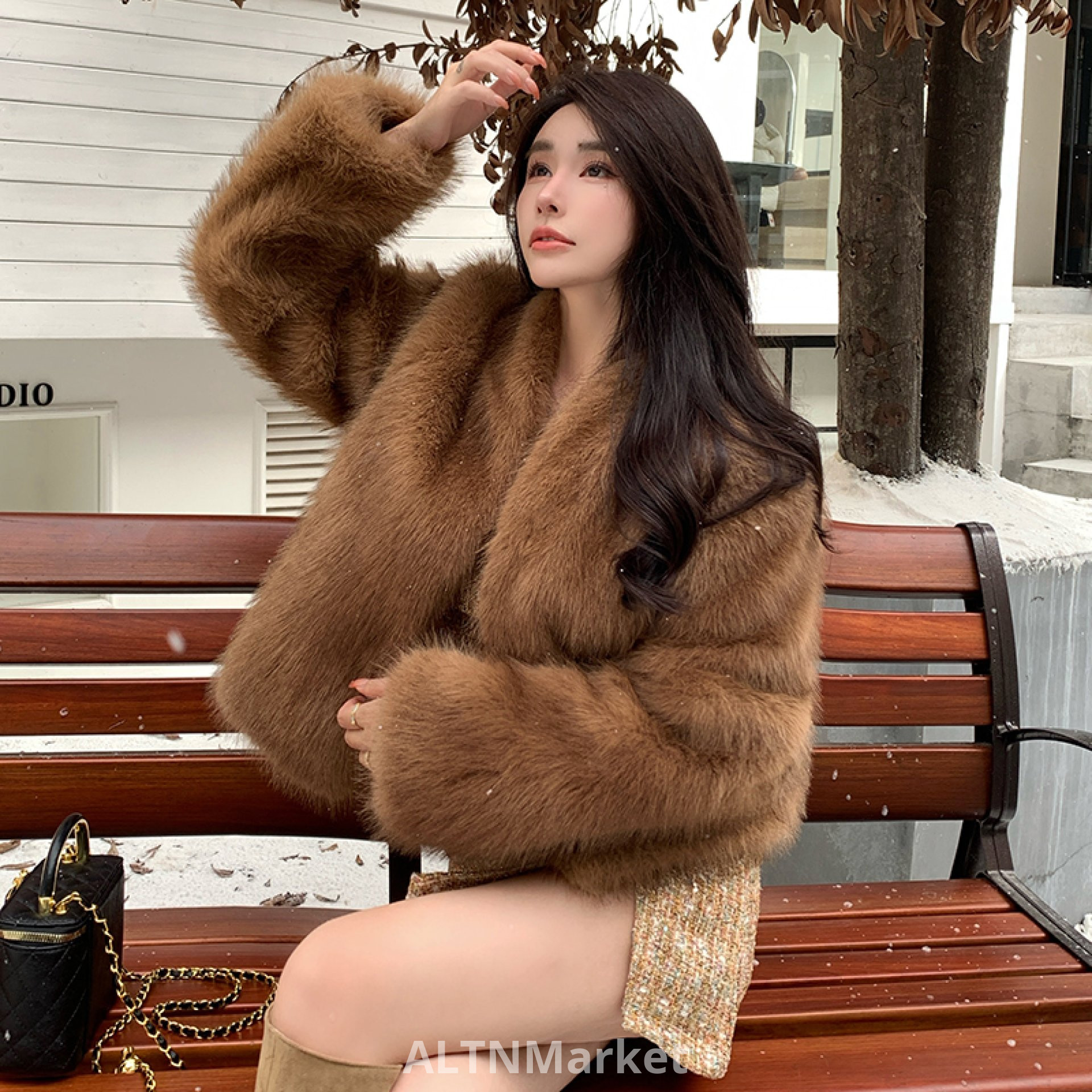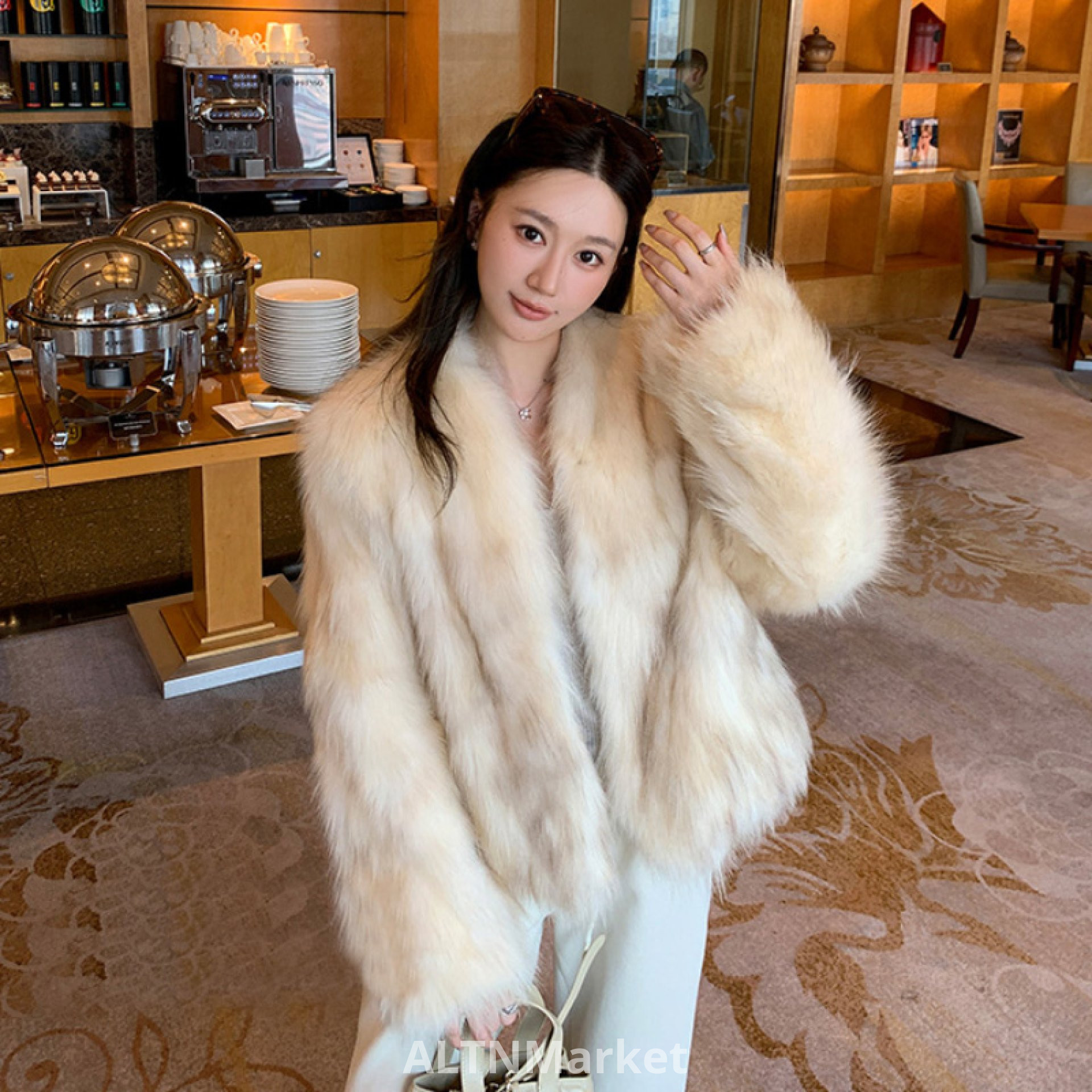 реальное фото Экологически чистые меховые имитация голубой лисы Кан волос Halo окрашивания мороз цвет V шеи лисий мех шуба для женщин ... Мороз Хуа Инь Месяц