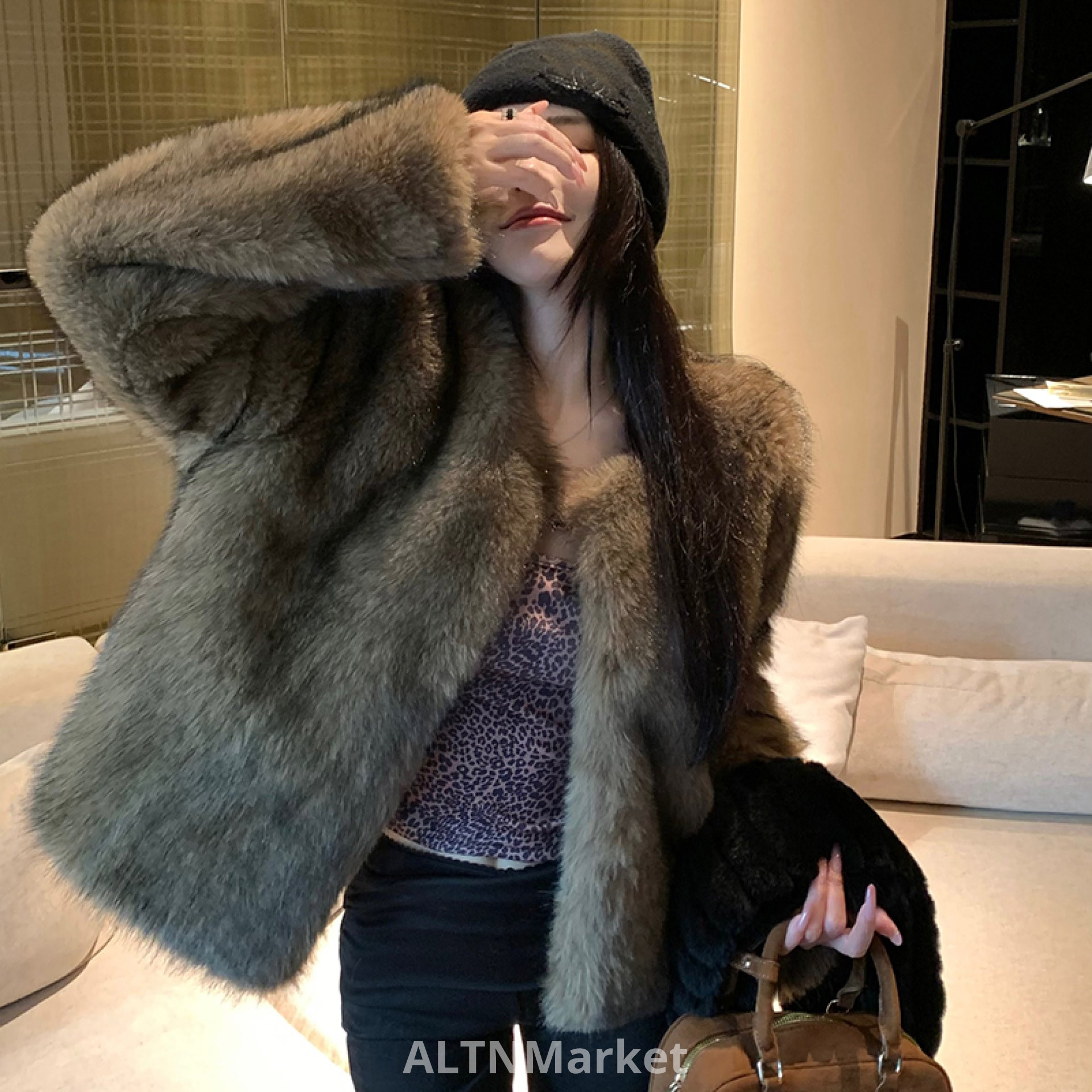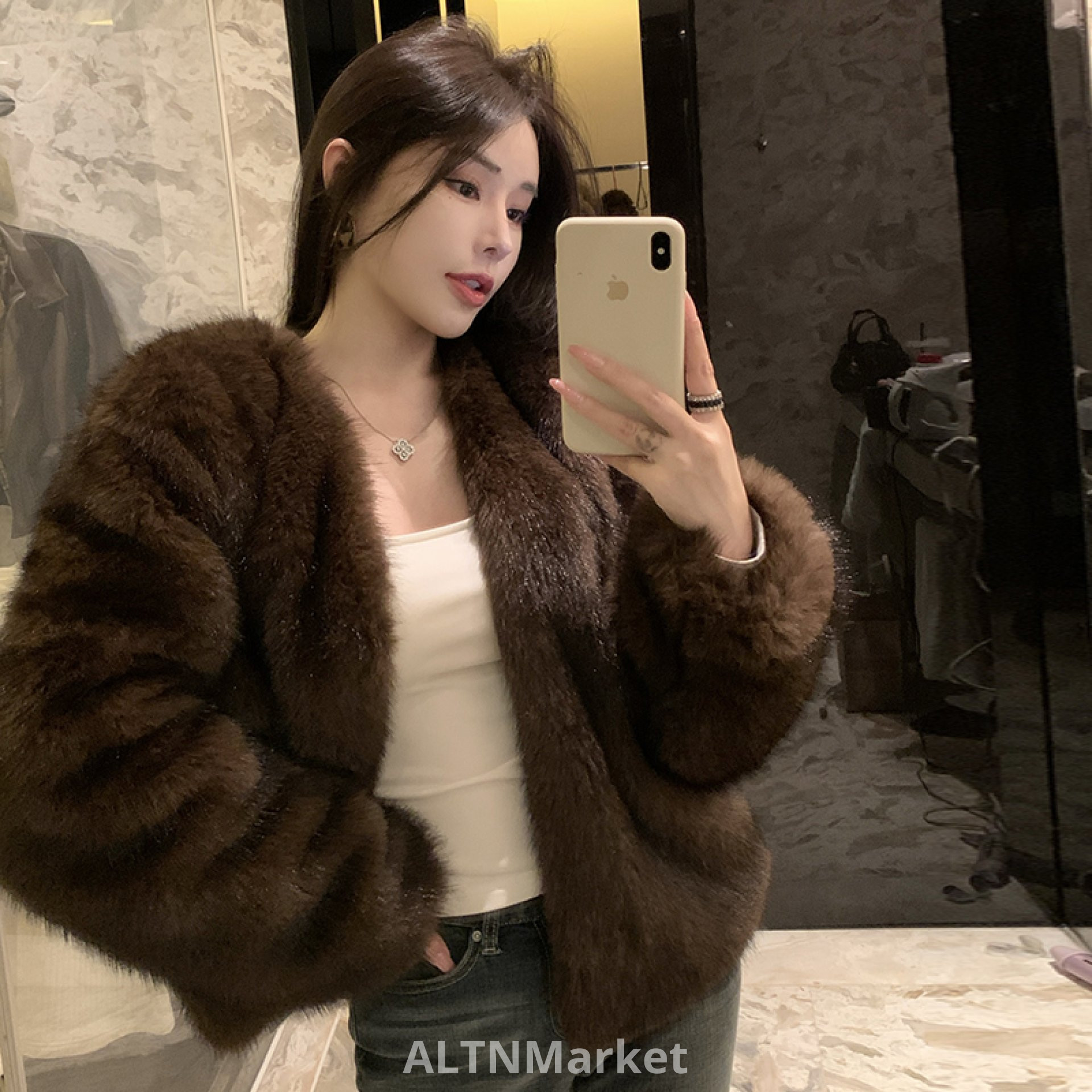 реальное фото Корейский стиль зима экологически чистые енота мех шуба короткий стиль похудения имитация меховой круглый шеи пальто мех женщин