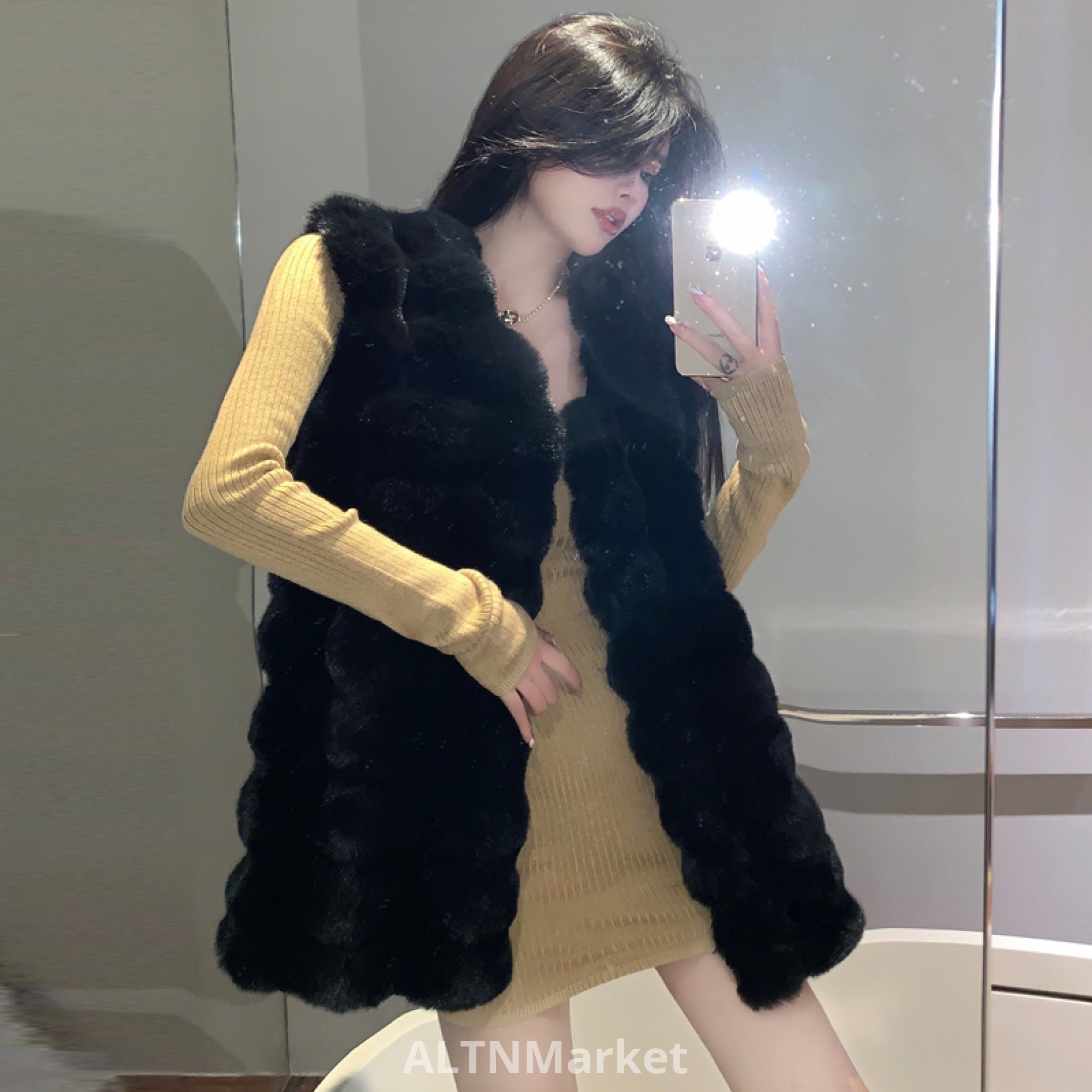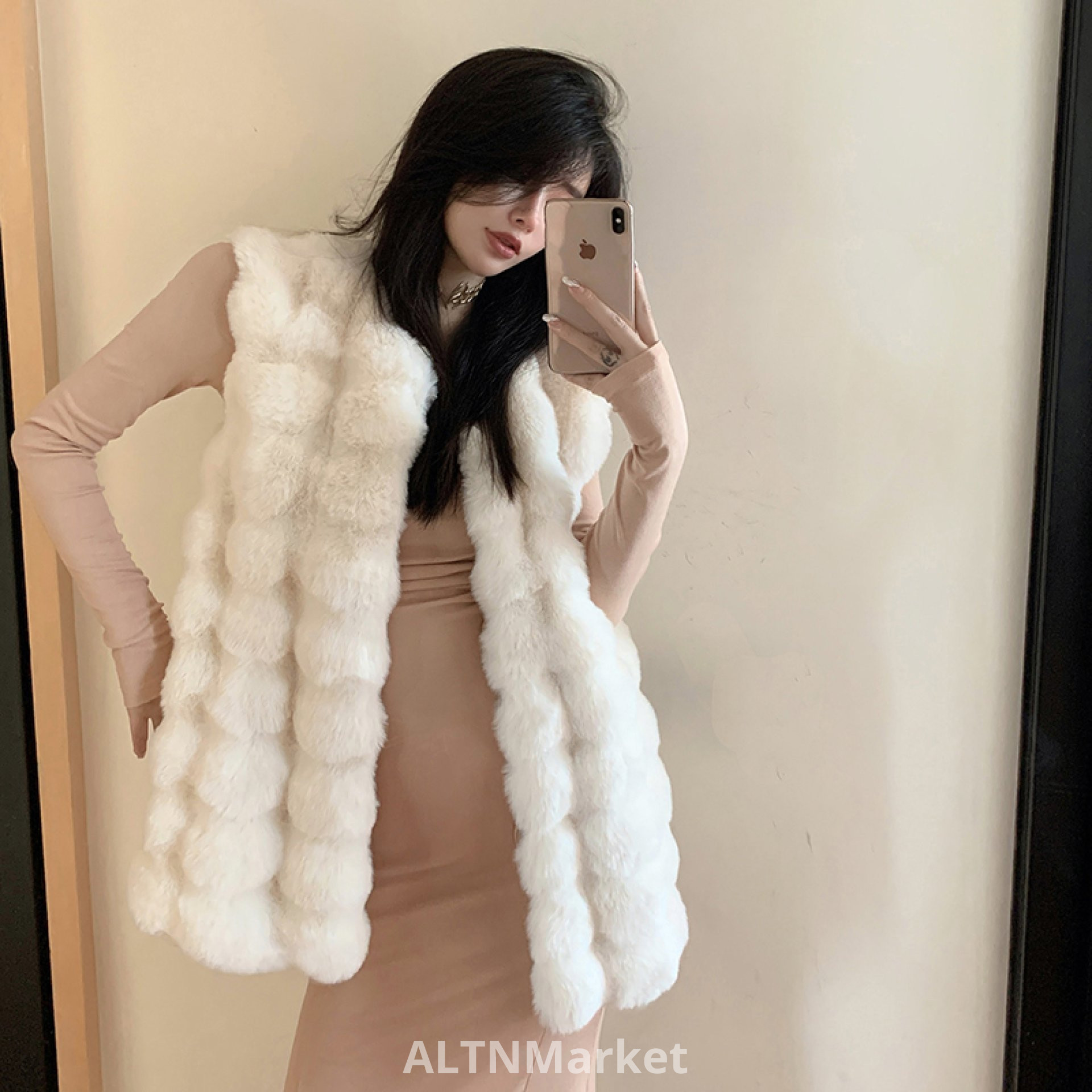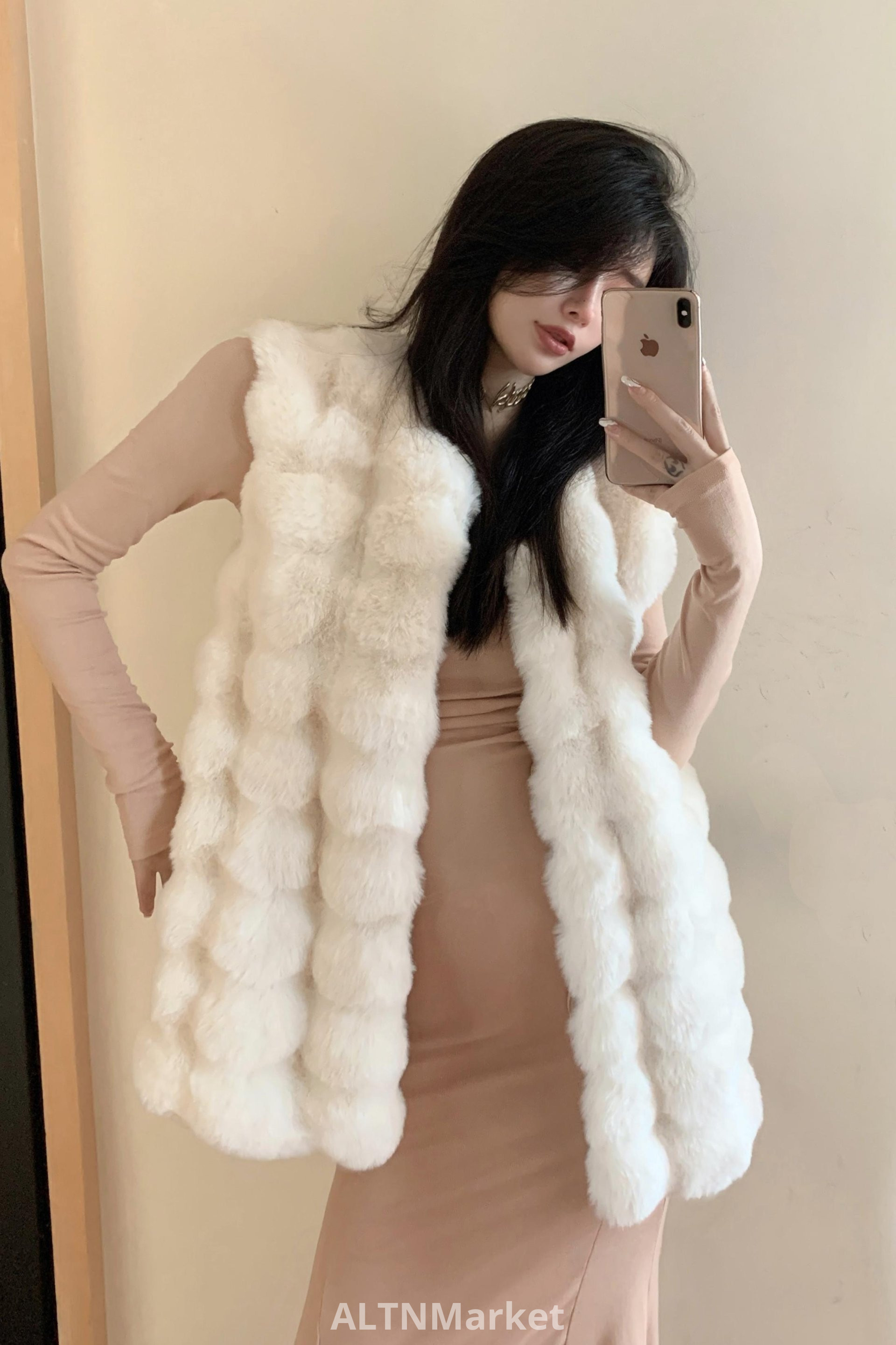 реальное фото Зимнее пальто средней длины стиль имитация кролика мех меховой жилет для женщин свободный Fit корейский стиль экологически чистые норки бархат меховой жилет