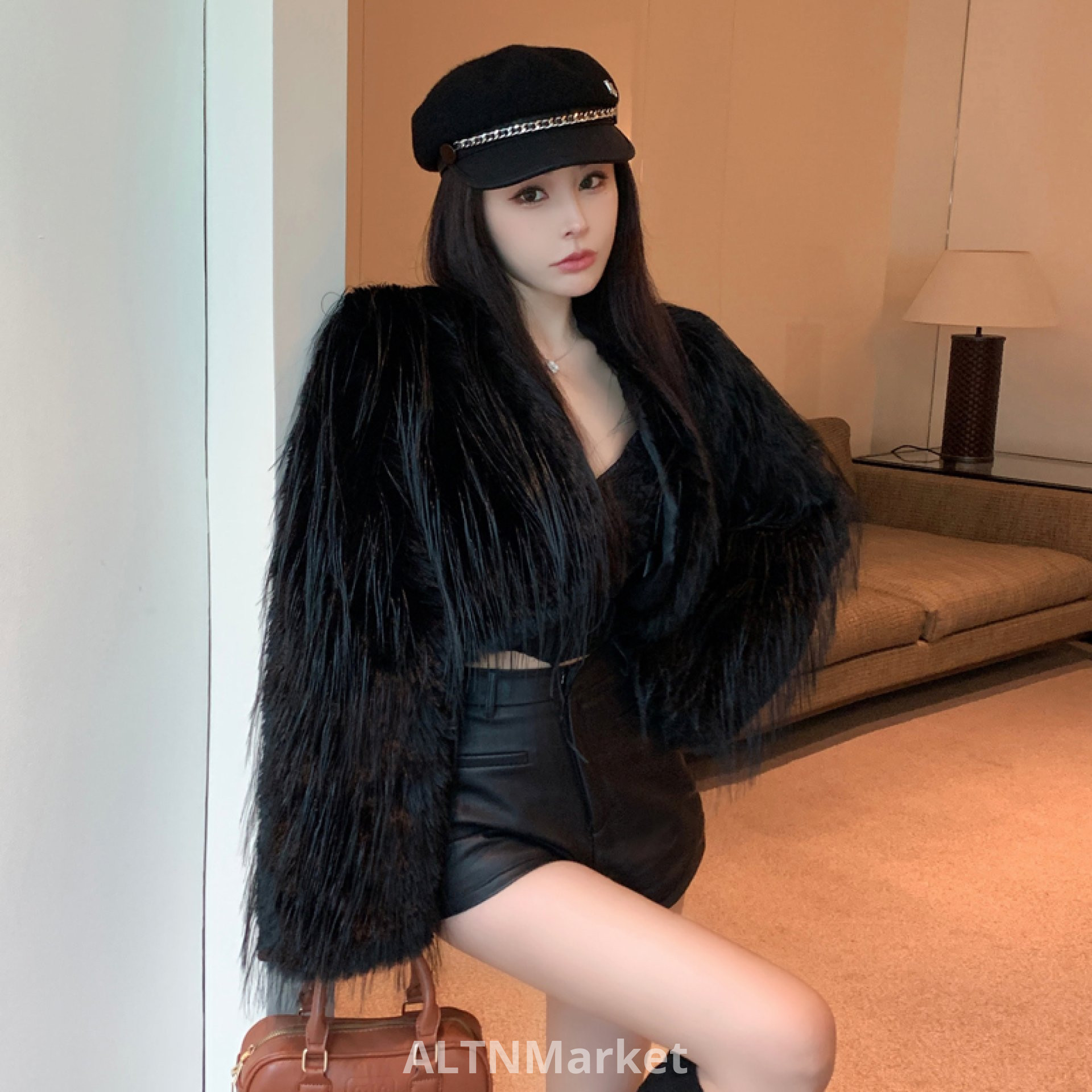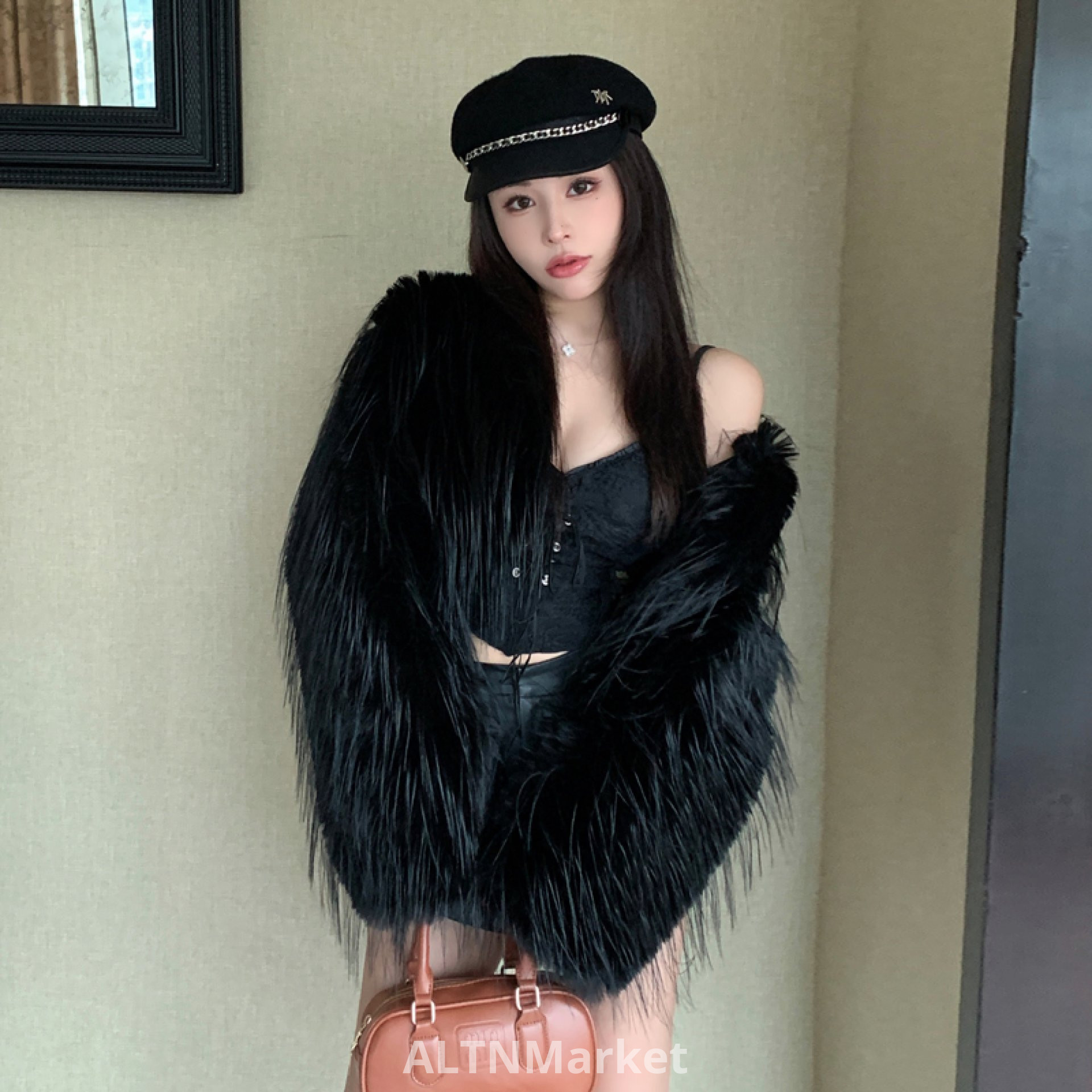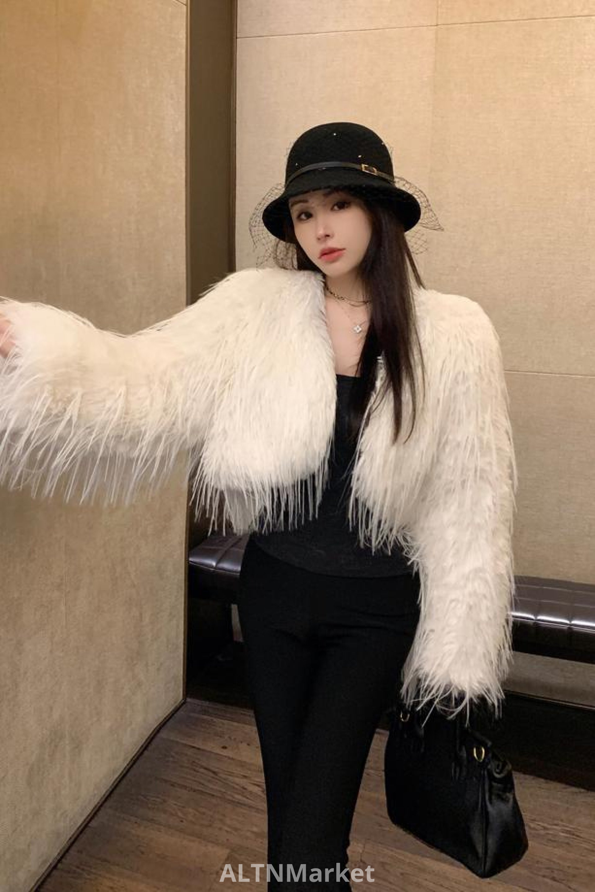 реальное фото Зимняя элегантность Светская львица Шанель стиль пальто Экологически чистый мех плюш Топ Экологически чистый кисточкой меховой топ
