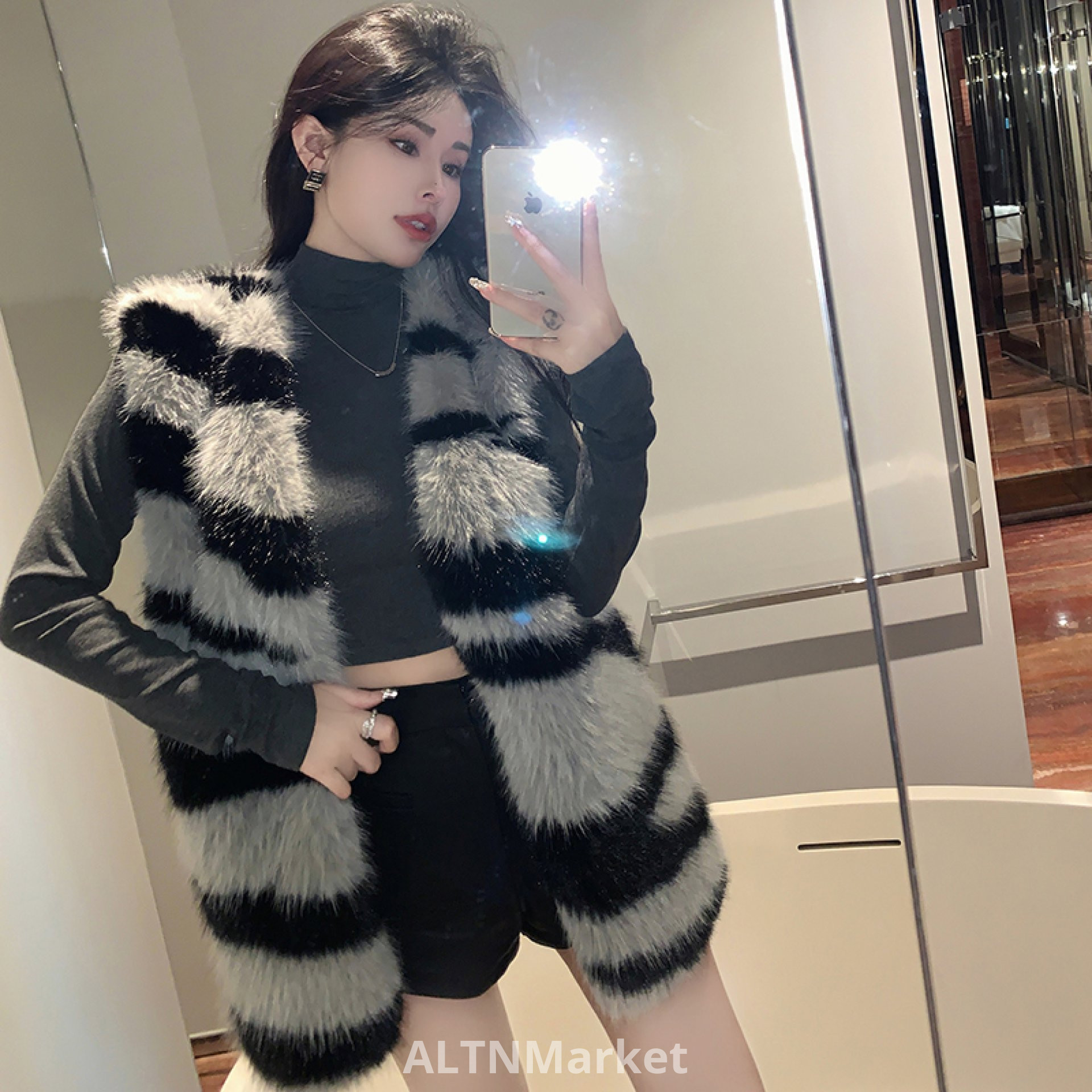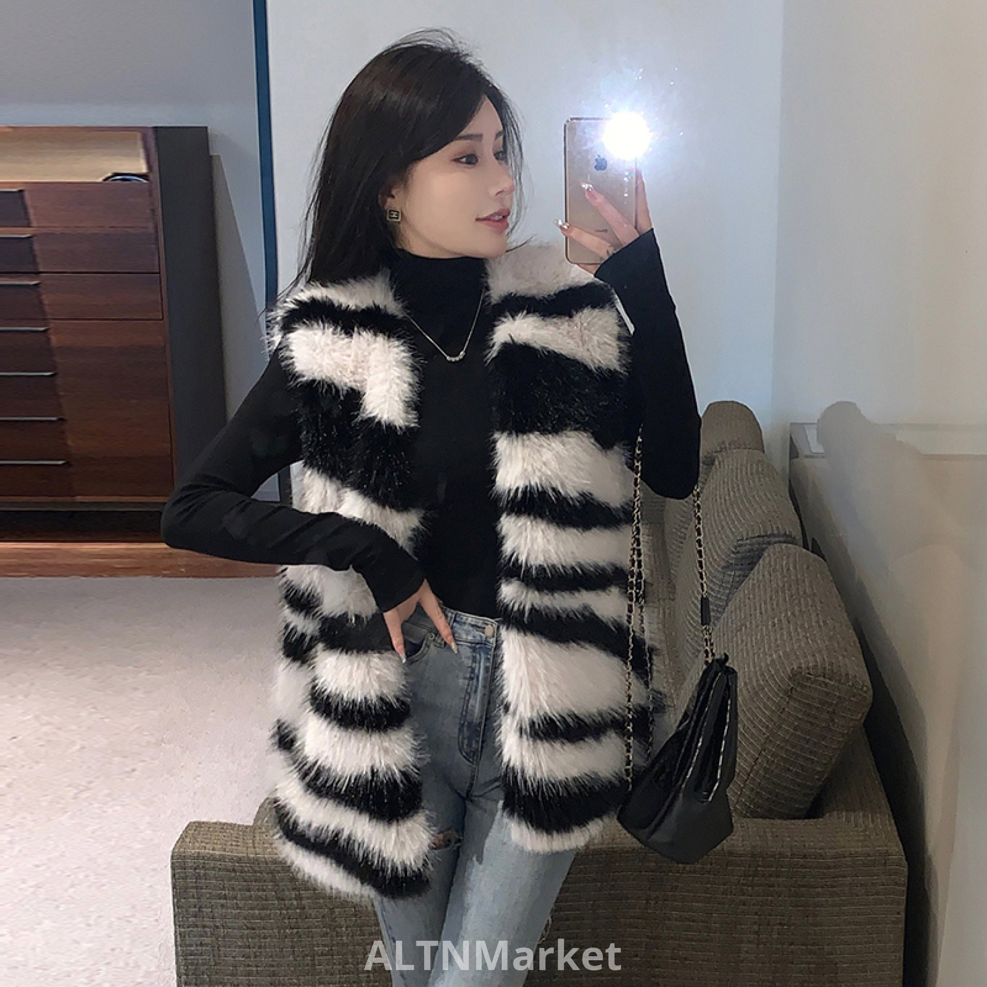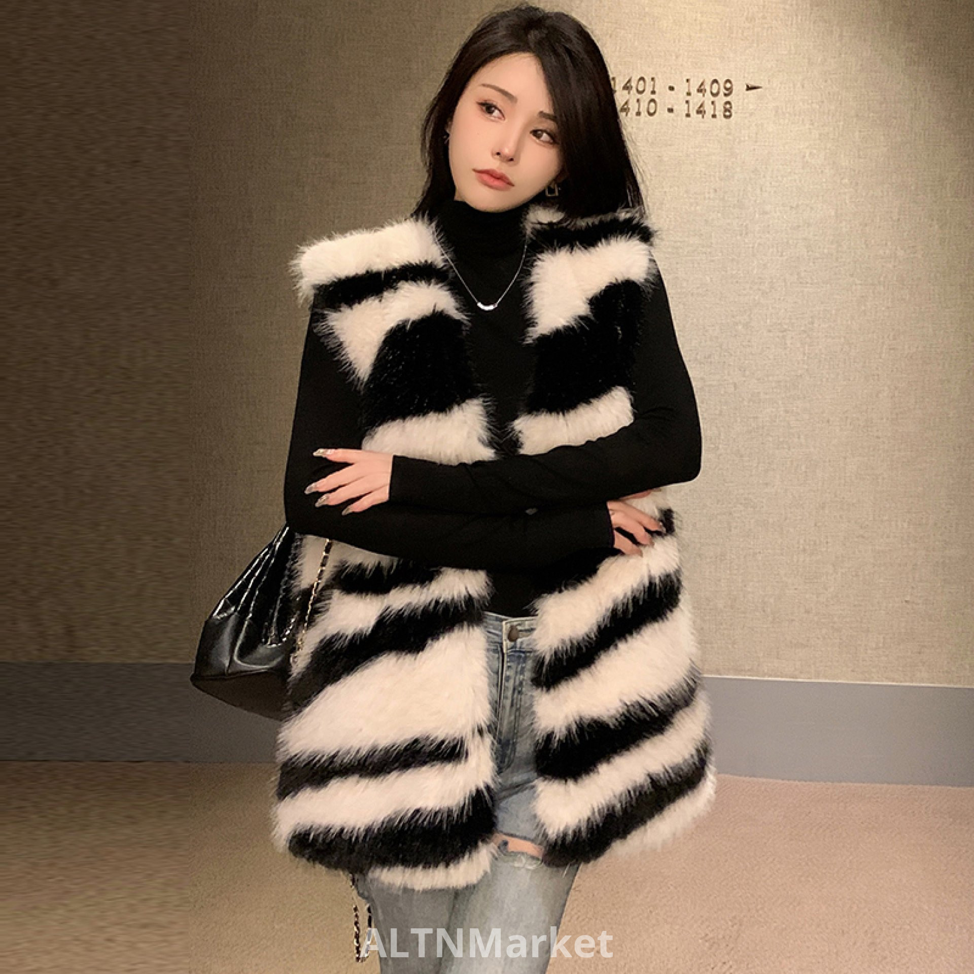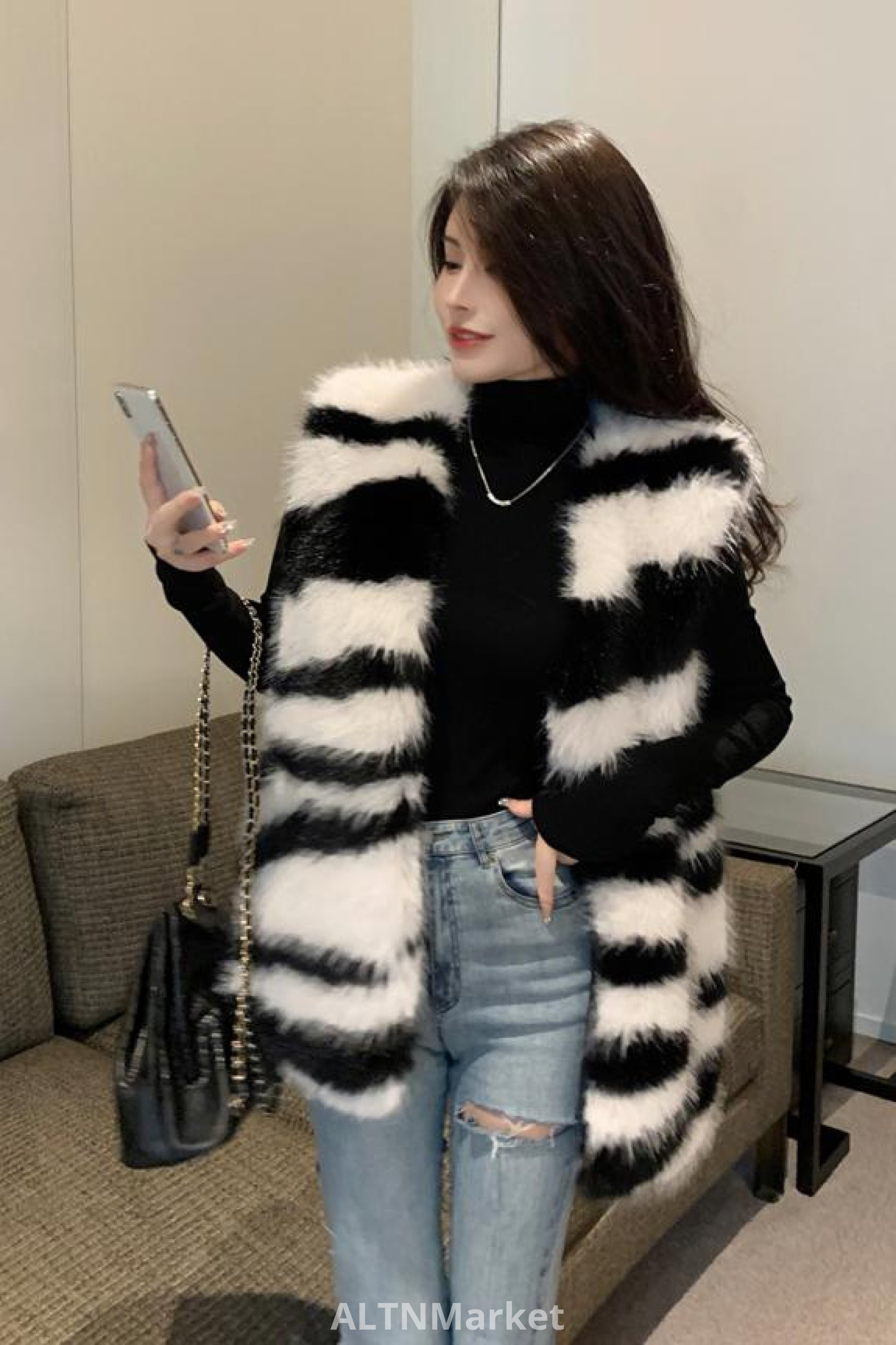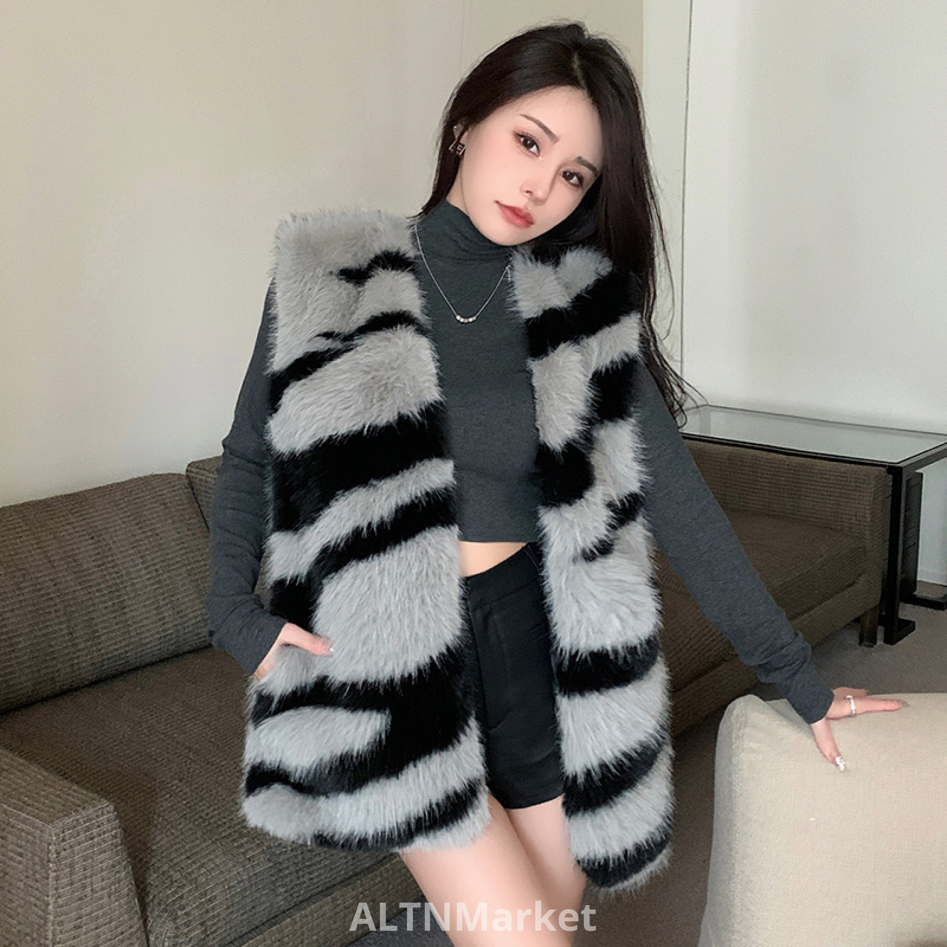 реальное фото Зима Экологически чистая Зебра С Лисьим Мехом Меховой Жилет для Женщин Универсальный Свободный Fit Корейский Стиль Меховой Жилет Пальто
