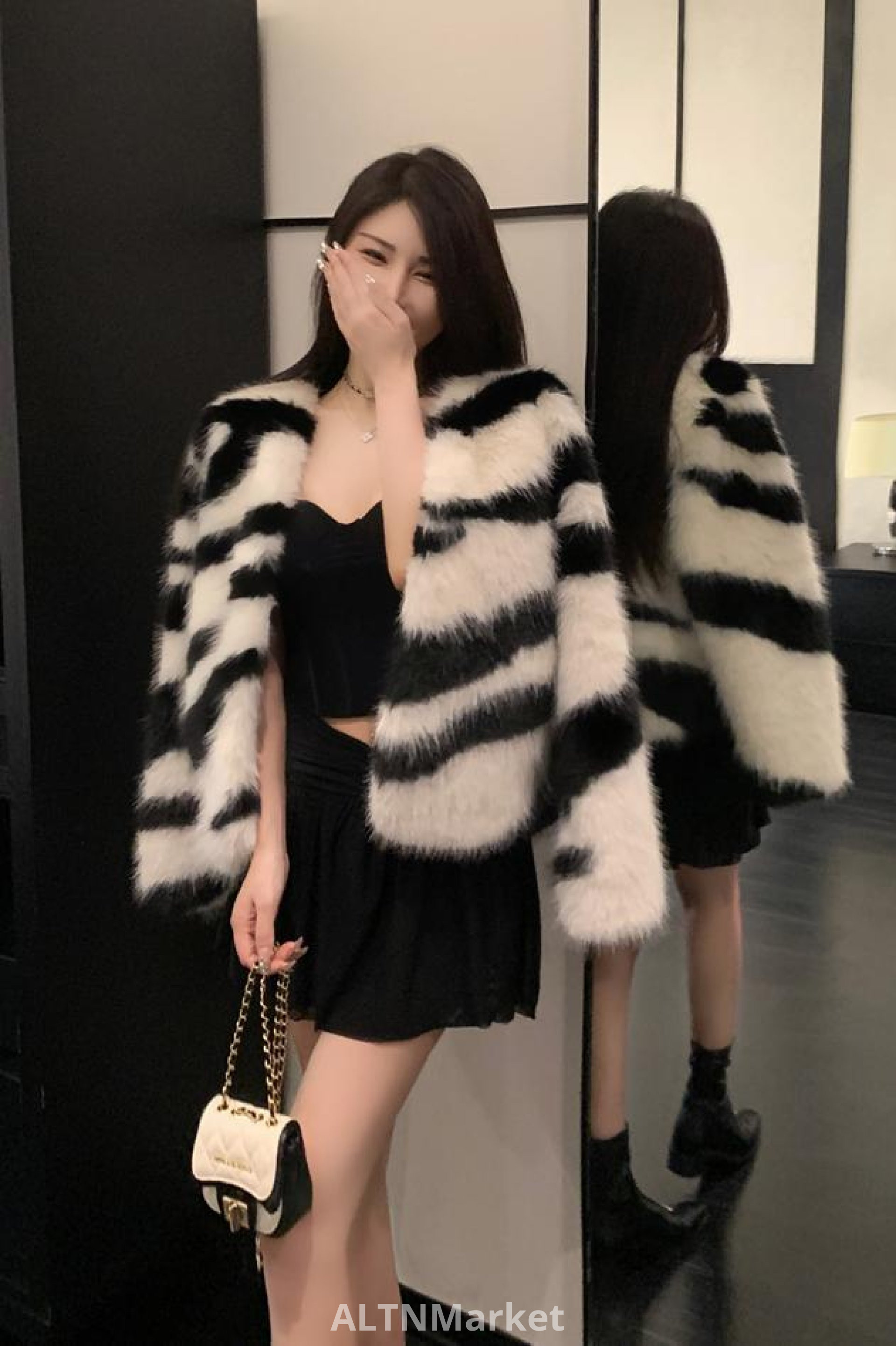 реальное фото Зима Новый Стиль Зебра Имитация Лиса Шанель Стиль Мода Меховое Пальто для Женщин Универсальный Короткий Стиль Меховое Пальто