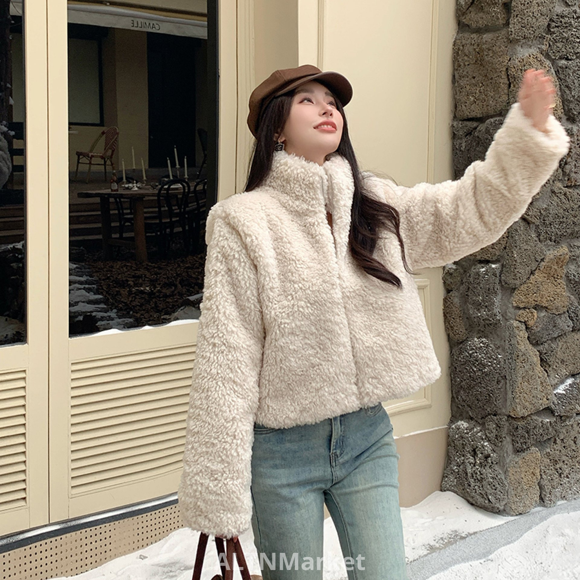 реальное фото Зима Высшее чувство Модные шерсть ягненка пальто для женщин корейский стиль мода Casual Свободный Fit короткий стиль куртка кардиган модные