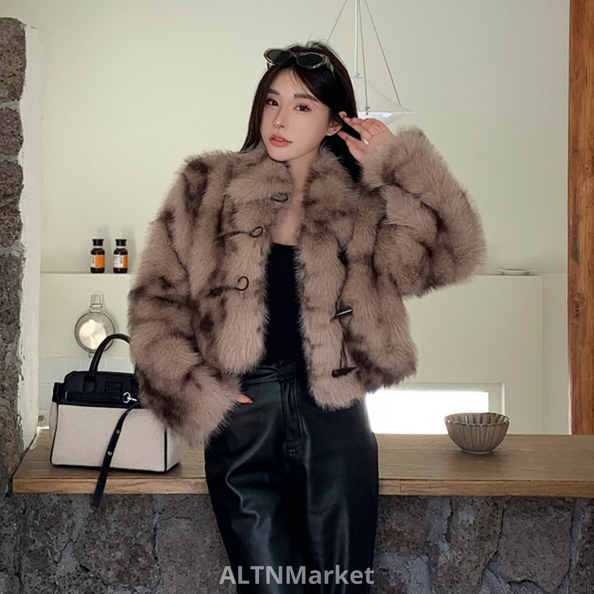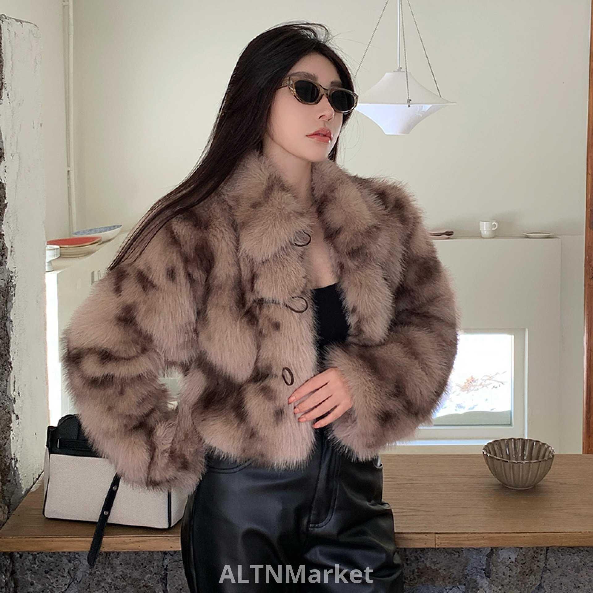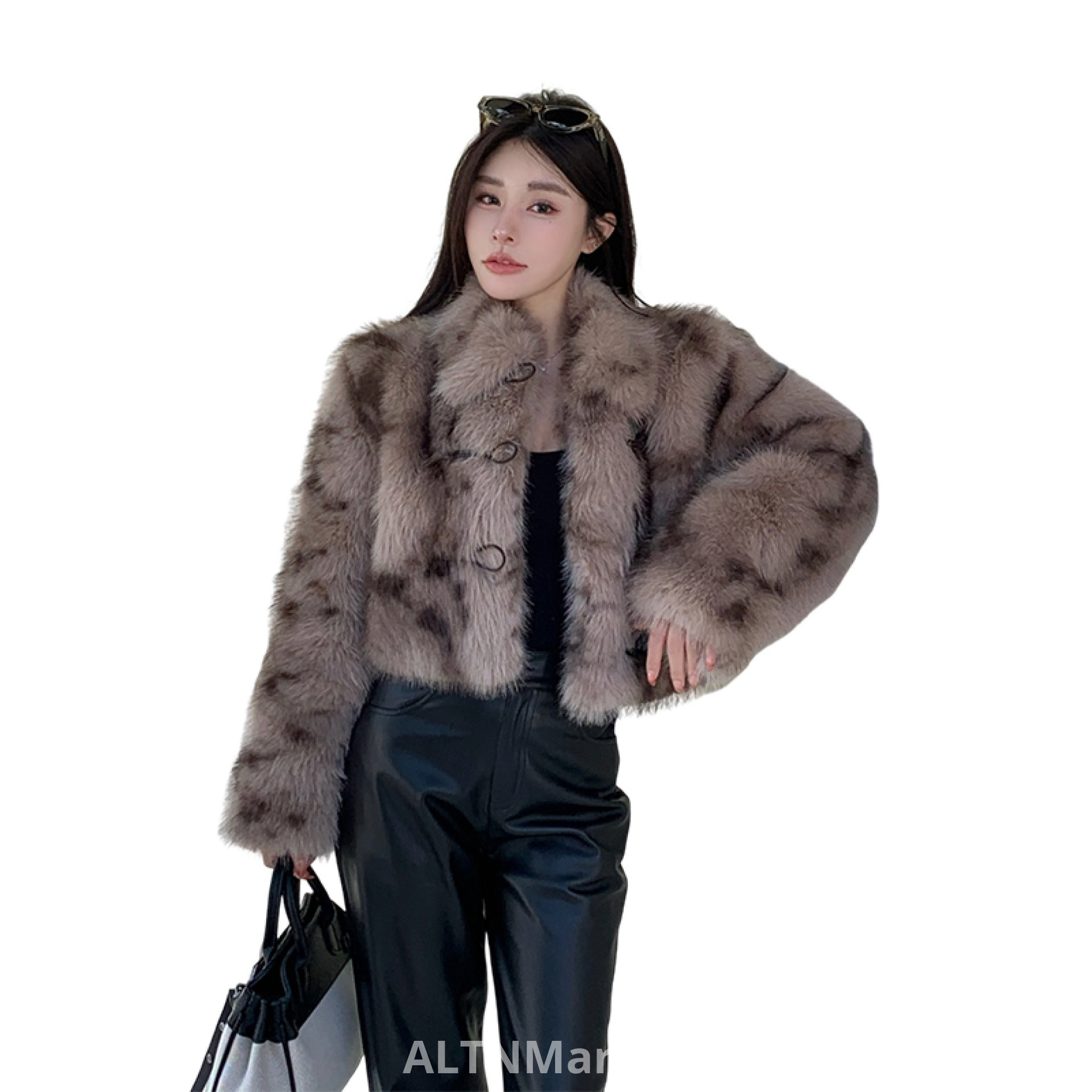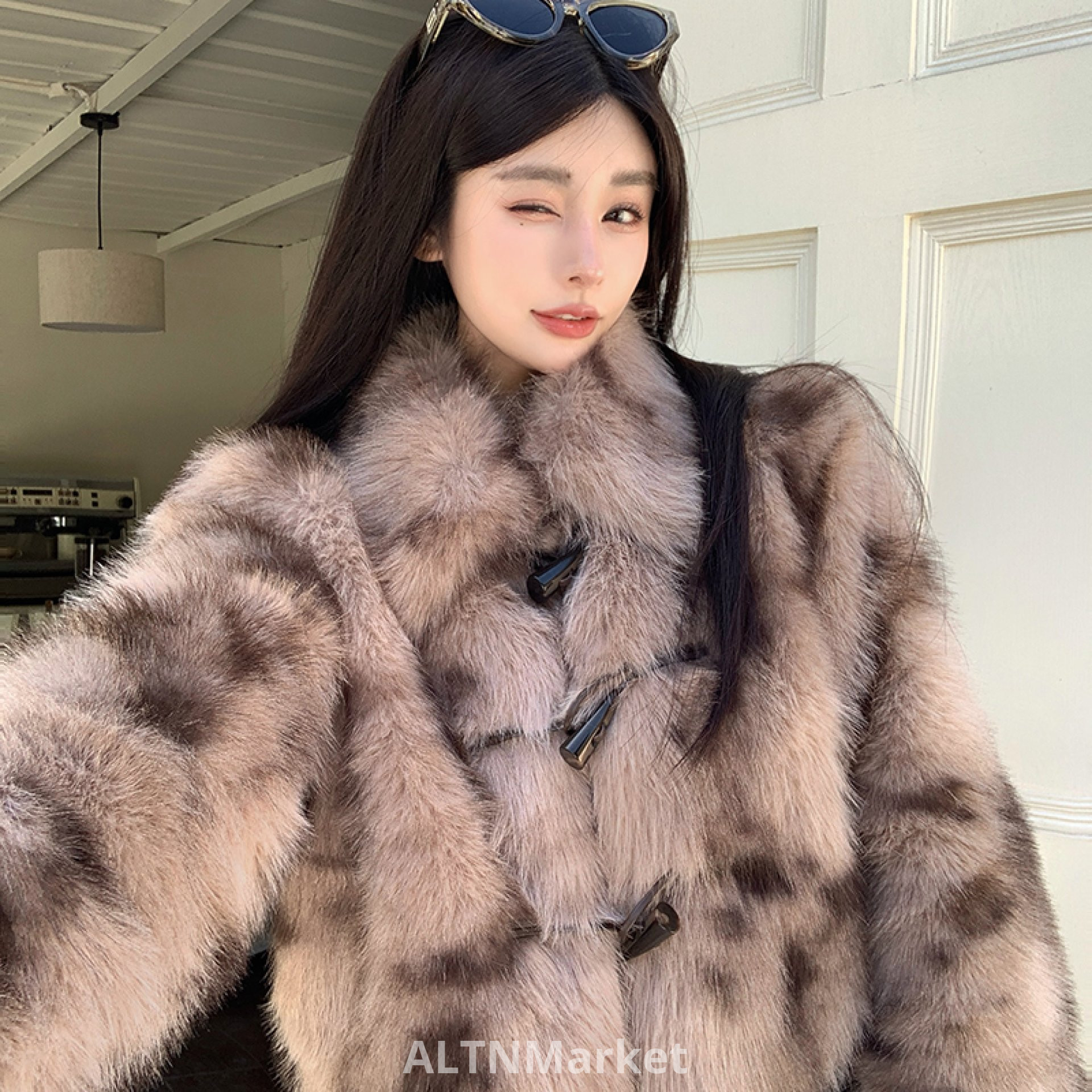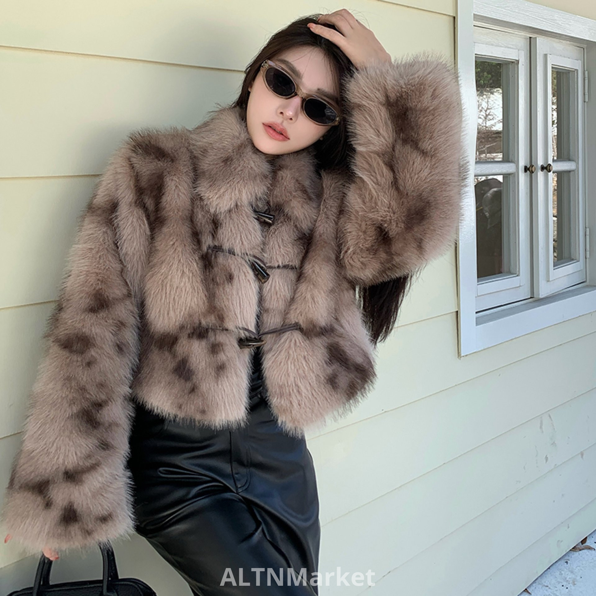 реальное фото Зима Винтаж Рог Пряжка Короткий Стиль Леопардовый Принт Имитация Лисий Мех Короткий Стиль Пальто Корейский Стиль Меховое Пальто Женщины