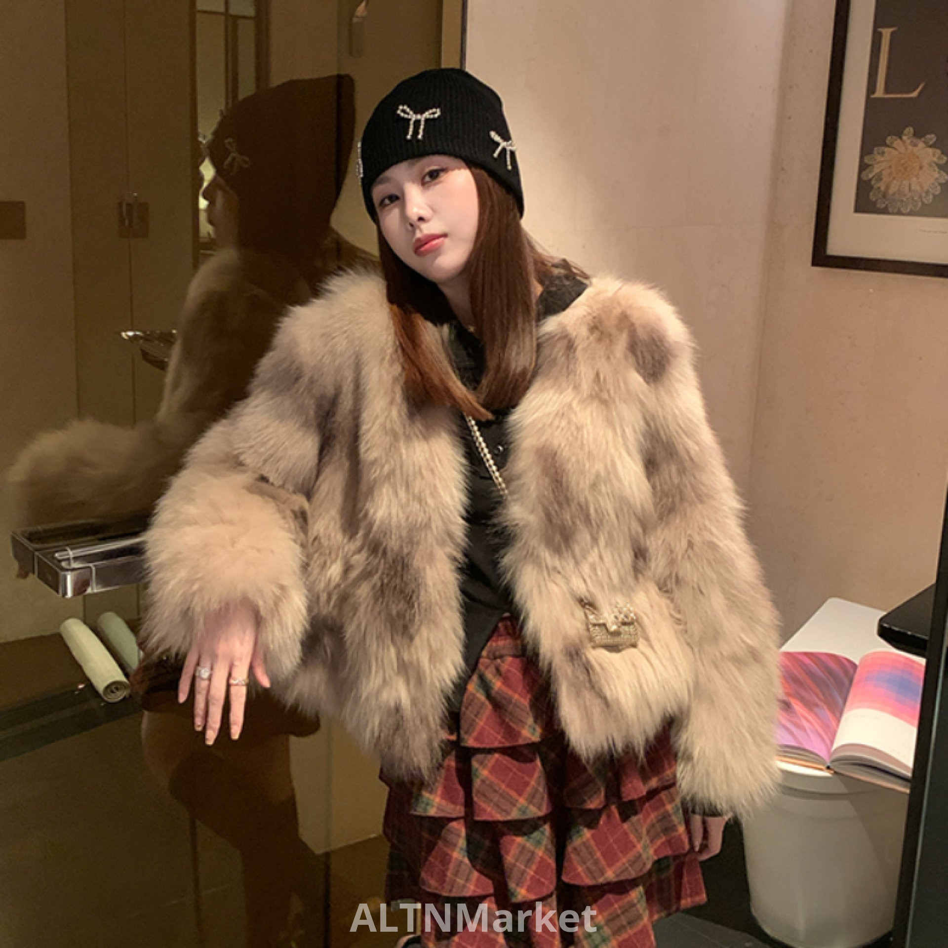 Realzz A Ning Глава Романтический Двойной Цвет Ореол Крашение Лисий Мех Легкий Молодой Чувство Корейский Стиль Экологически Чистый Мех Шуба