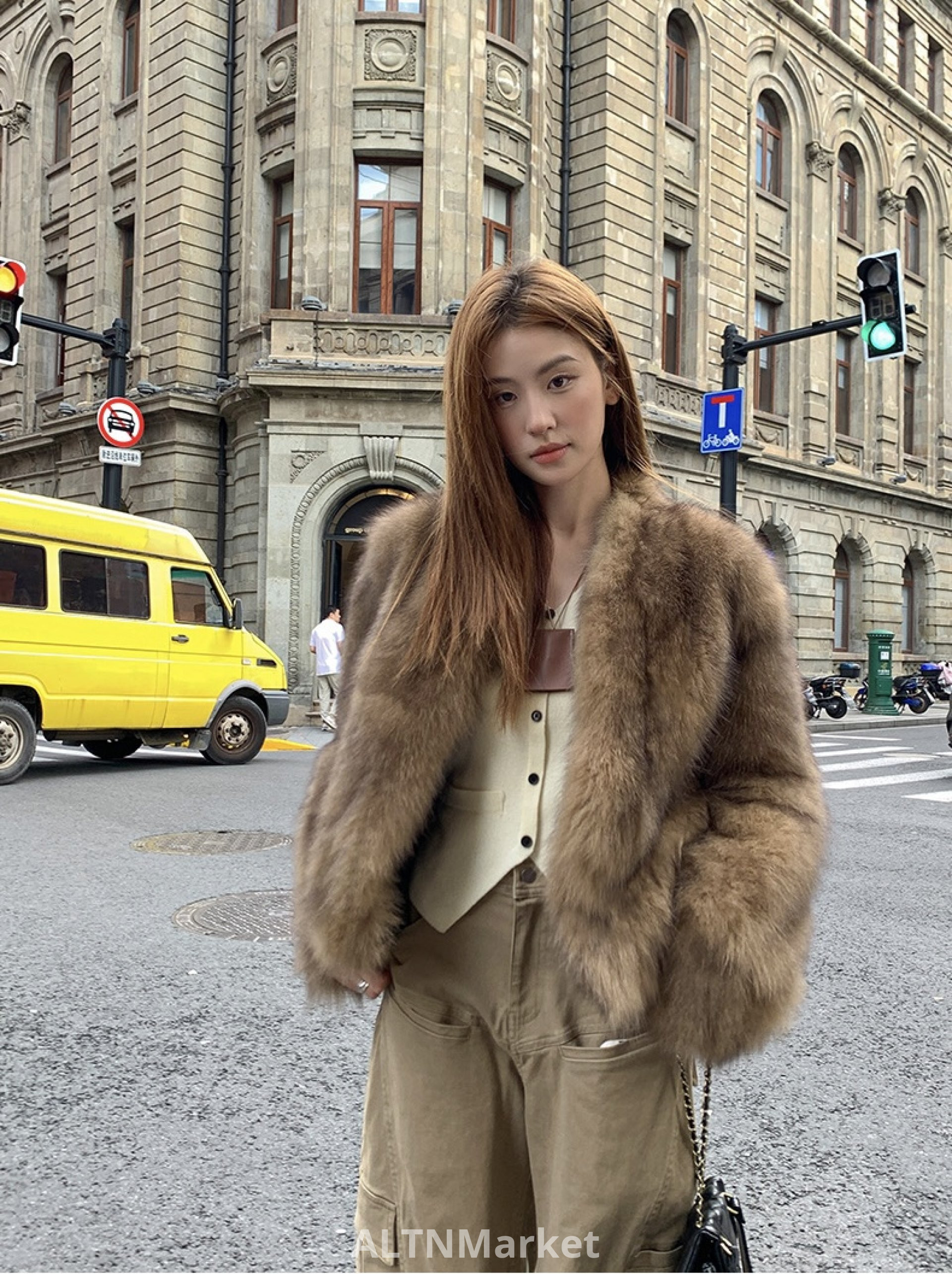 Стример Янтарь Большой Кузина Лиса Мех Короткий Стиль Корейский Стиль Молодой A Меховое Пальто Интернет Знаменитости A Женщины Меховое Пальто