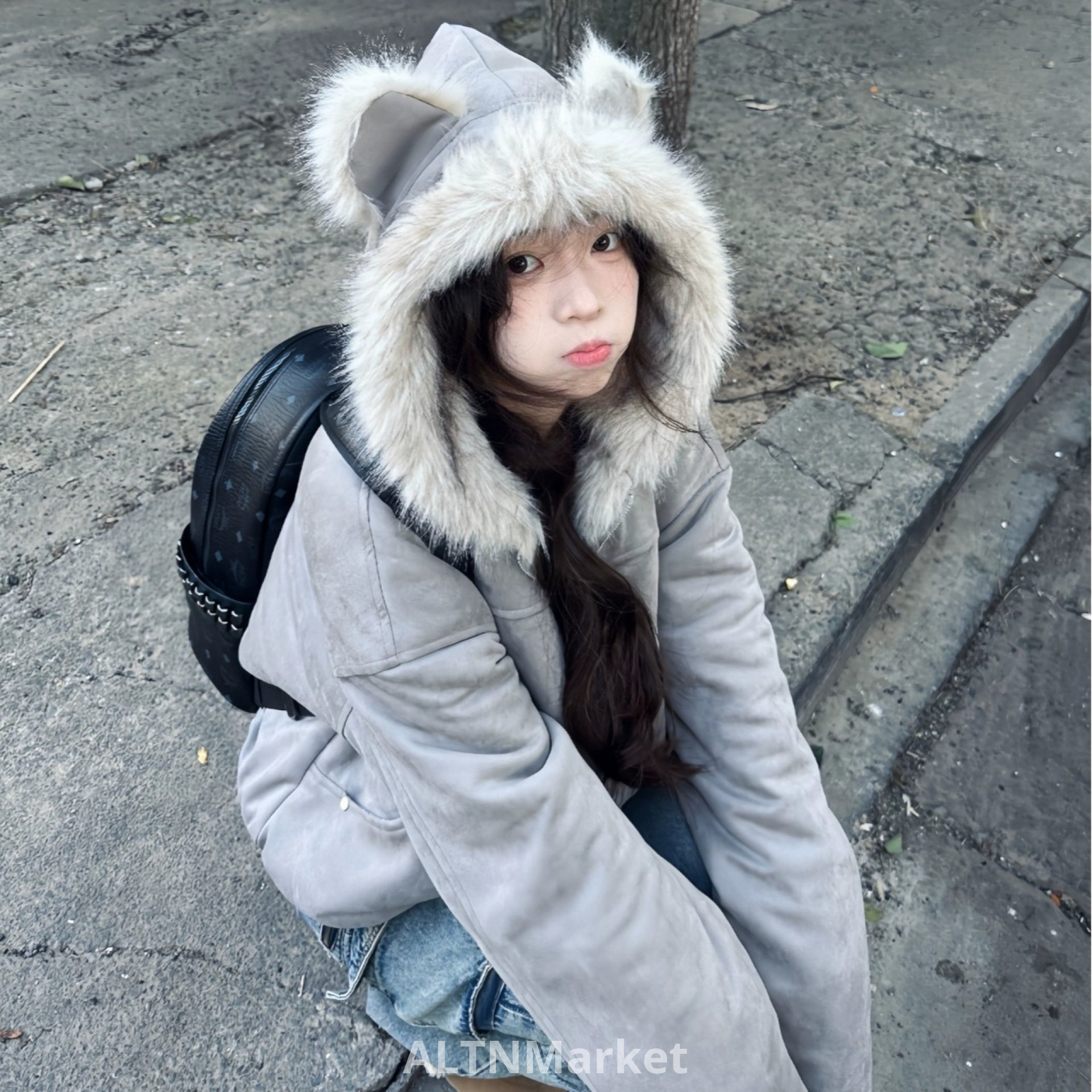 Замша Бархат Кошачье Ухо Сиденье Горный Резьба Хлопок Padded Куртка Женщины 2025 Зима Новый Стиль Американский Стиль cleanfit Утолщенный Хлопок Одежда Пальто Модные