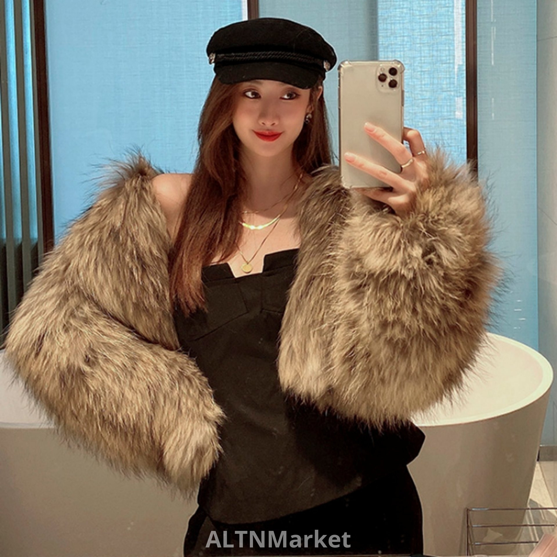 Зимняя толстая имитация лисьего меха Шуба женская короткая Корейский стиль Молодой новый стиль похудения Круглая шея Крашение чай Маоцзянь Топ