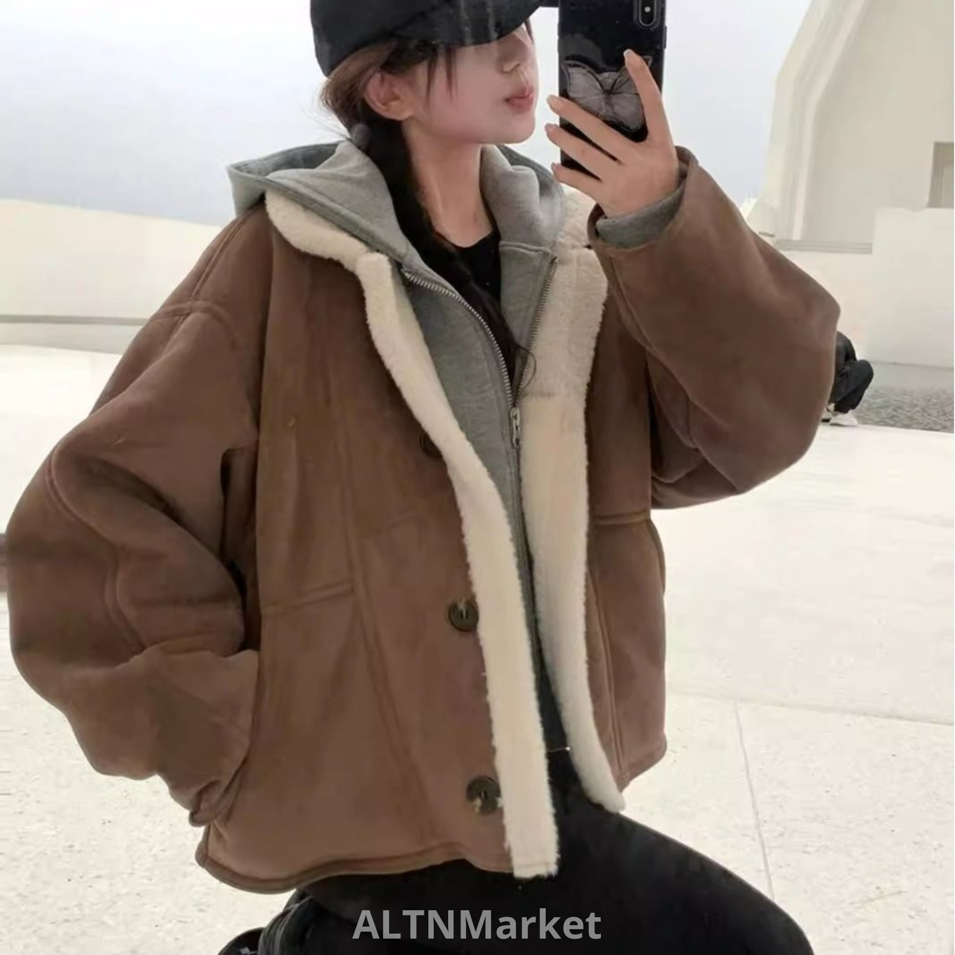 Зима теплый мех один хлопок мягкая куртка пальто для женщин 2025 новый стиль флис с подкладкой и утолщенный поворот вниз воротник баранина флис короткий стиль хлопок одежда