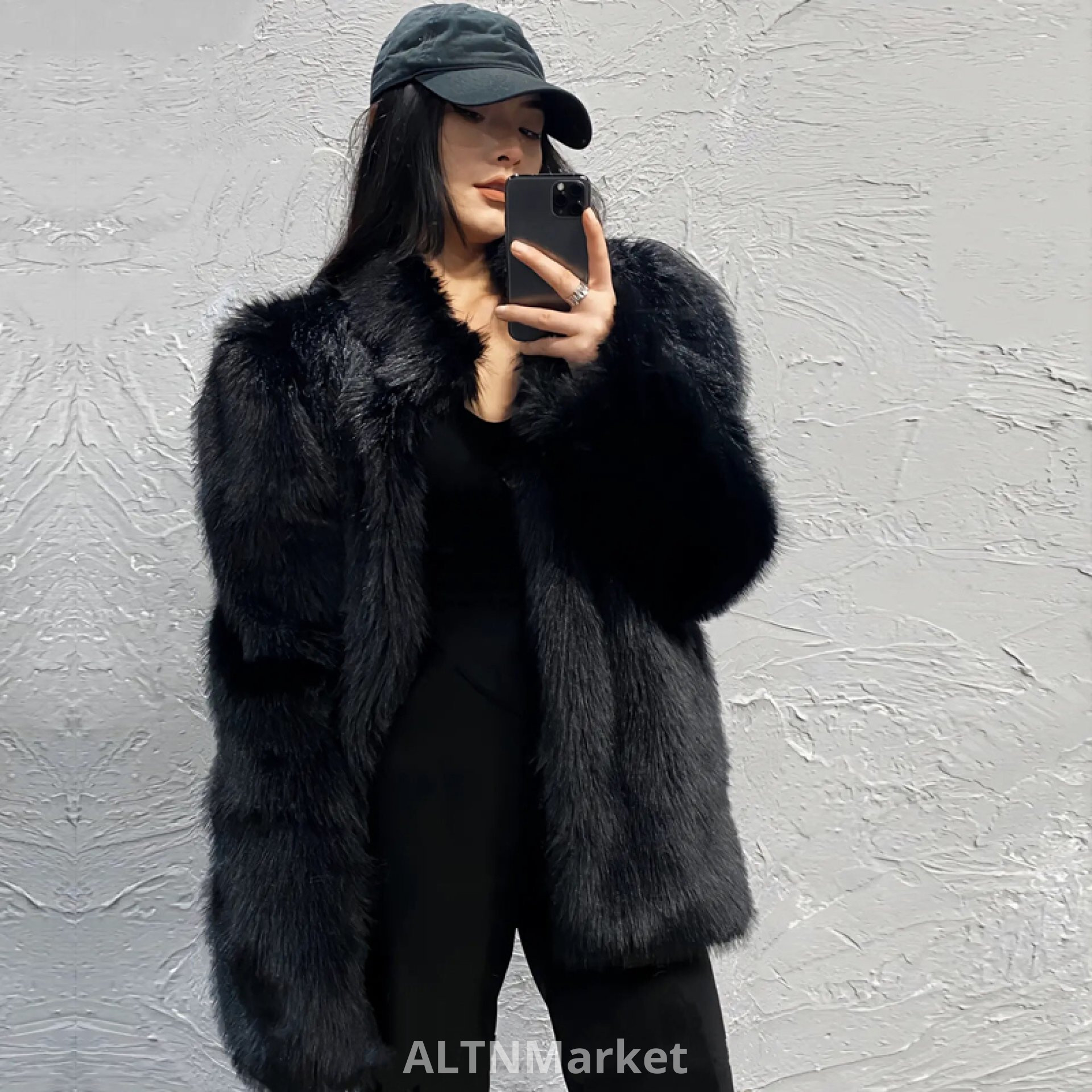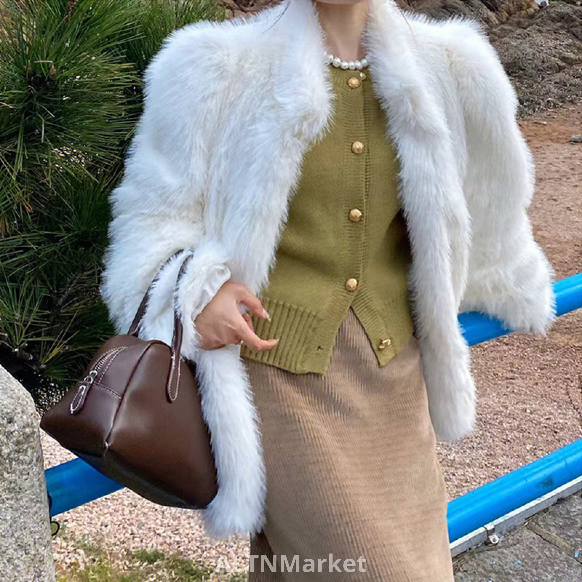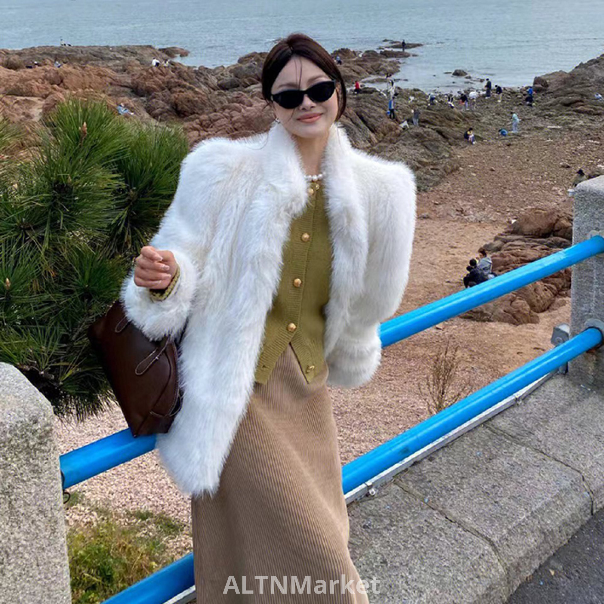 Зима белый мандарин воротник средней длины стиль имитация лисий мех элегантность дворец пух рукав экологически чистый мех меховое пальто шинель